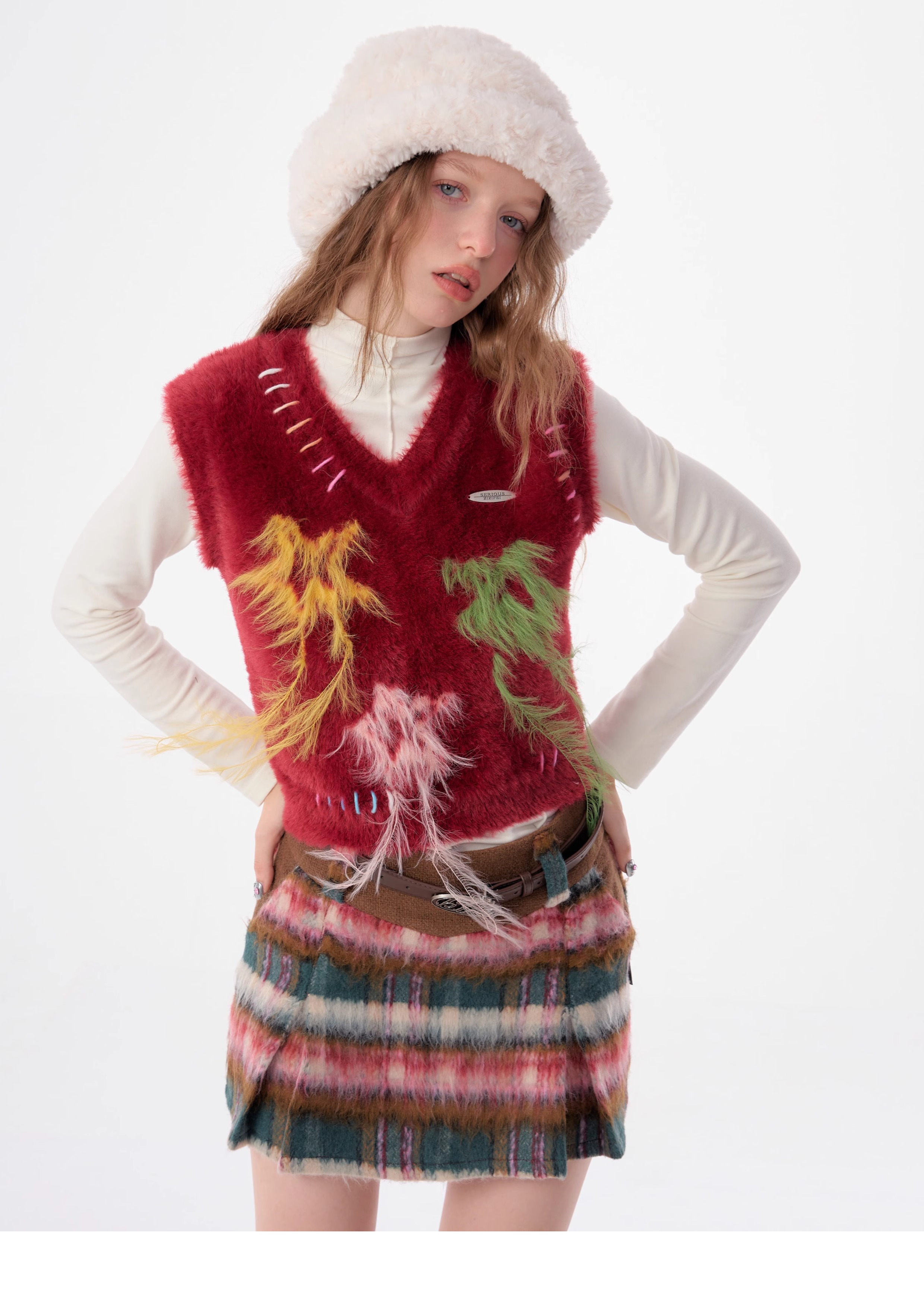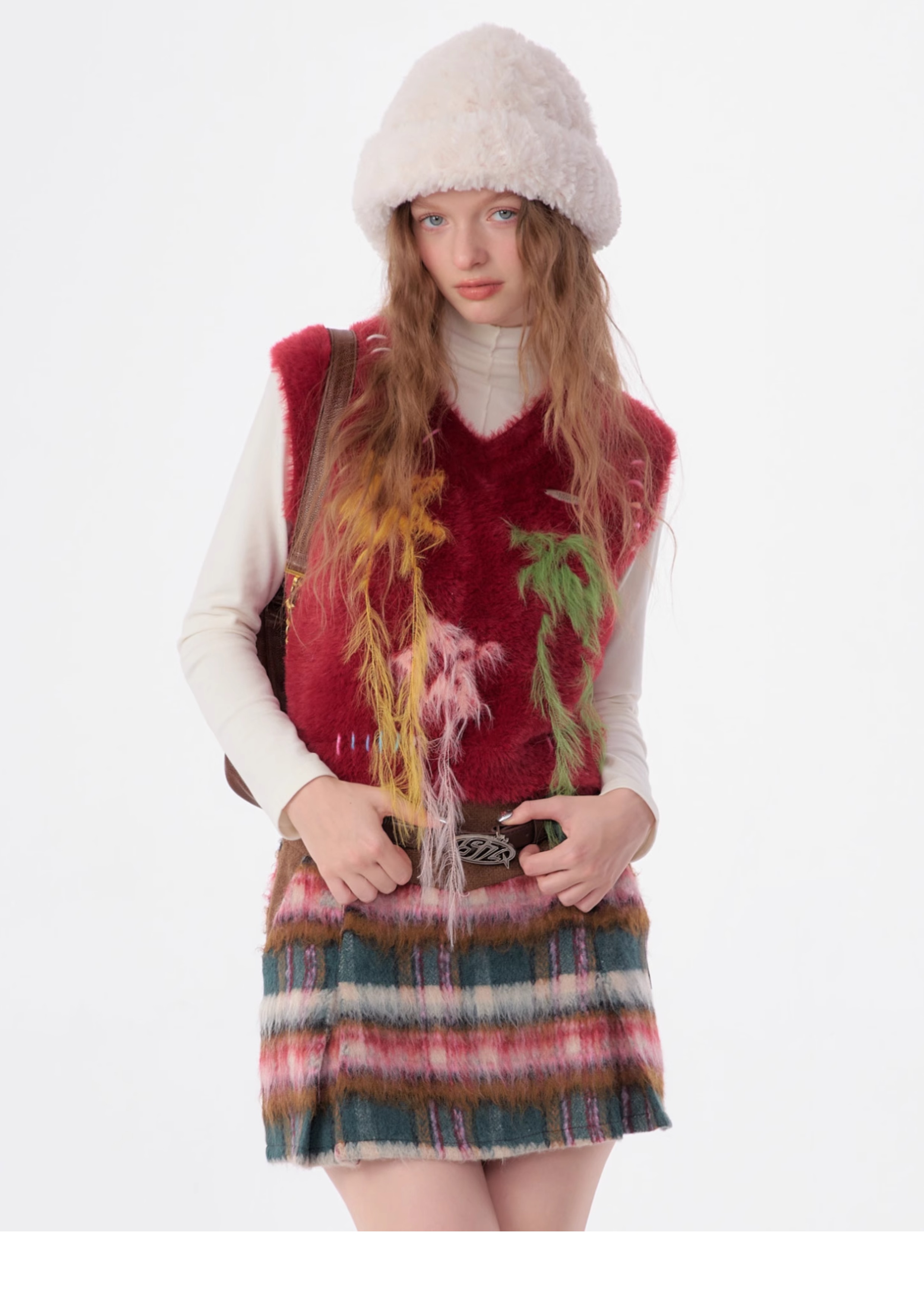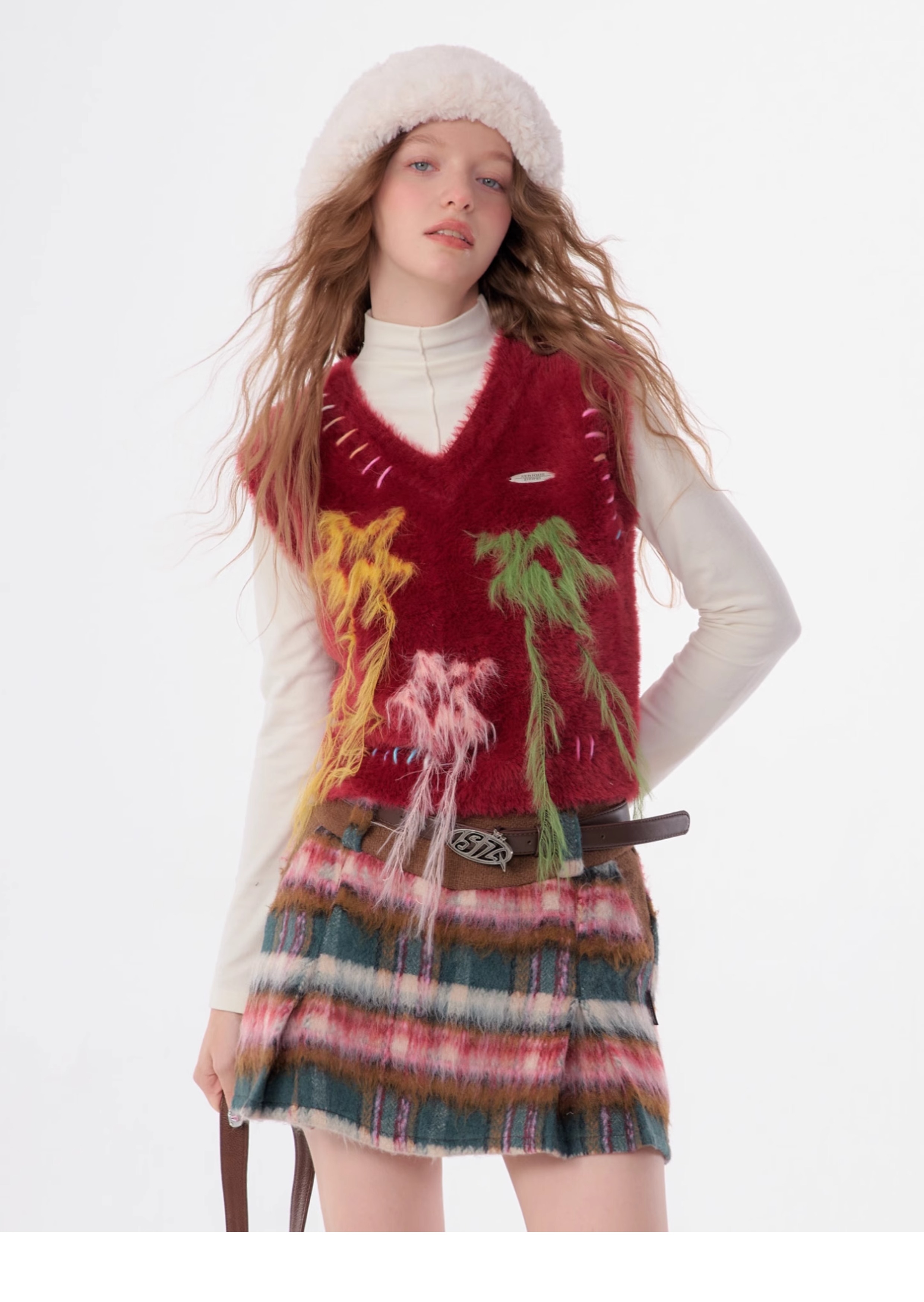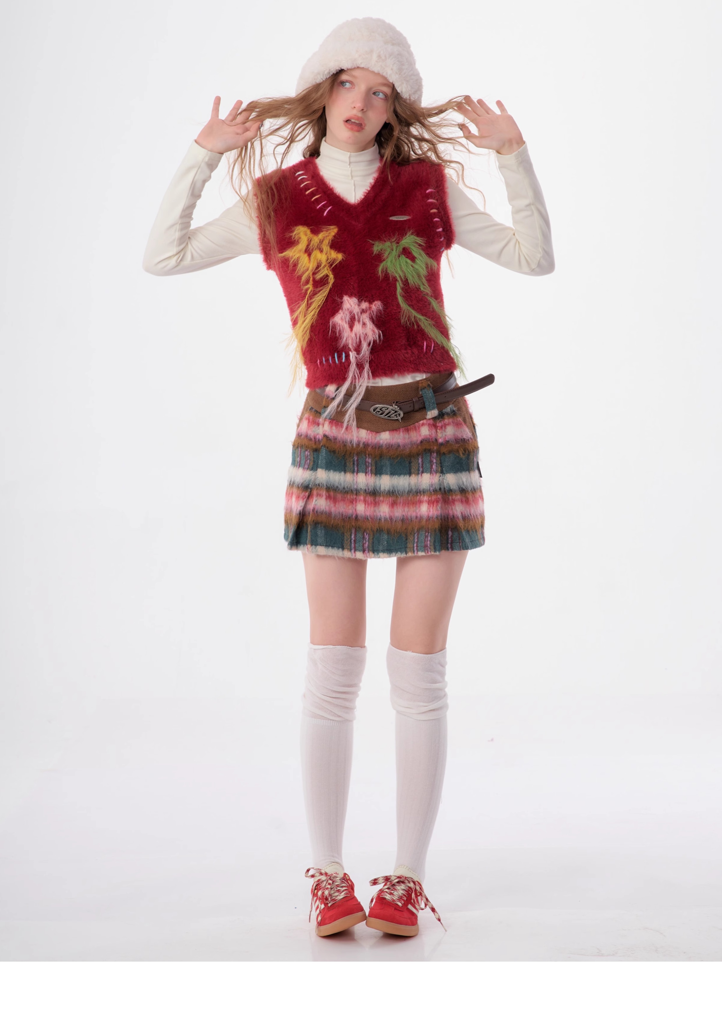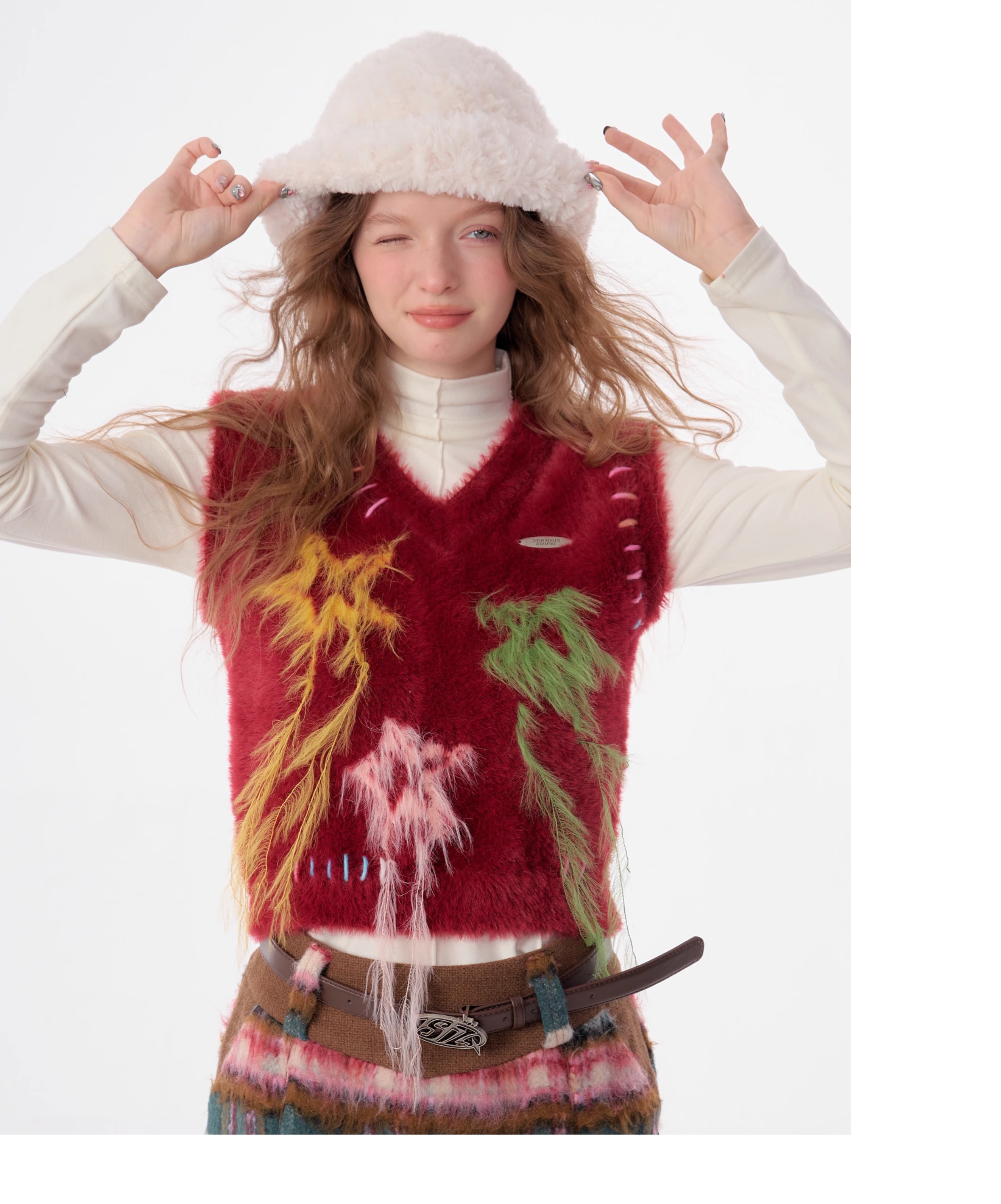 Tassel Star V-neck Sweater Vest | Red Christmas Design for Autumn/Winter