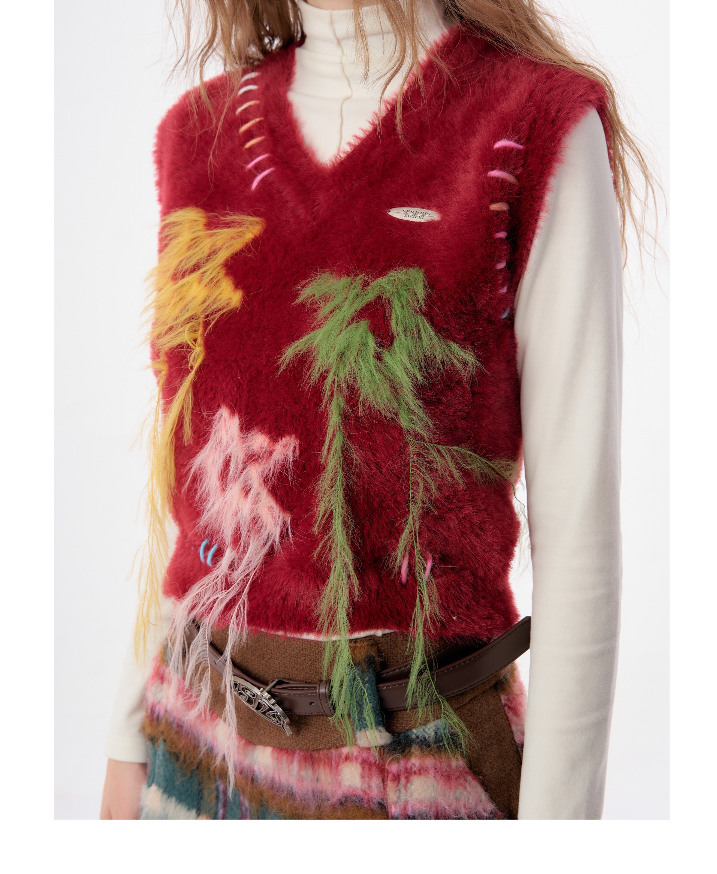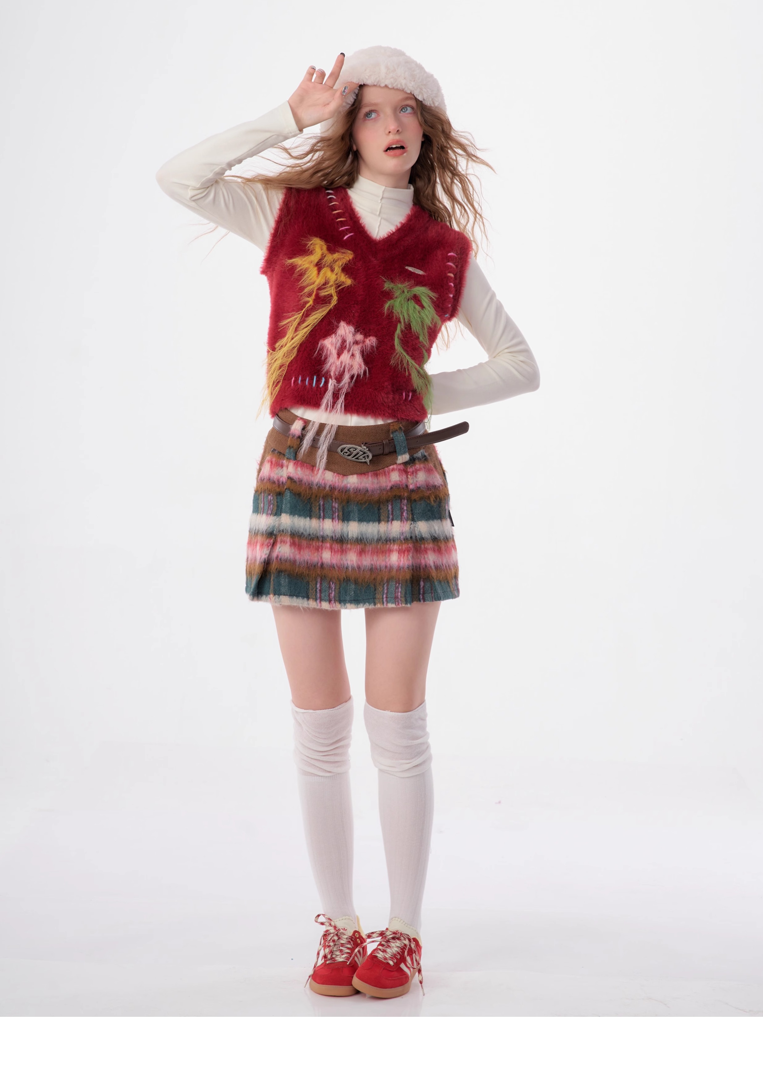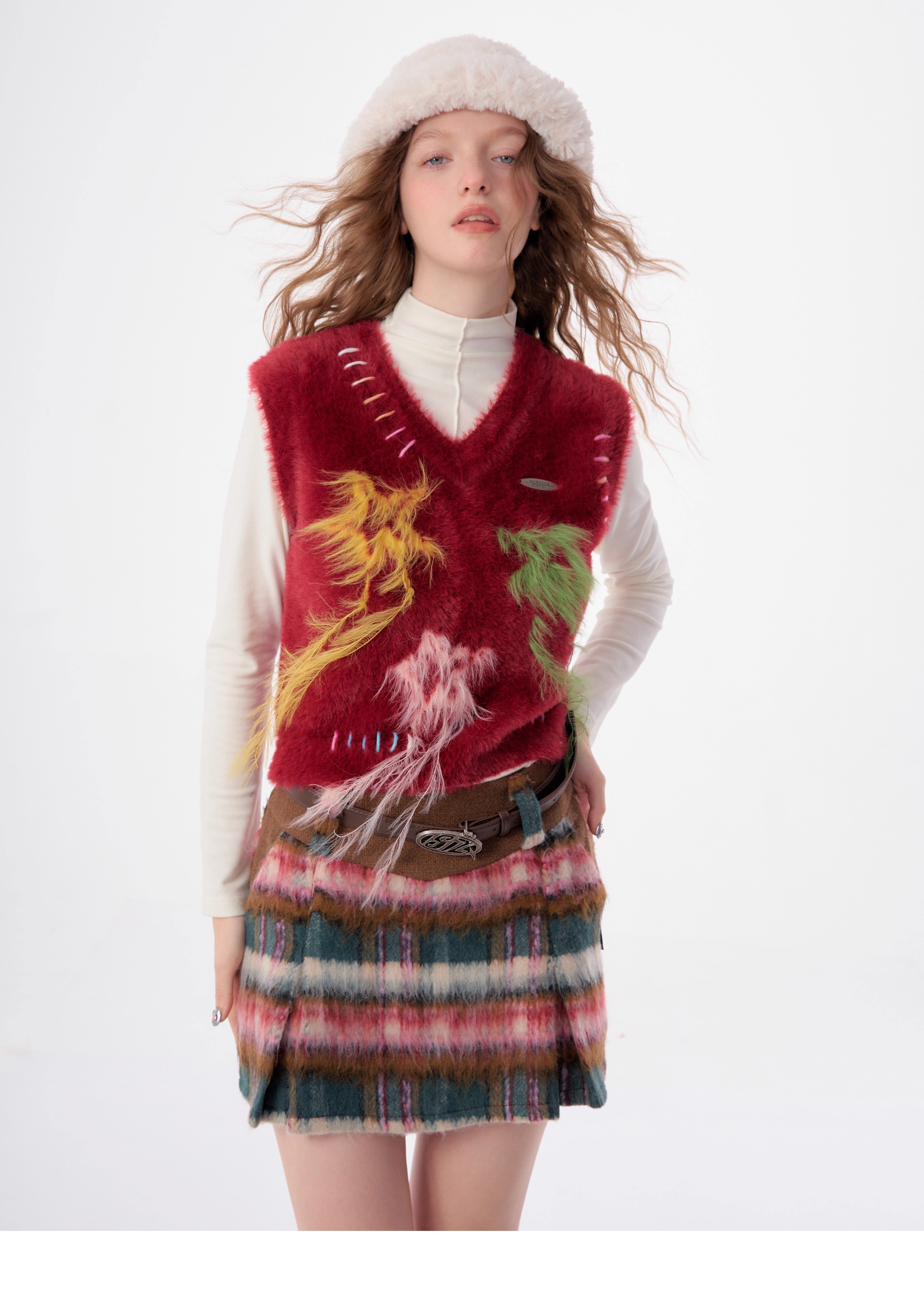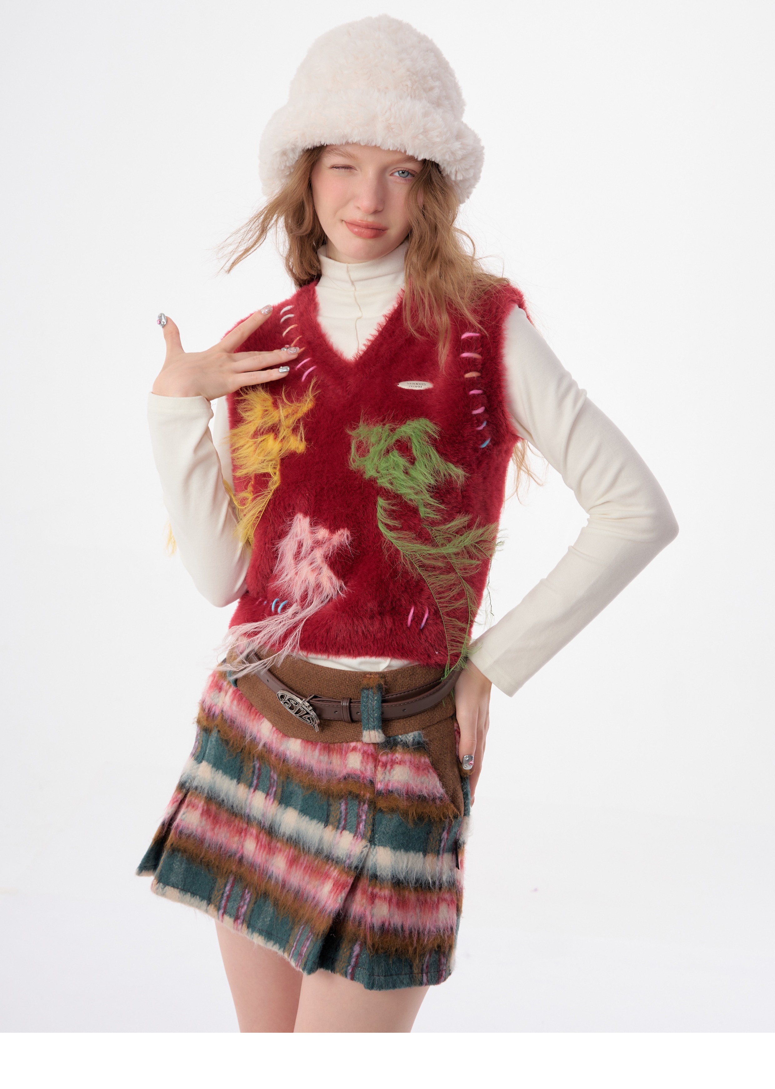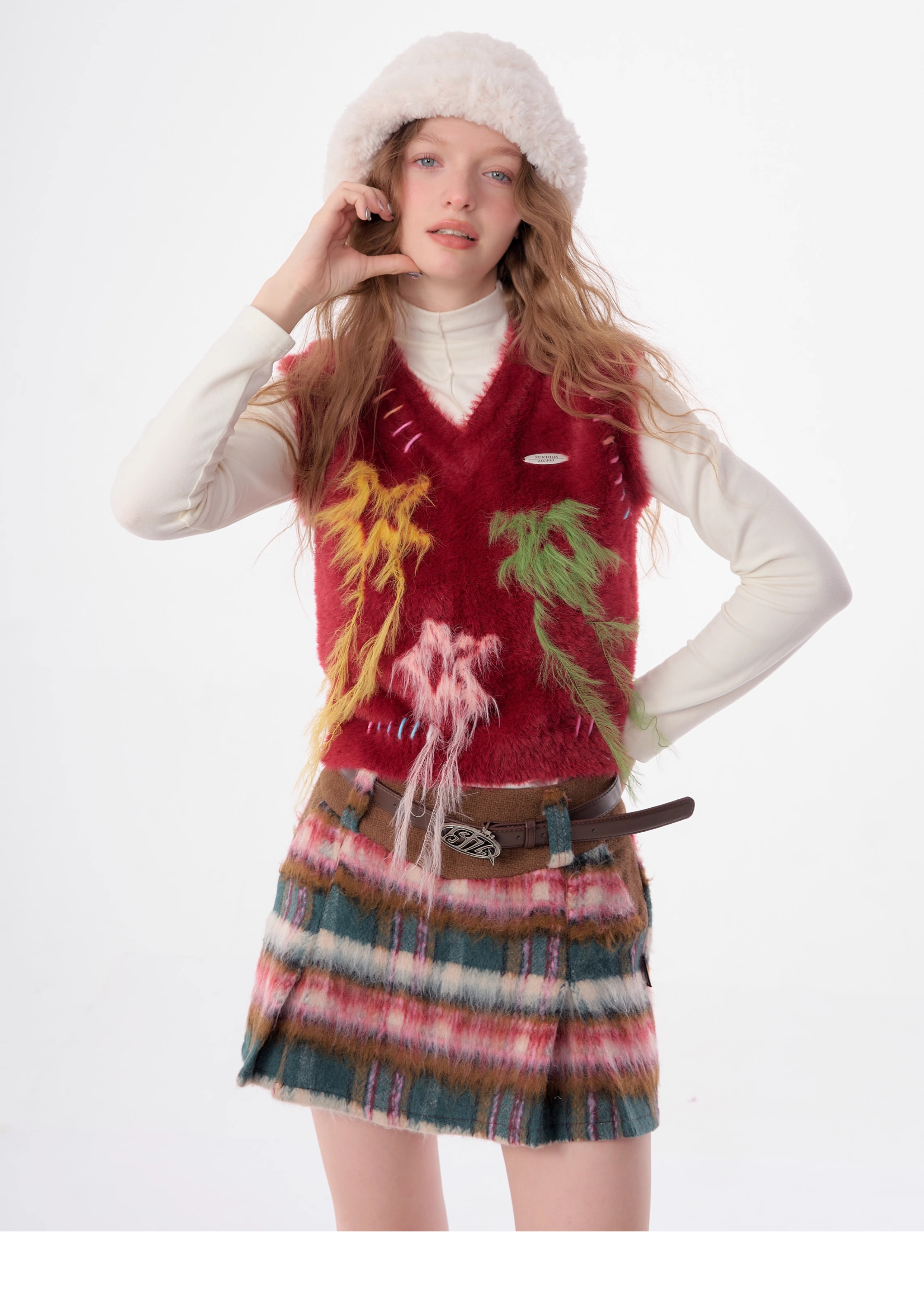 Tassel Star V-neck Sweater Vest | Red Christmas Design for Autumn/Winter