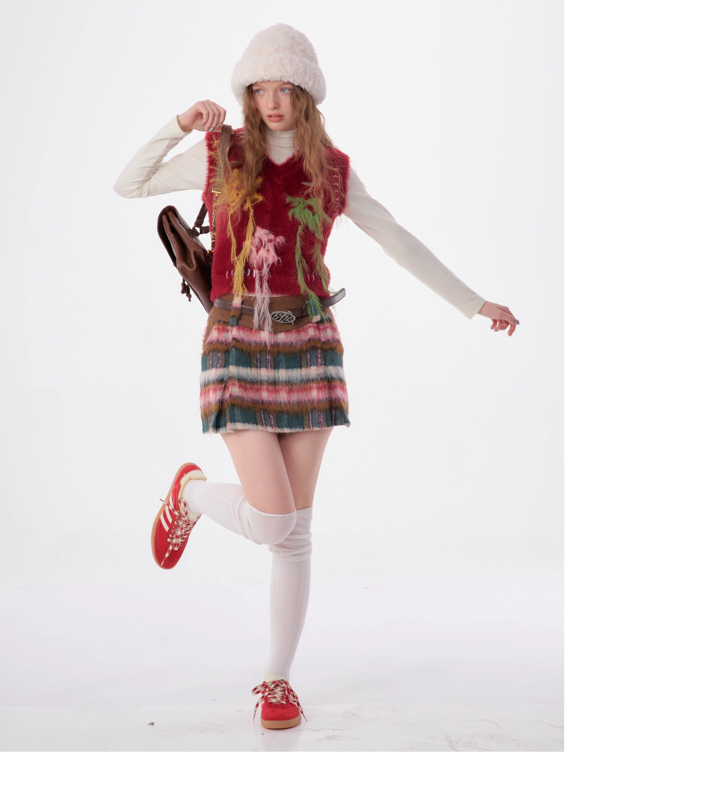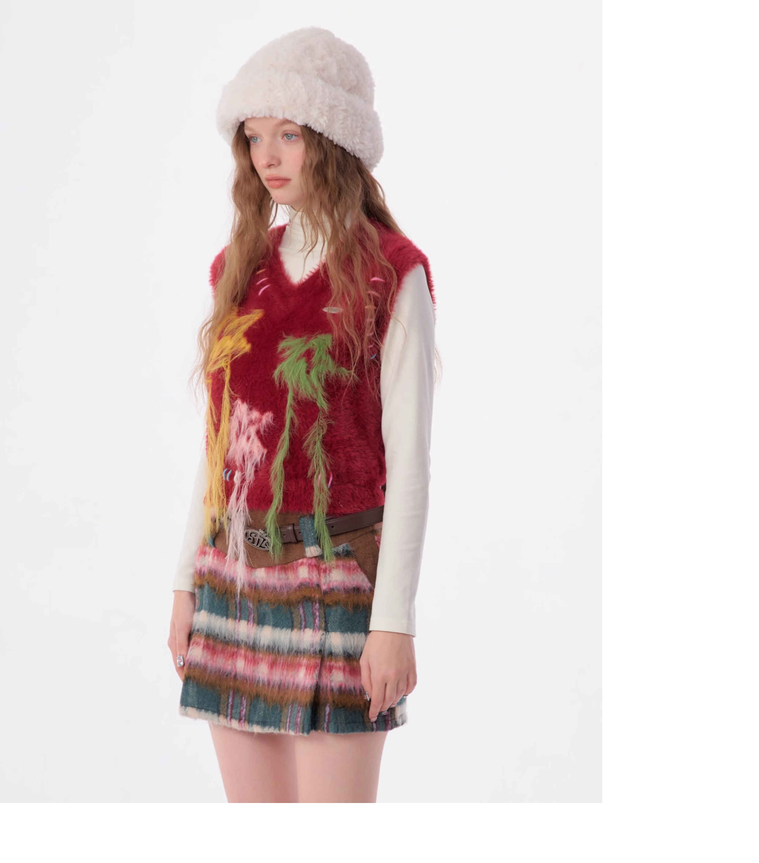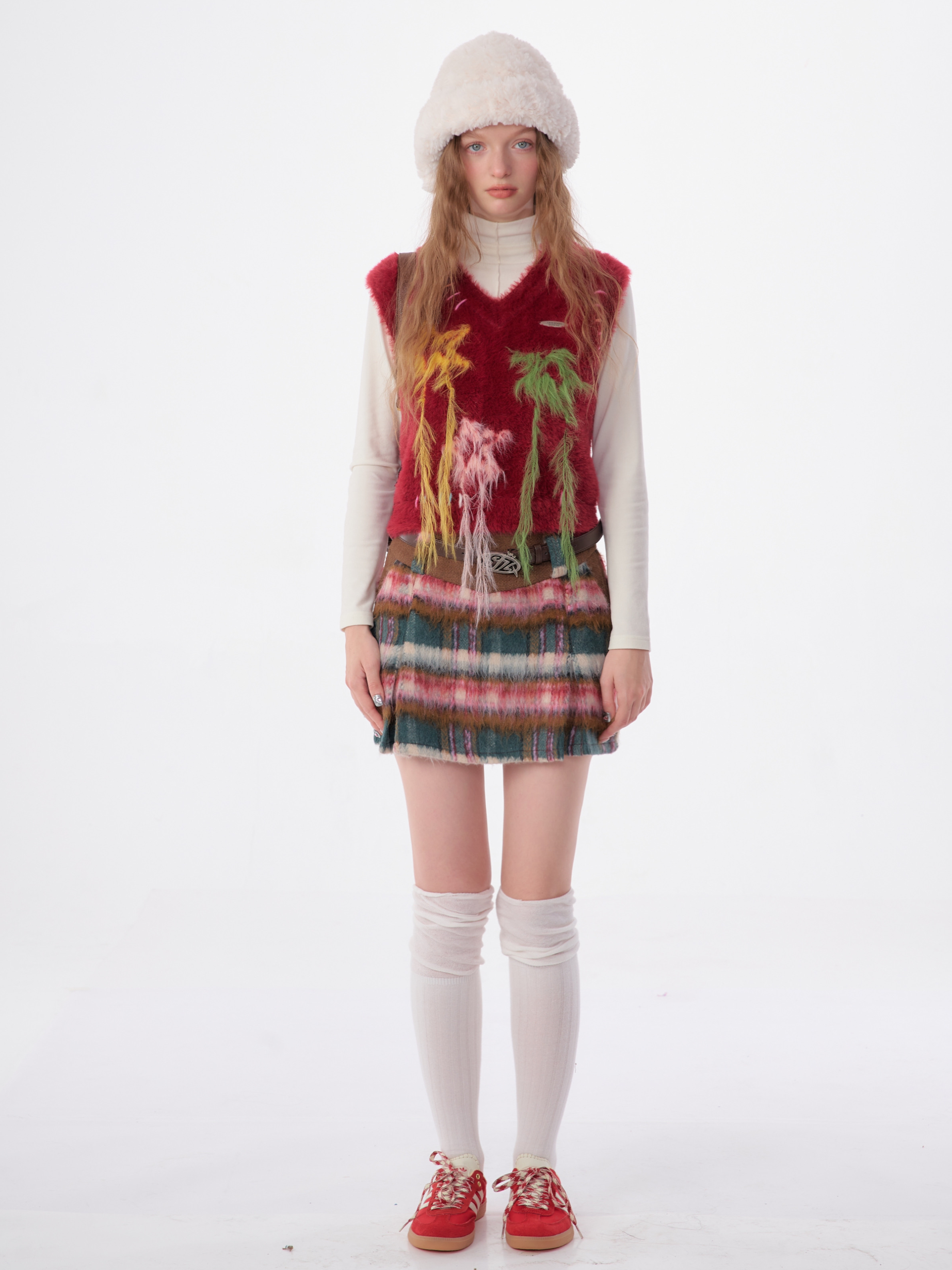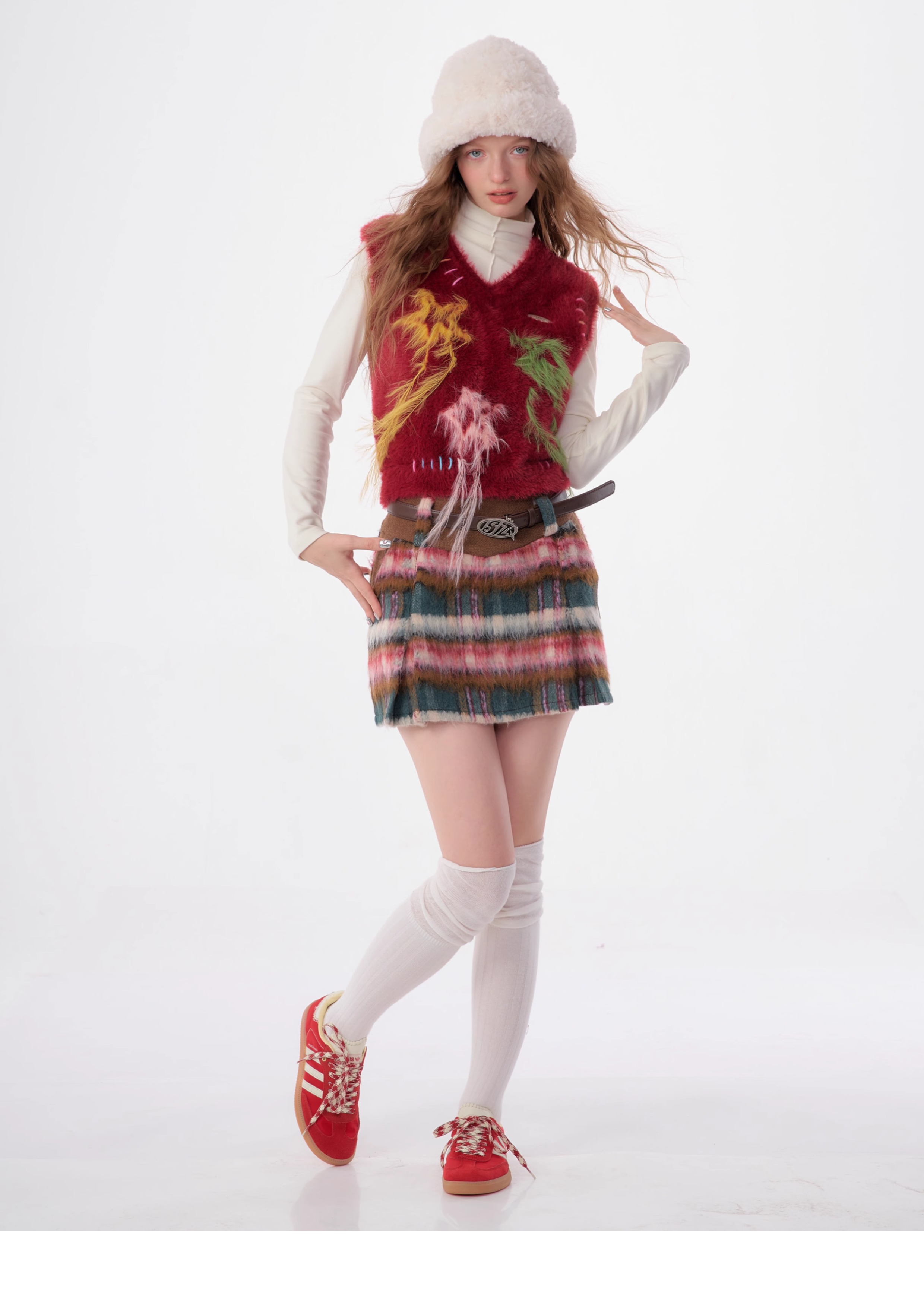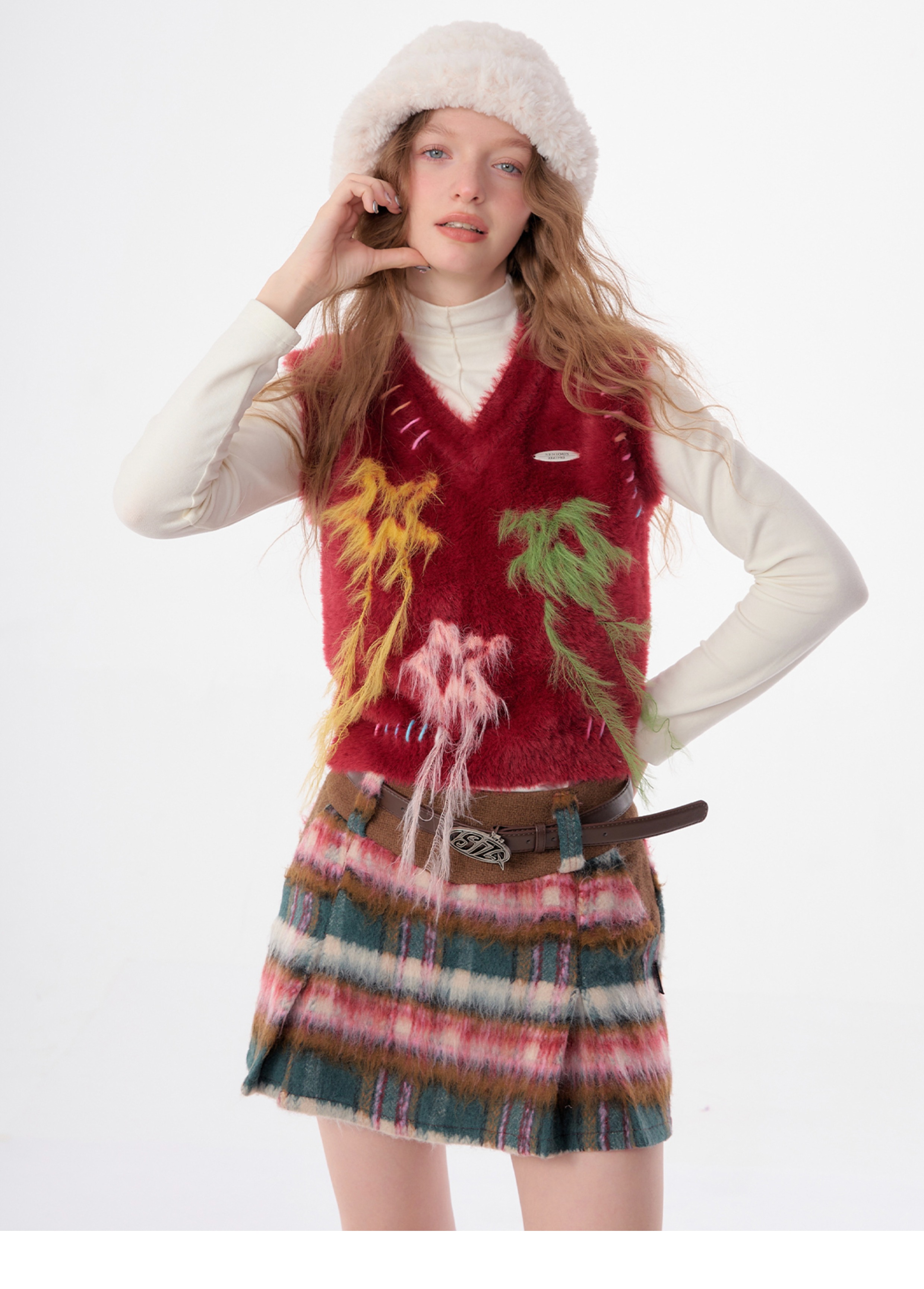 Tassel Star V-neck Sweater Vest | Red Christmas Design for Autumn/Winter