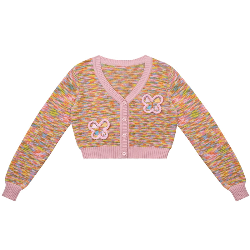 Colorful Striped Butterfly Cardigan | Short V-neck Knitted Retro Jacket for Autumn/Winter