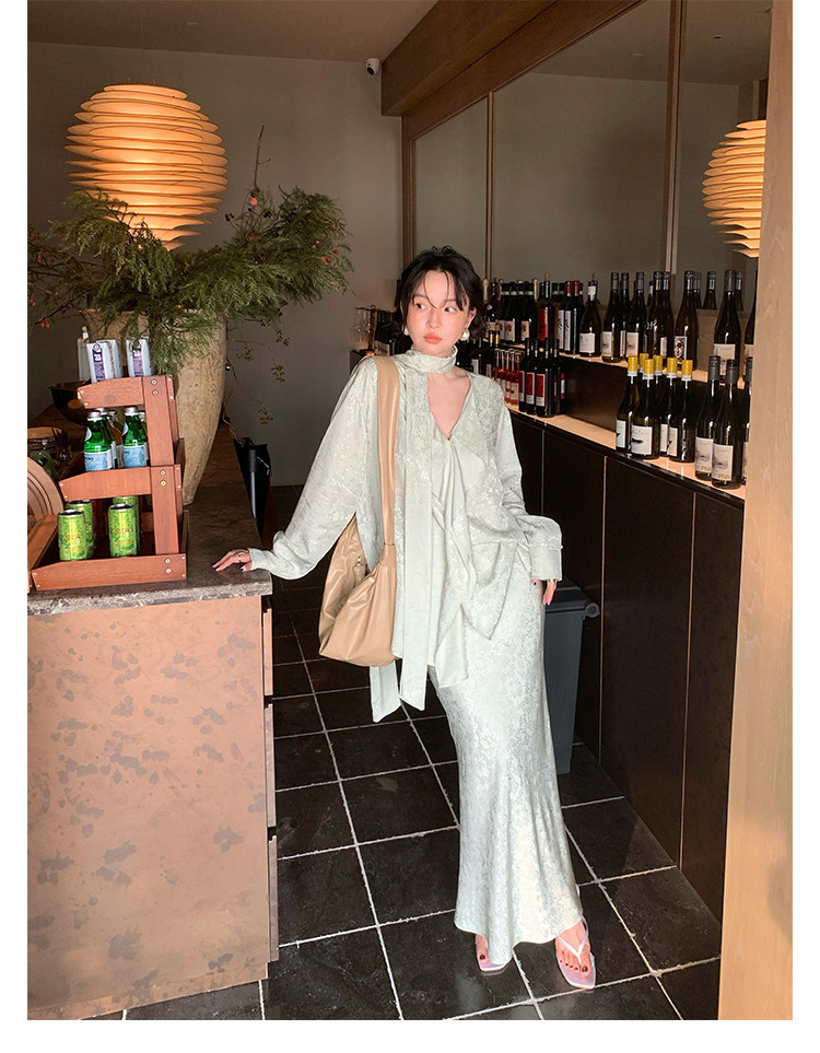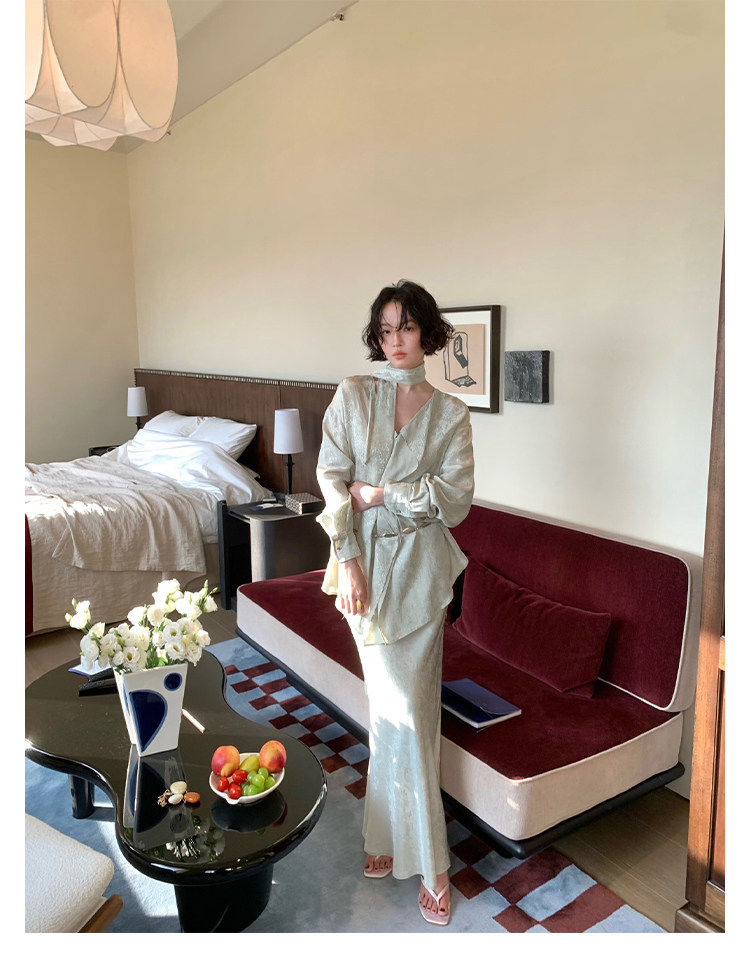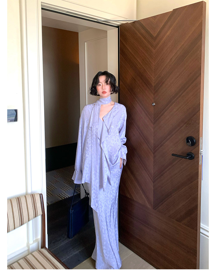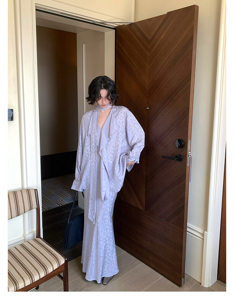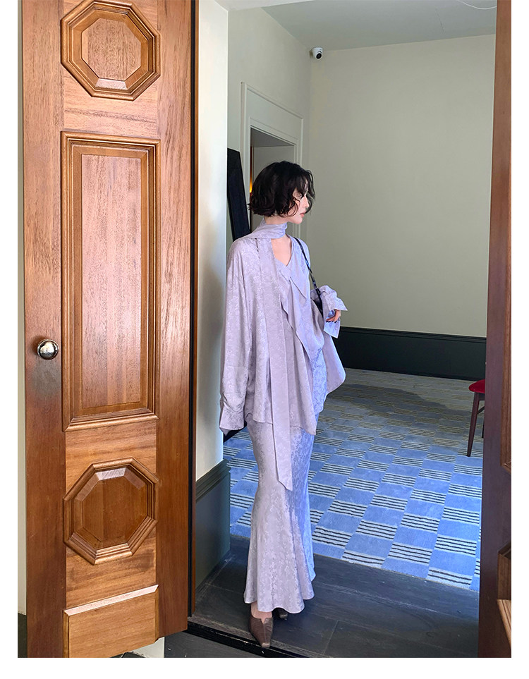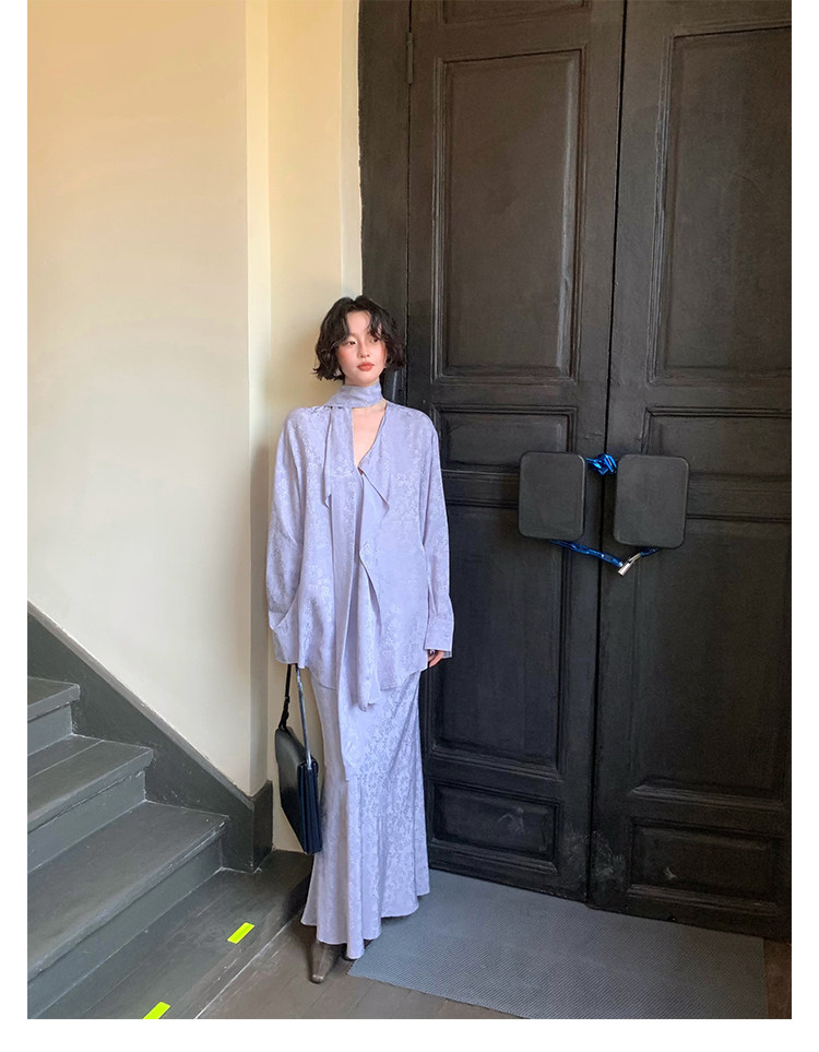 Azure Silk Tencel Shirt & Fishtail Skirt Set – Hong Kong Retro Autumn
