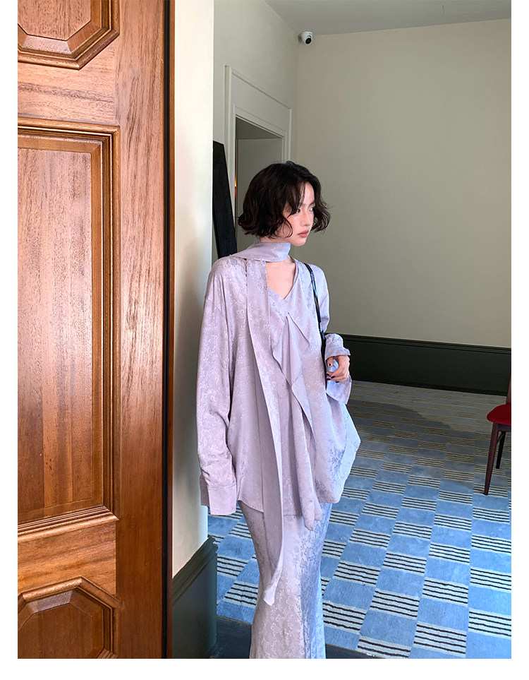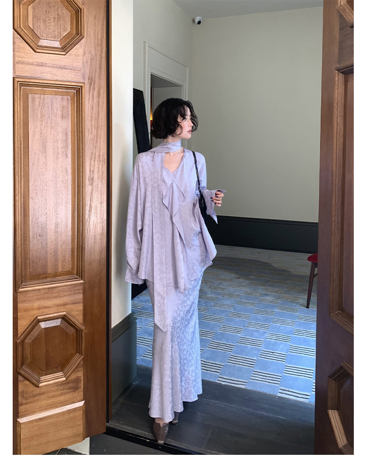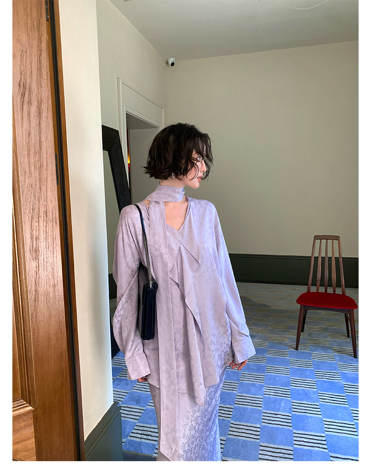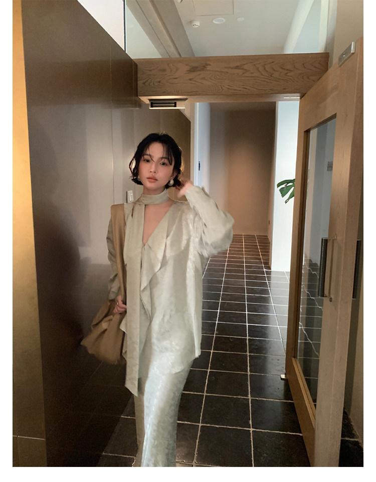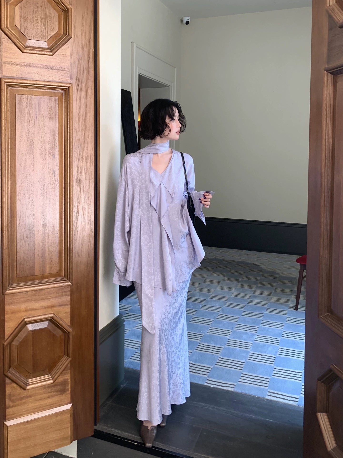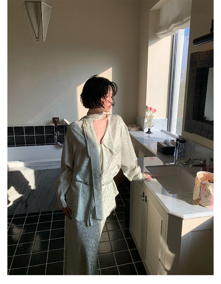 Azure Silk Tencel Shirt & Fishtail Skirt Set – Hong Kong Retro Autumn