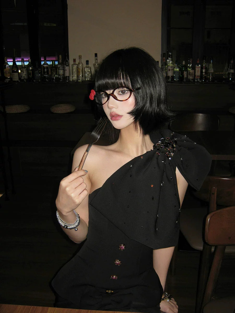 Black Diamond Bow Dress – Luxe Rich Daughter’s Party Gown