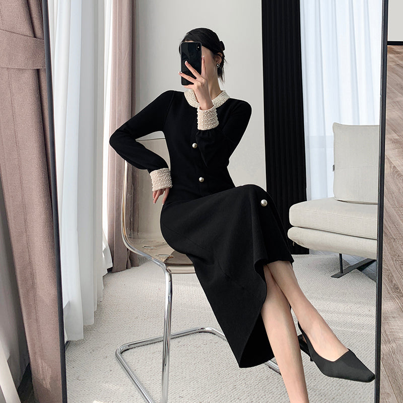 Black Knit Dress & Retro Long Skirt