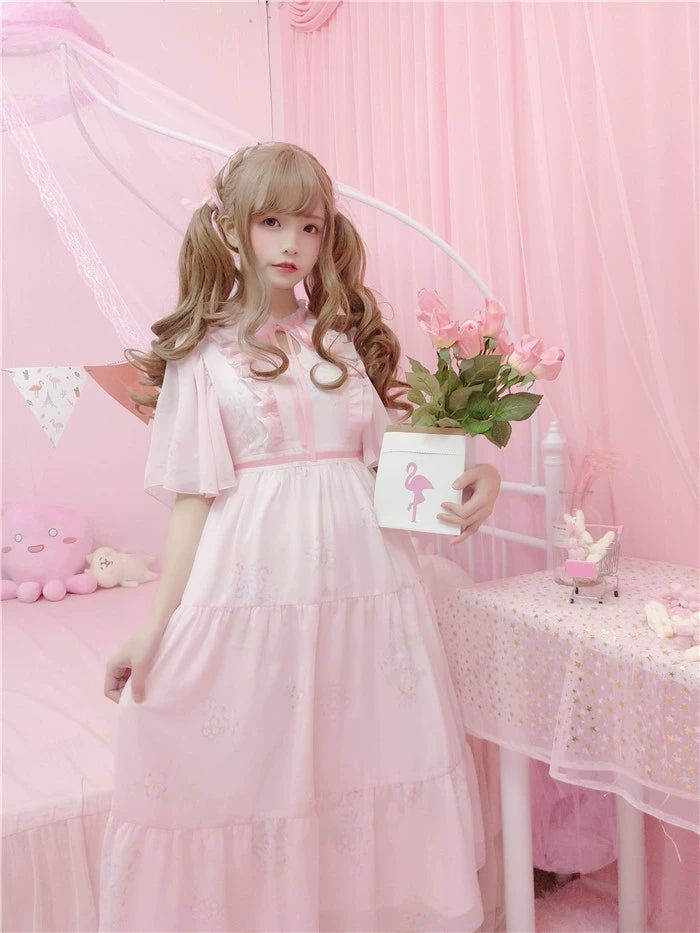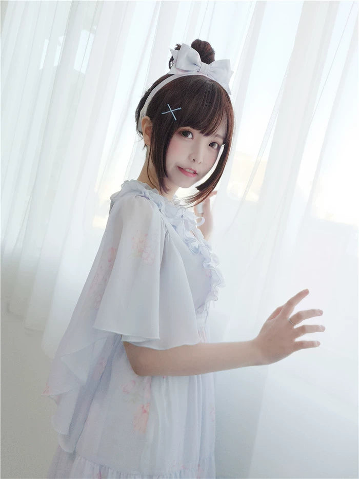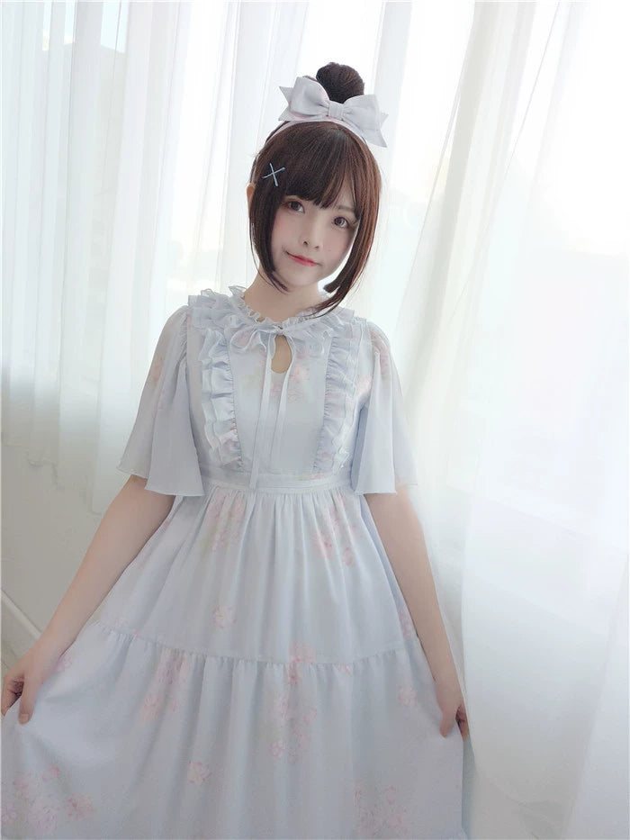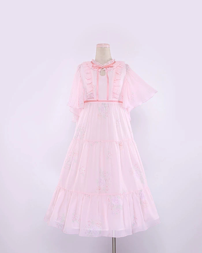 C394417 Cape Sleeve Floral Fairy Chiffon Maxi Dress