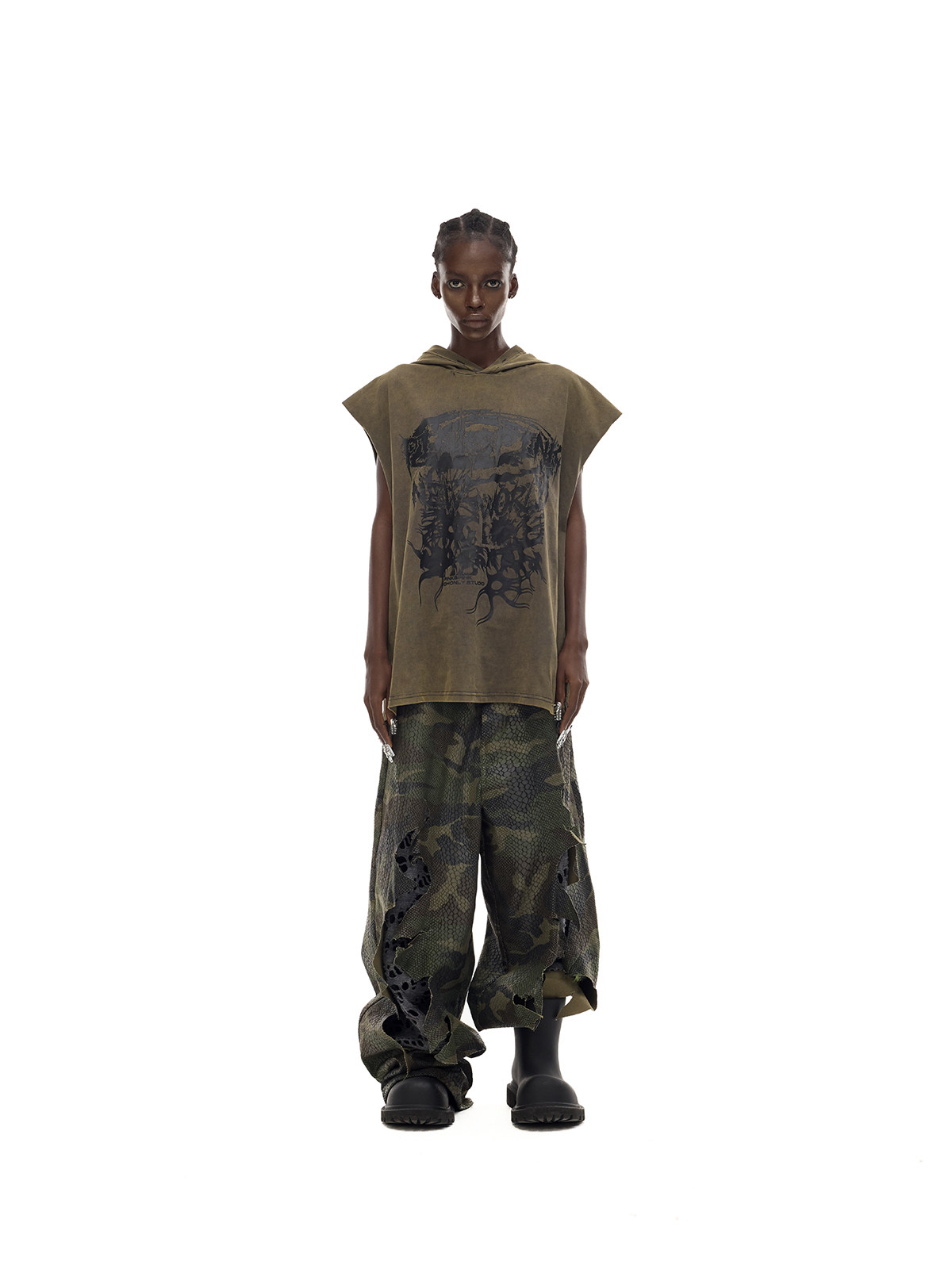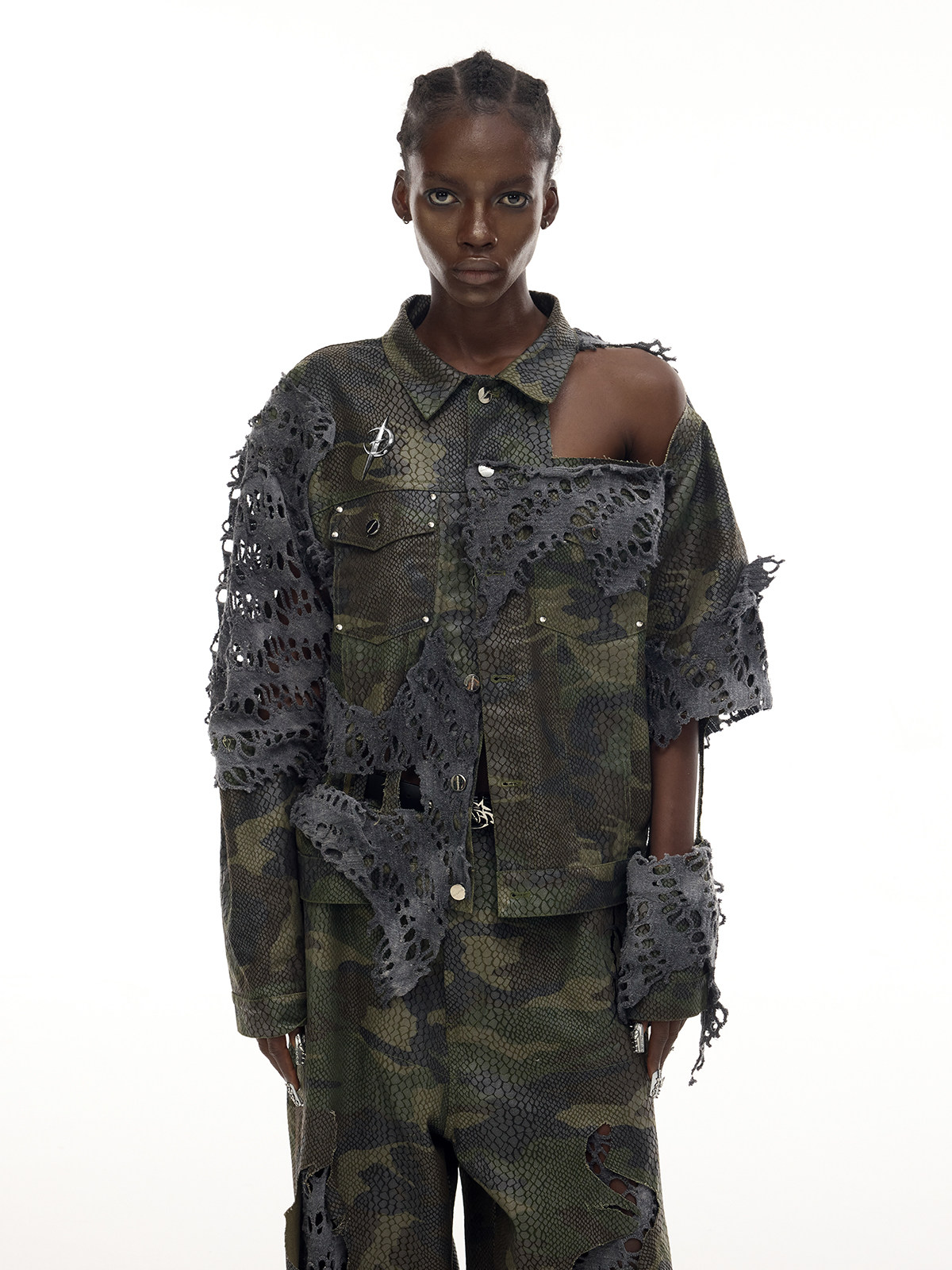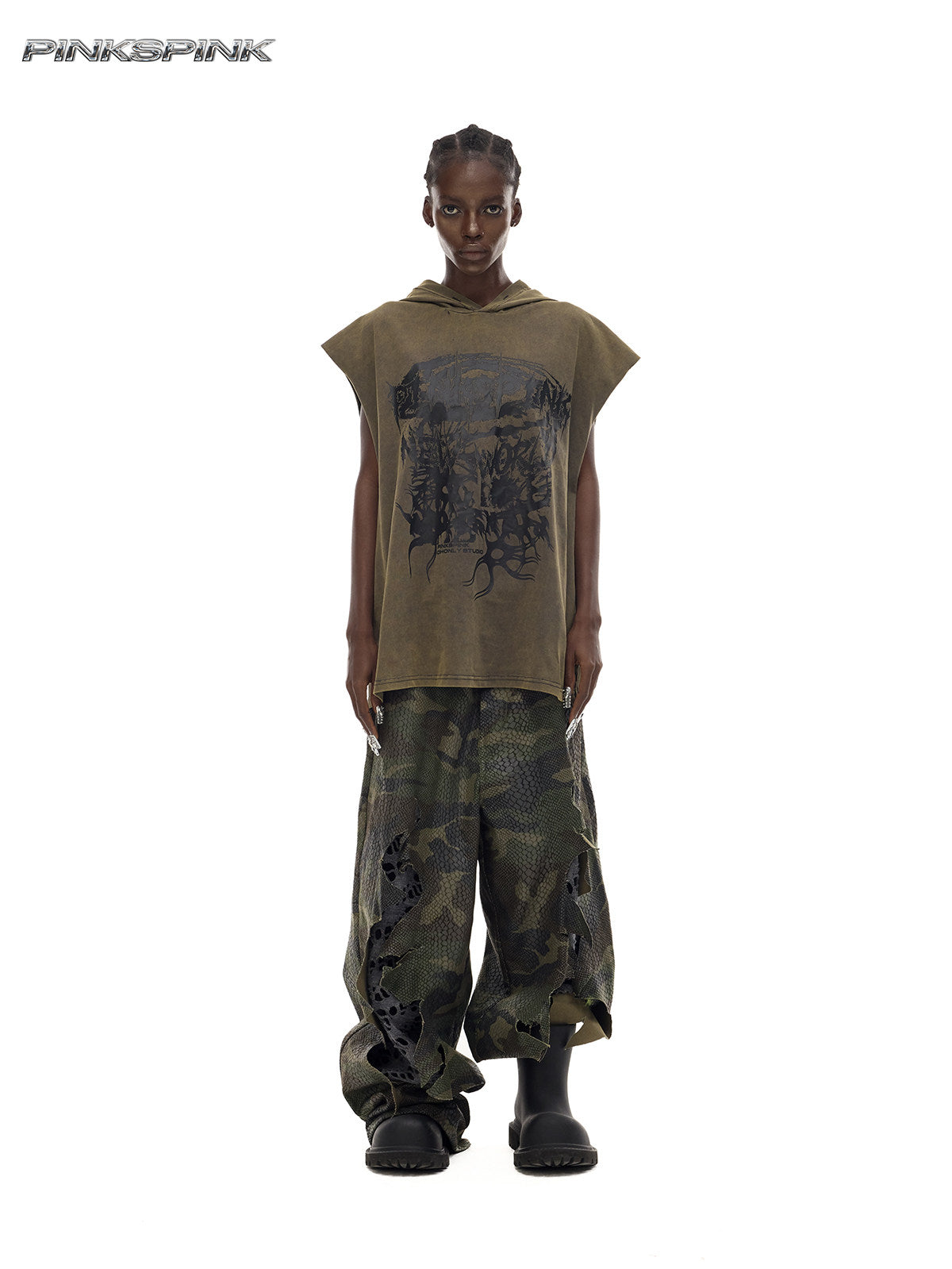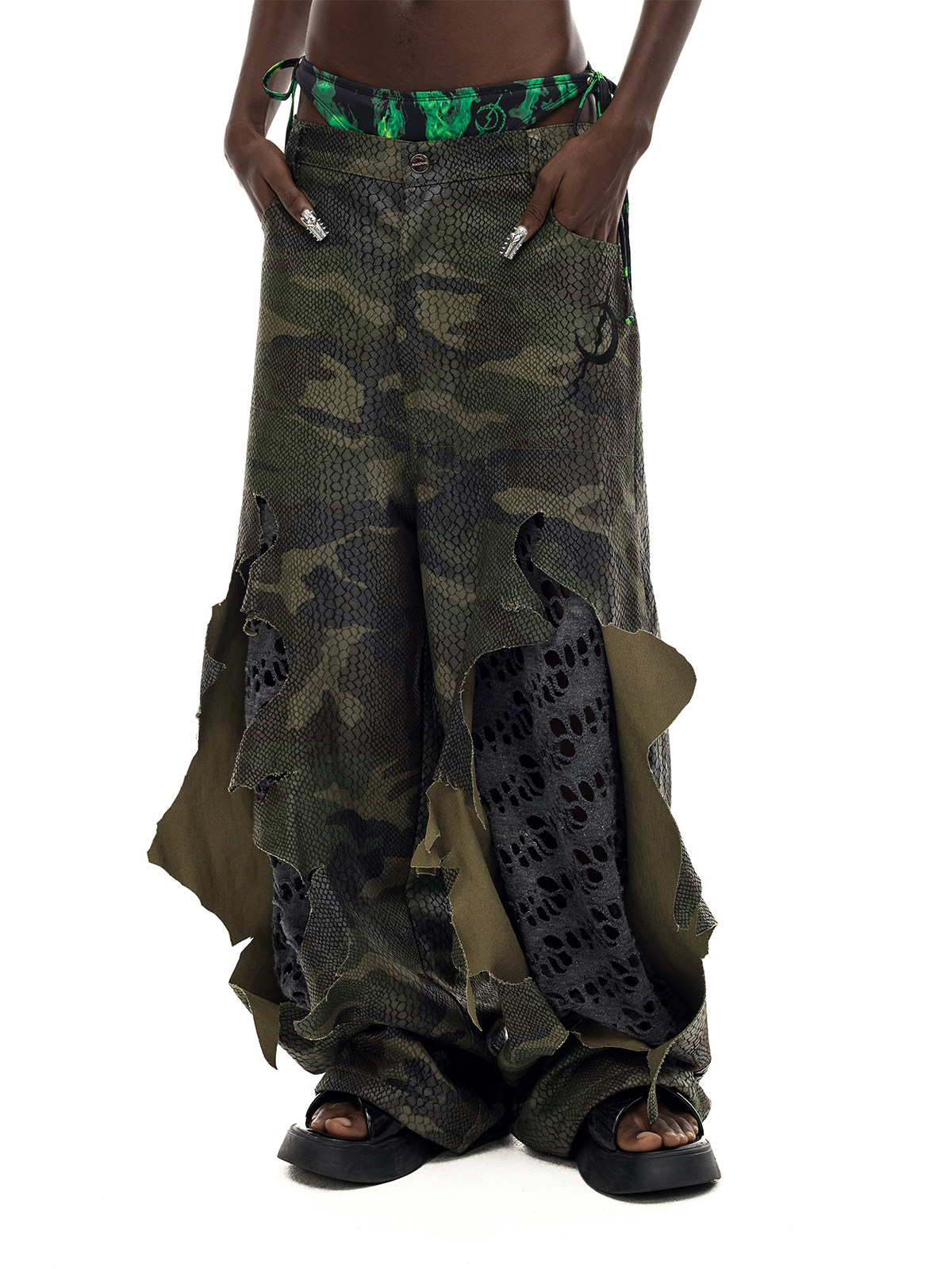 Camouflage Painted Distressed Low-Rise Unisex Y3K Jeans