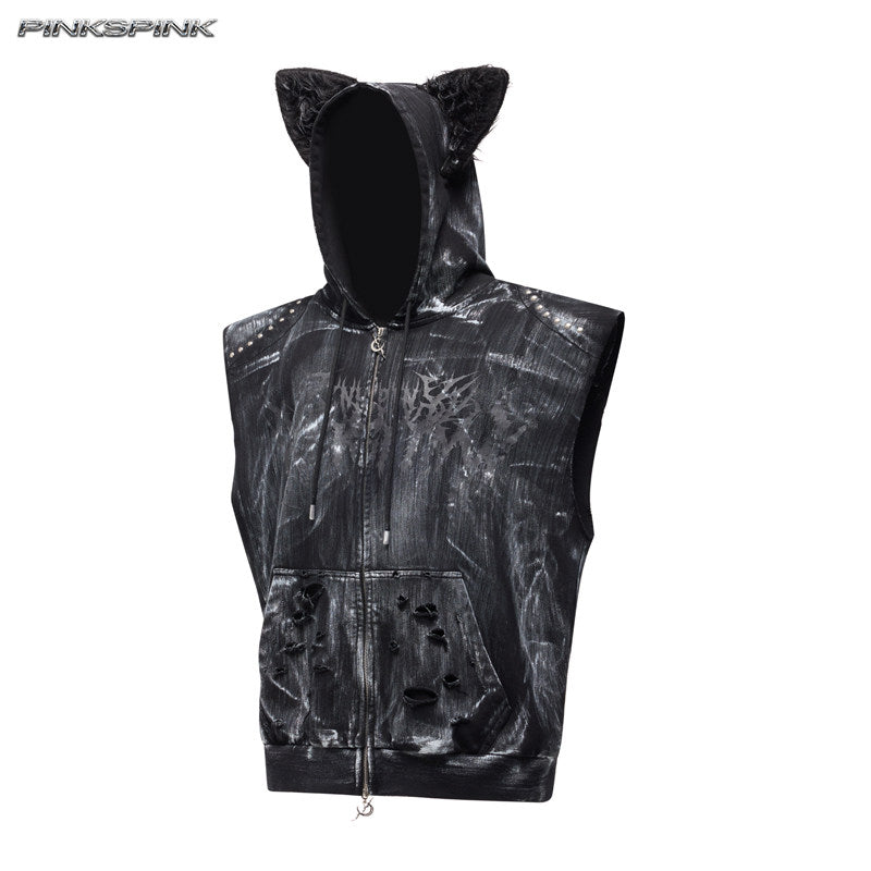 Cat Ear Rock Punk Sleeveless Unisex Y2K Jacket