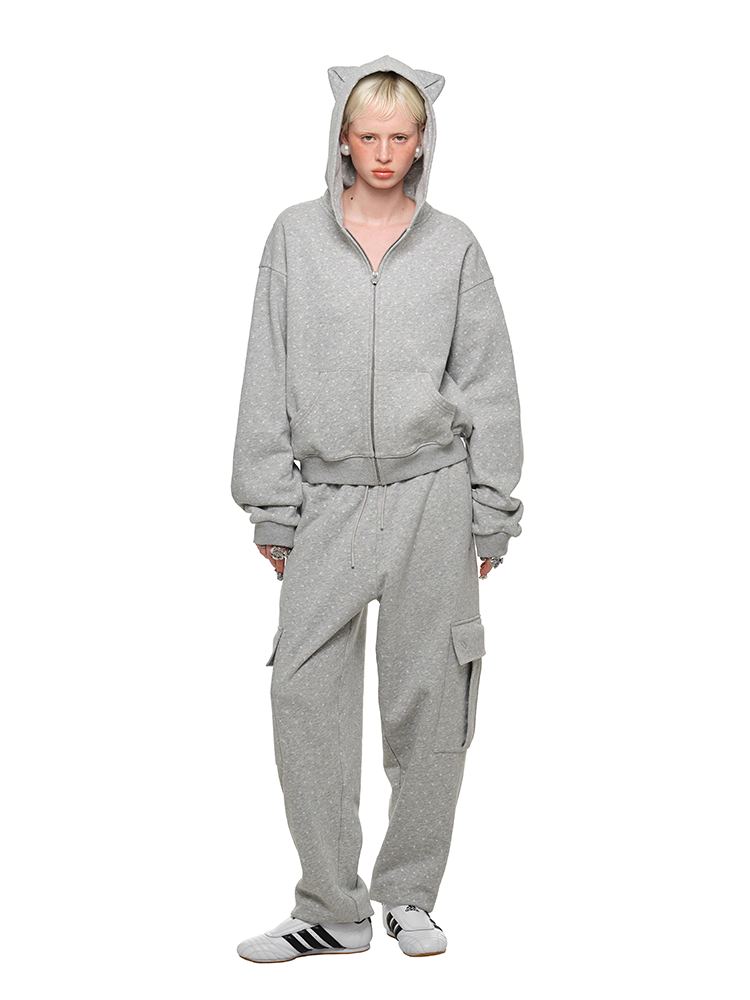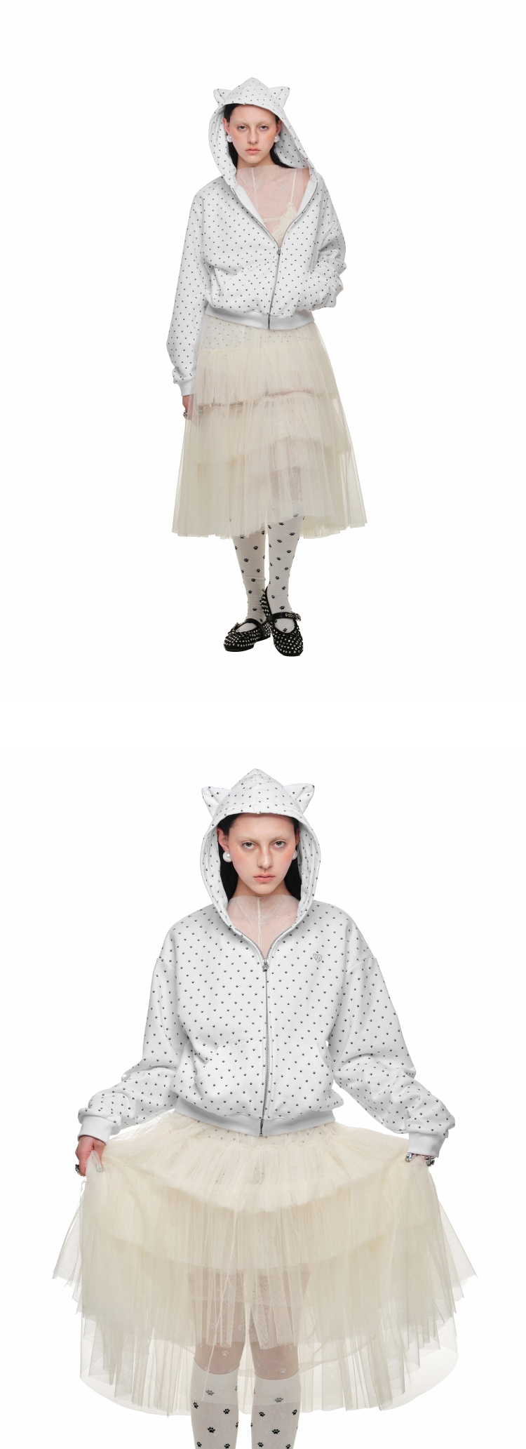 Cat Ear Hoodie Cardigan with Polka Dot Print – Cute and Slim Fit Sweatshirt Jacket