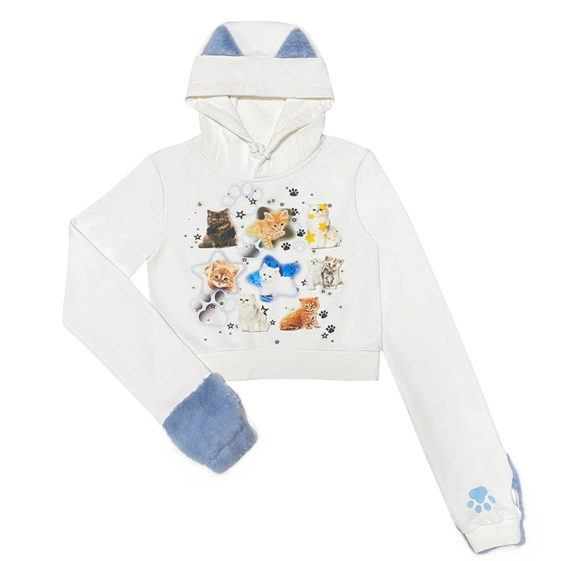 Cat Print Cat Ear Decoration Short Sweater