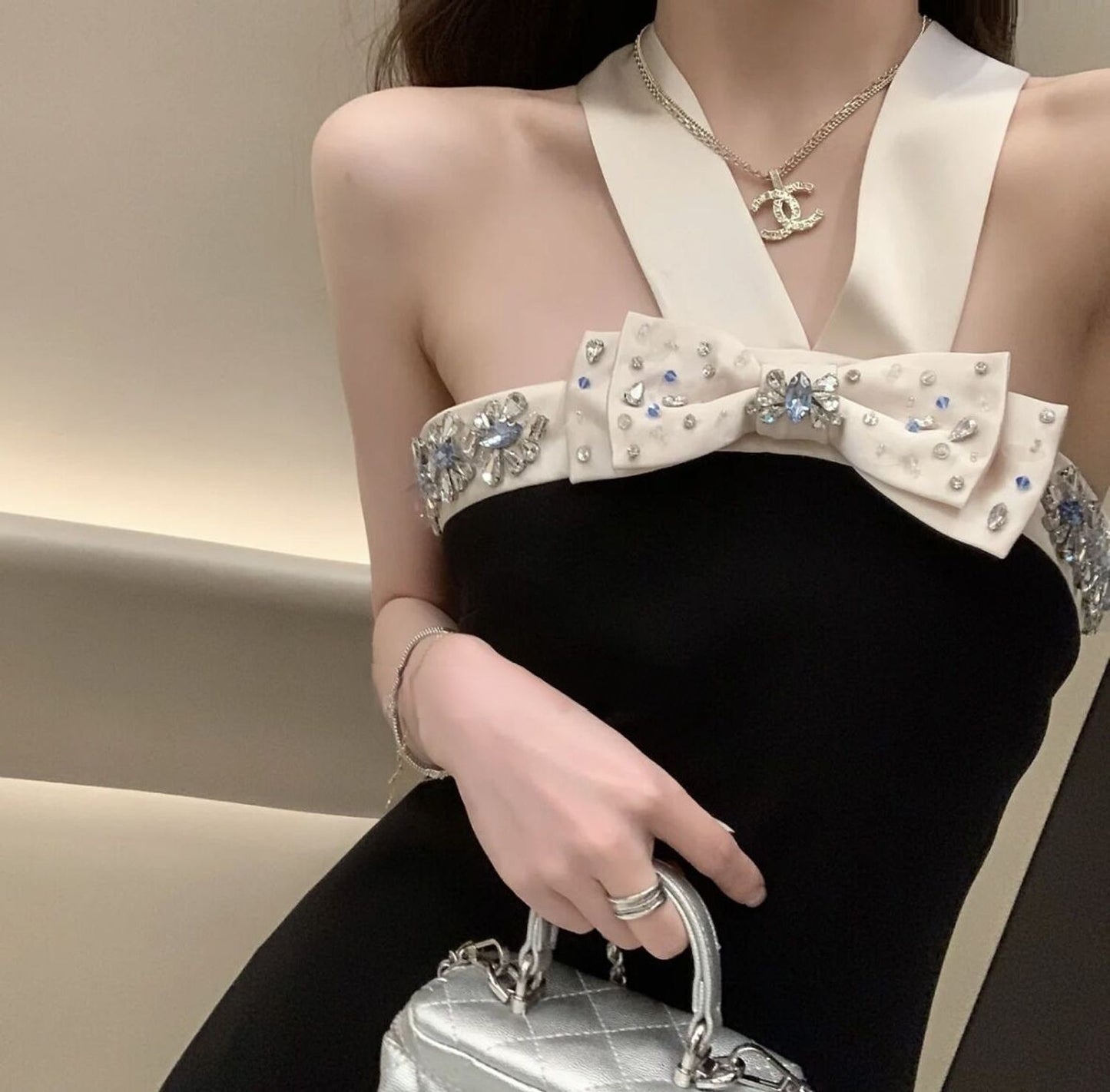 The Celeb Decollete Dress from Serendute boasts a unique style designed to flatter the figure and ensure a comfortable fit. The model is 165cm tall, weighs 46.5kg, and is wearing a size S.