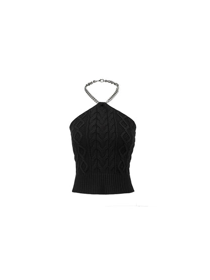 chain knit halterneck bandeau top women's hip low rise shorts set
