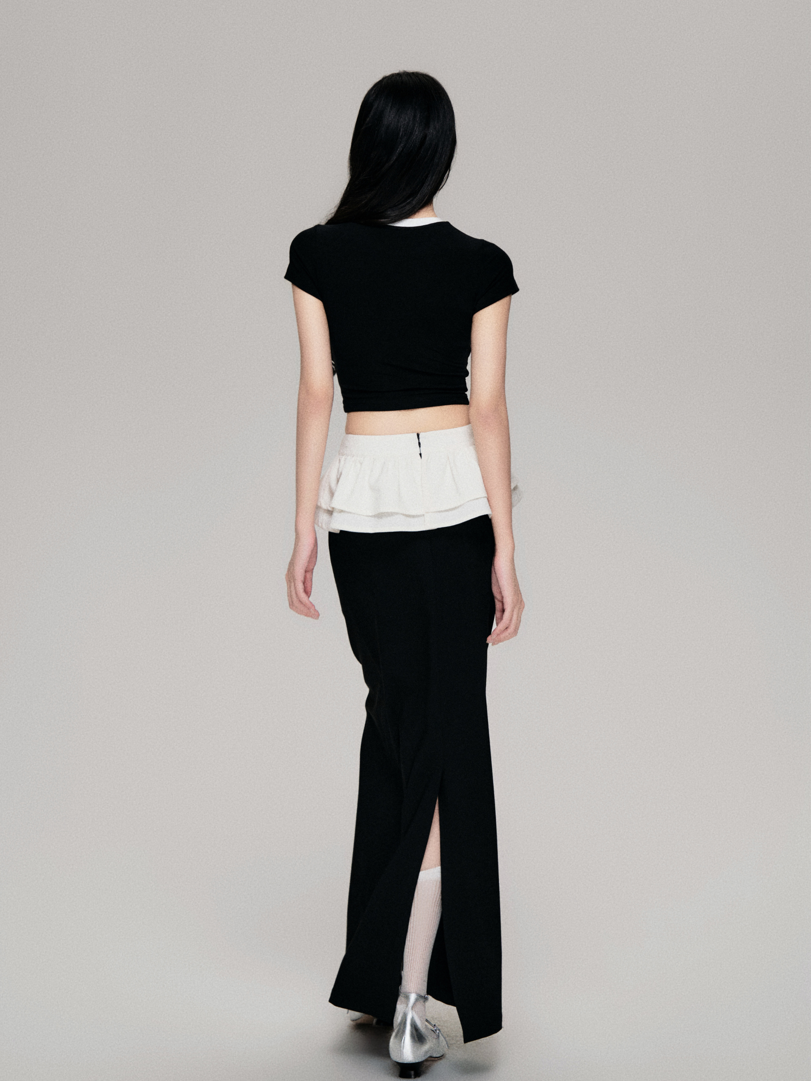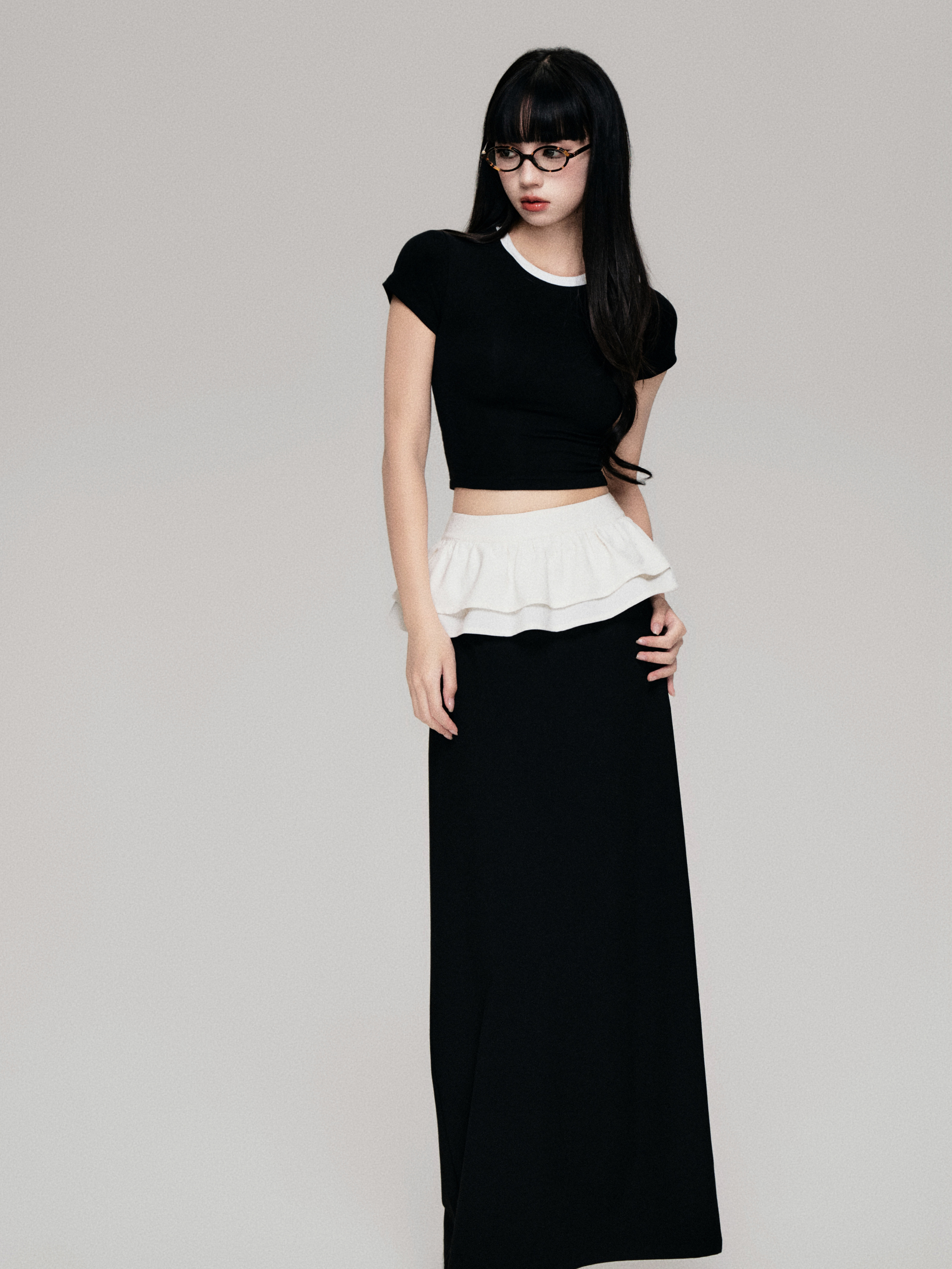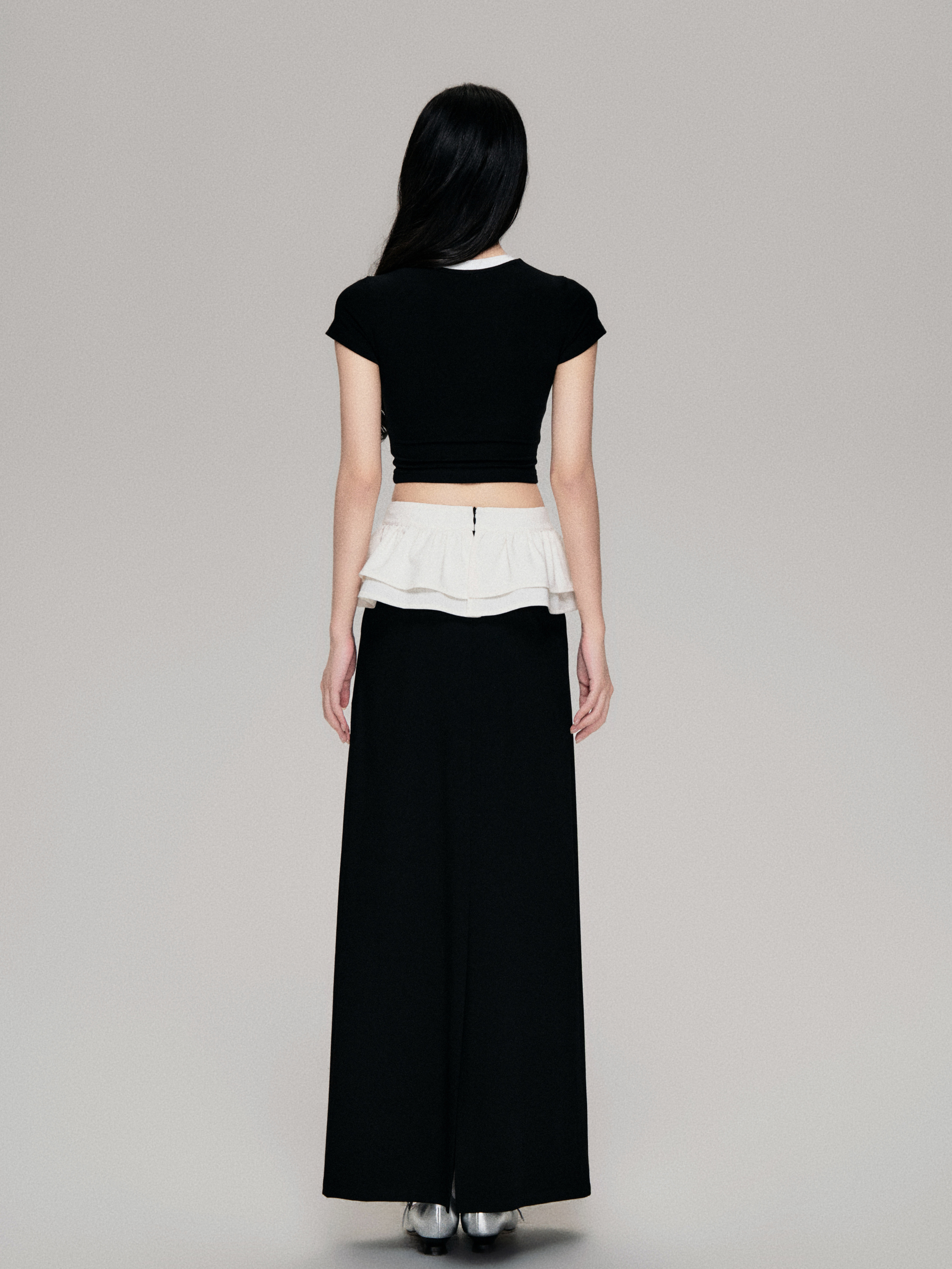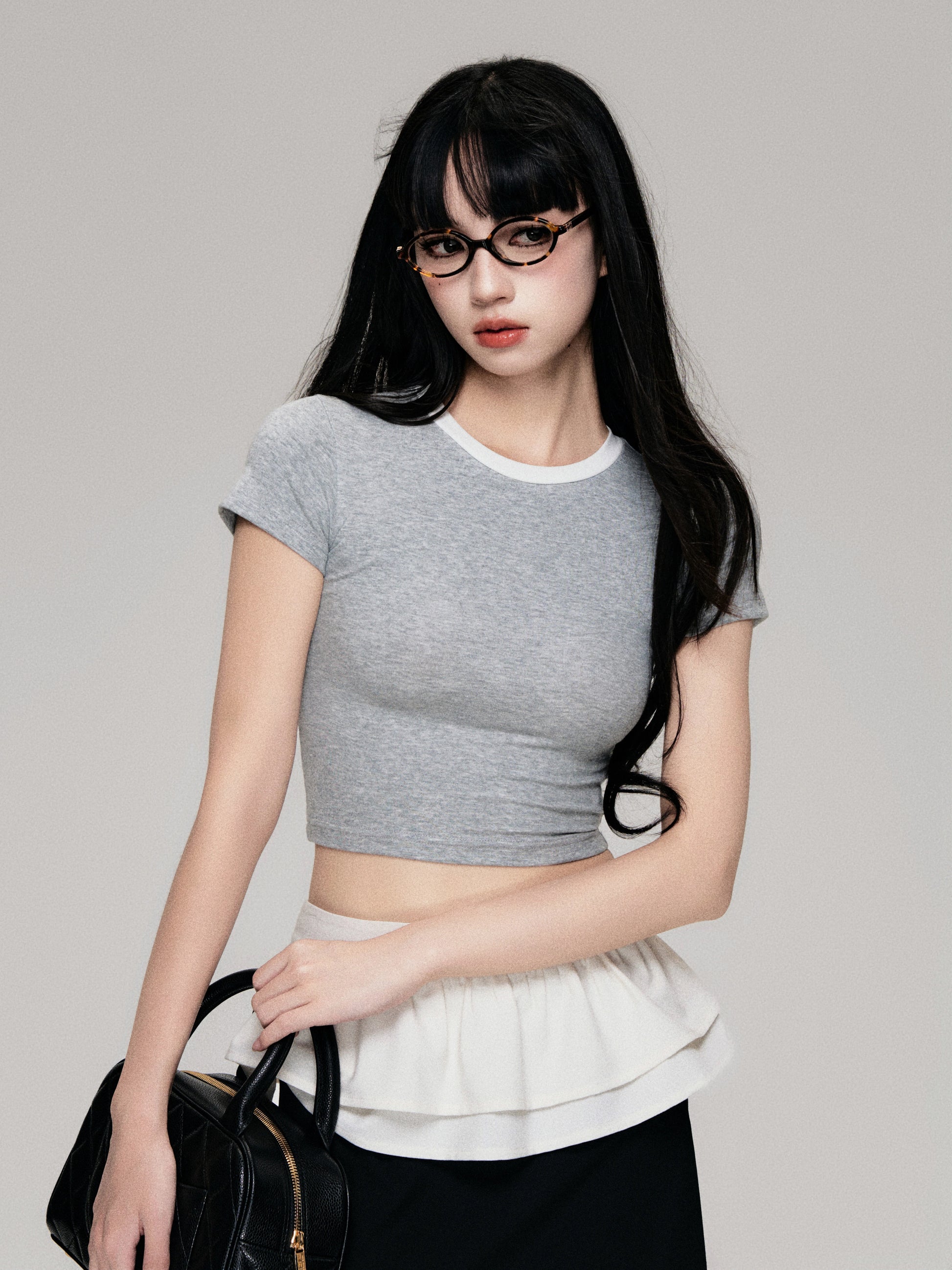 Color-Blocked Crewneck Tencel Slim Fit Two-Piece Tee