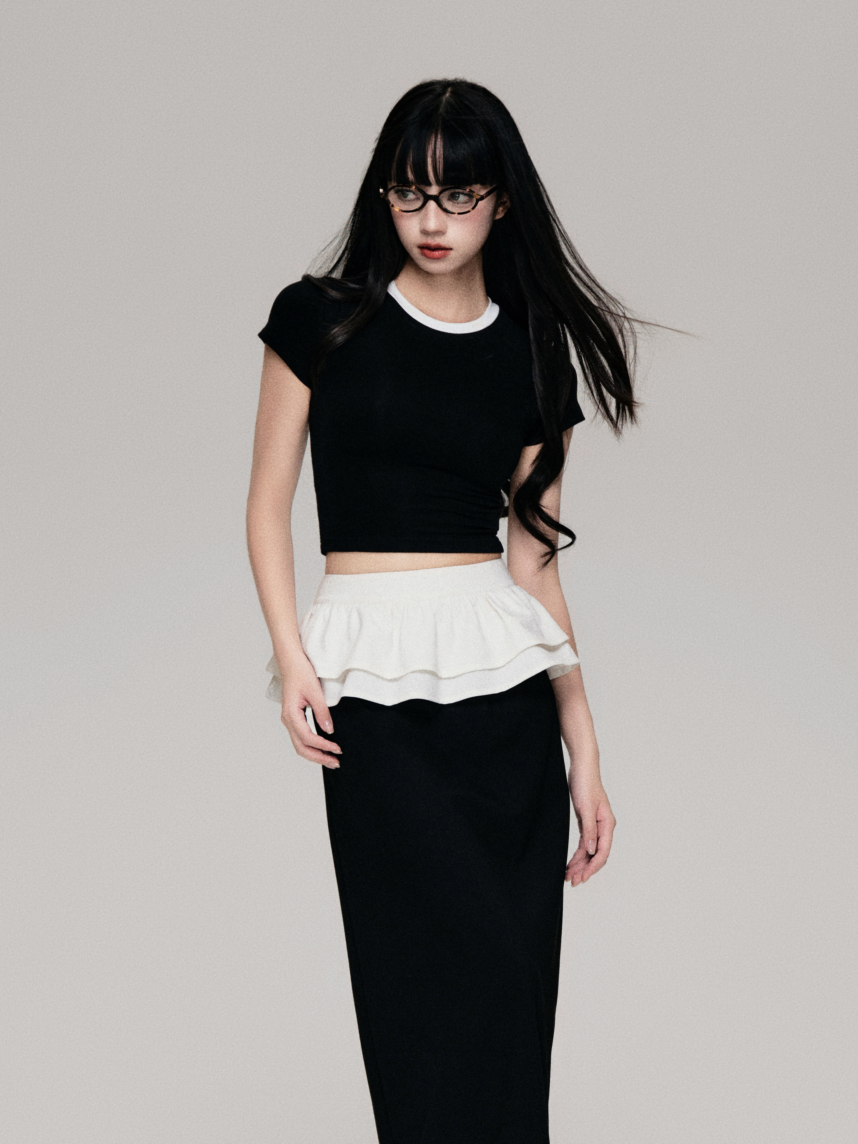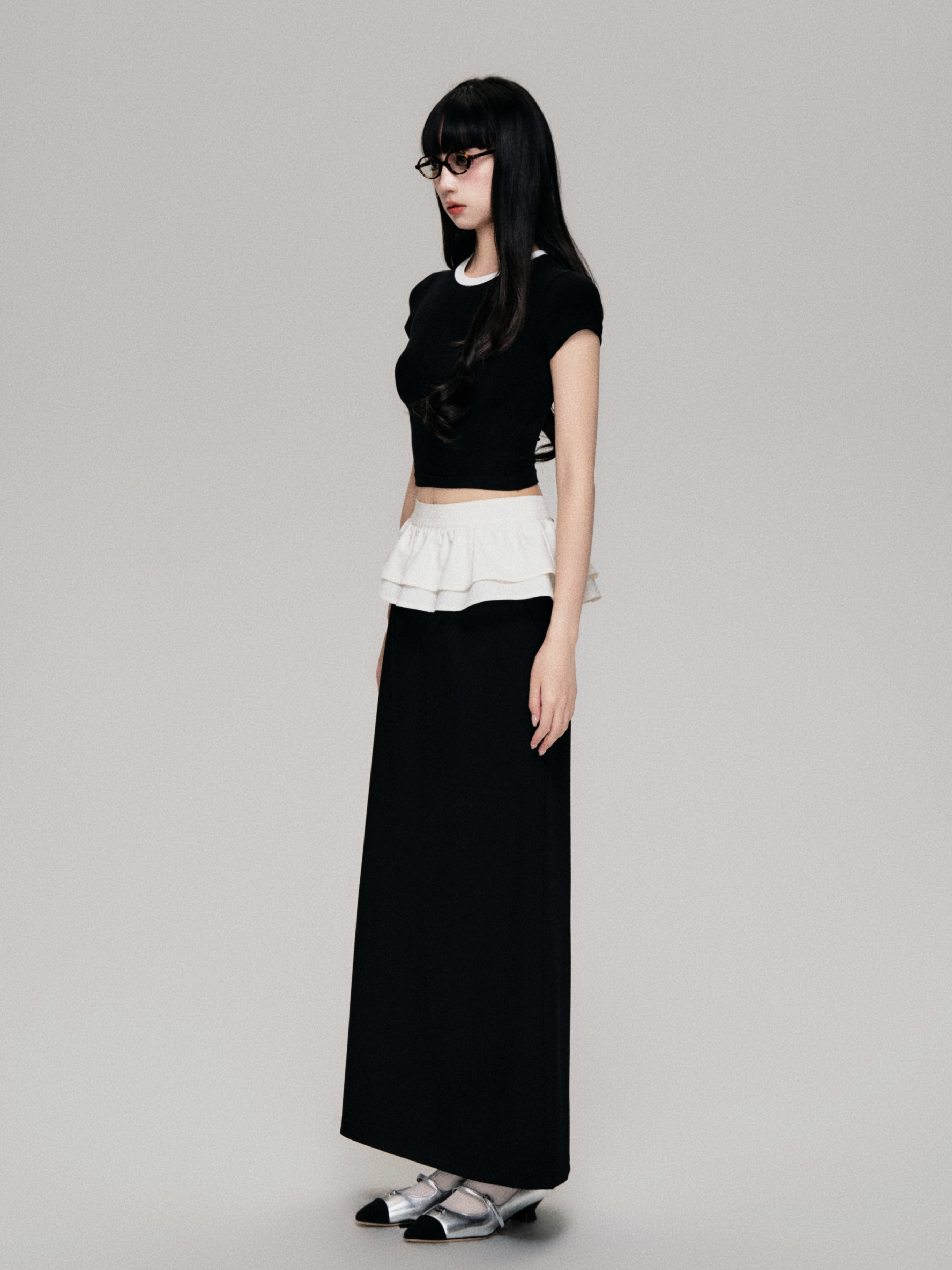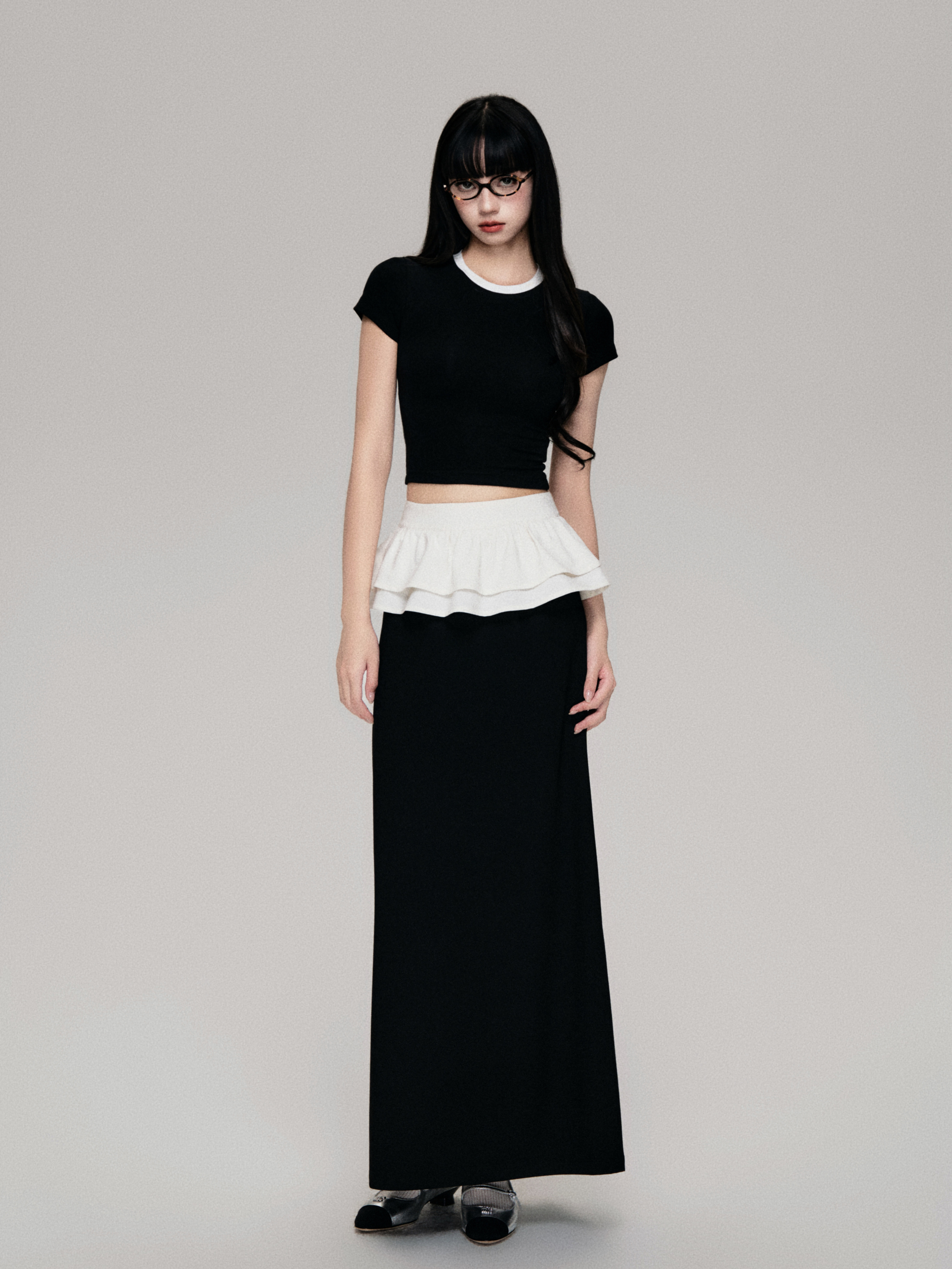 Color-Blocked Crewneck Tencel Slim Fit Two-Piece Tee
