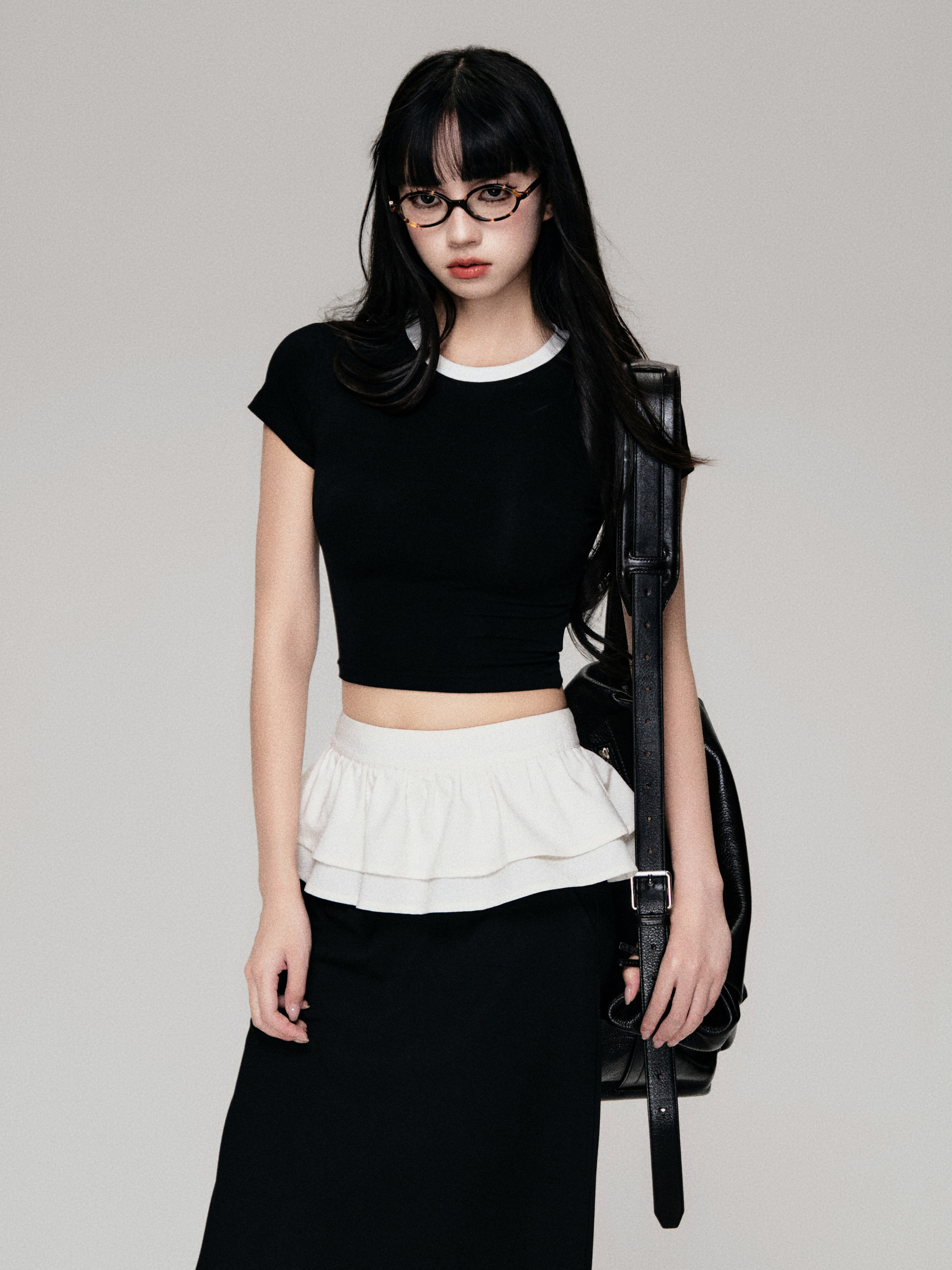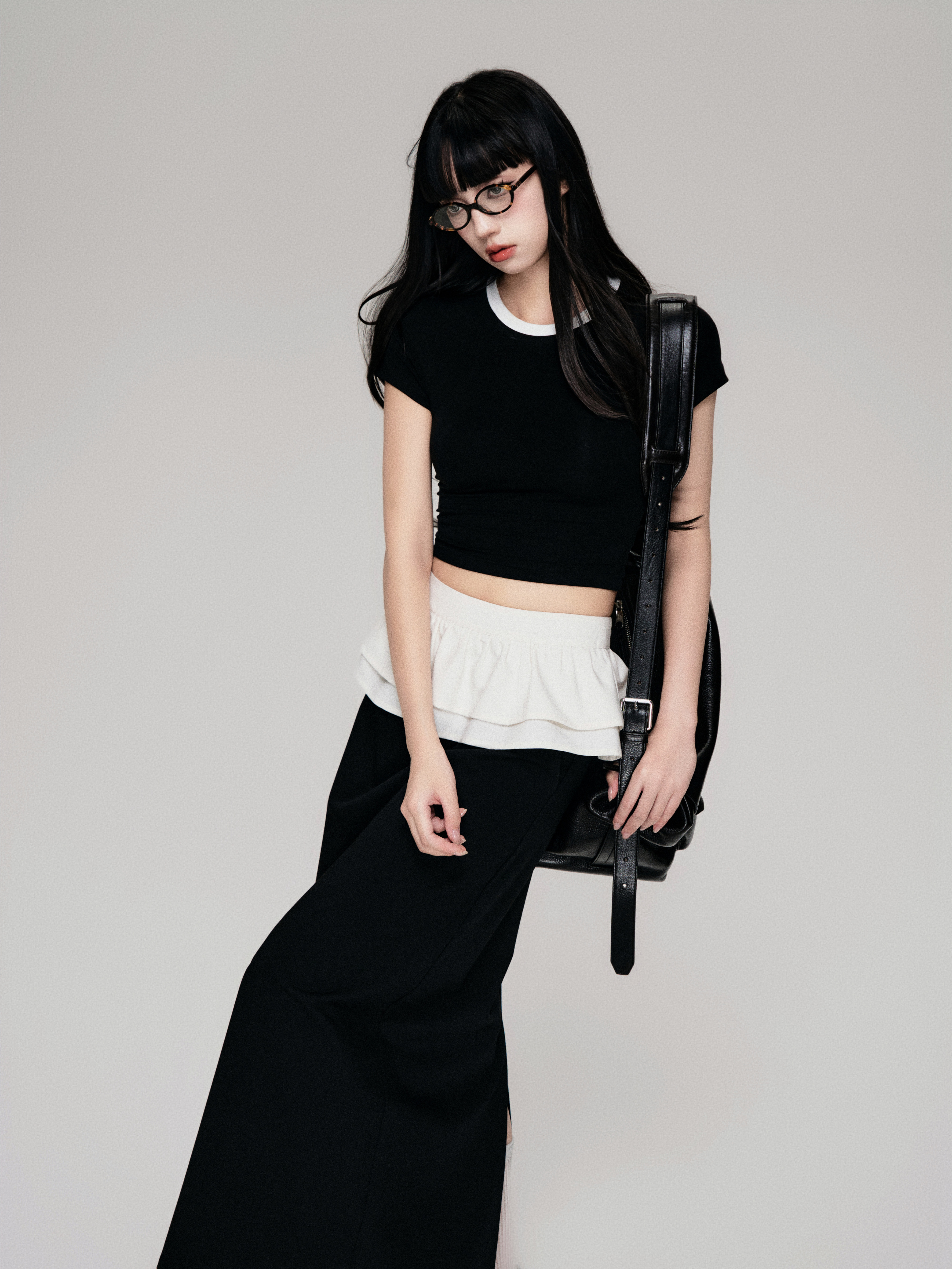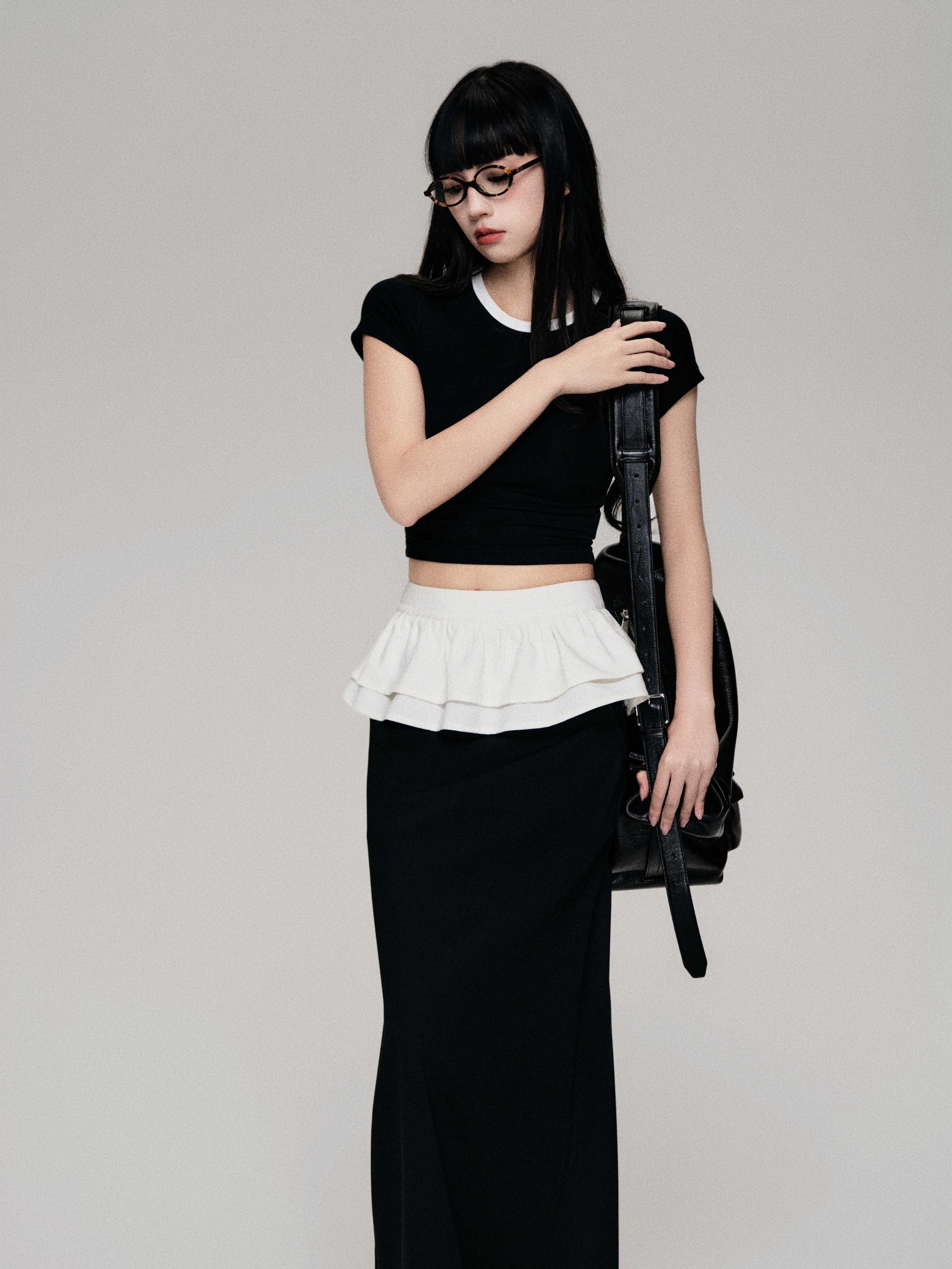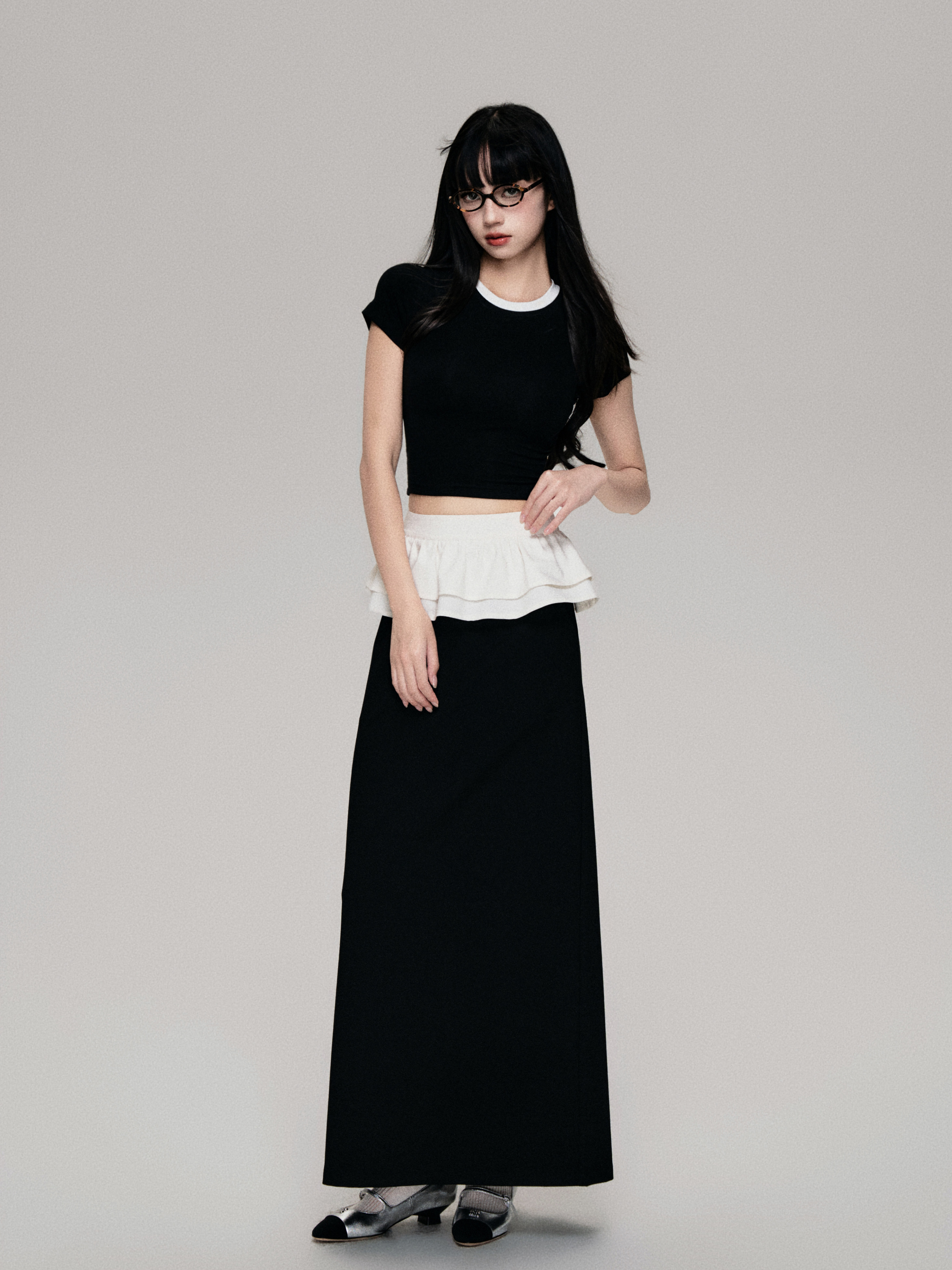 Color-Blocked Crewneck Tencel Slim Fit Two-Piece Tee