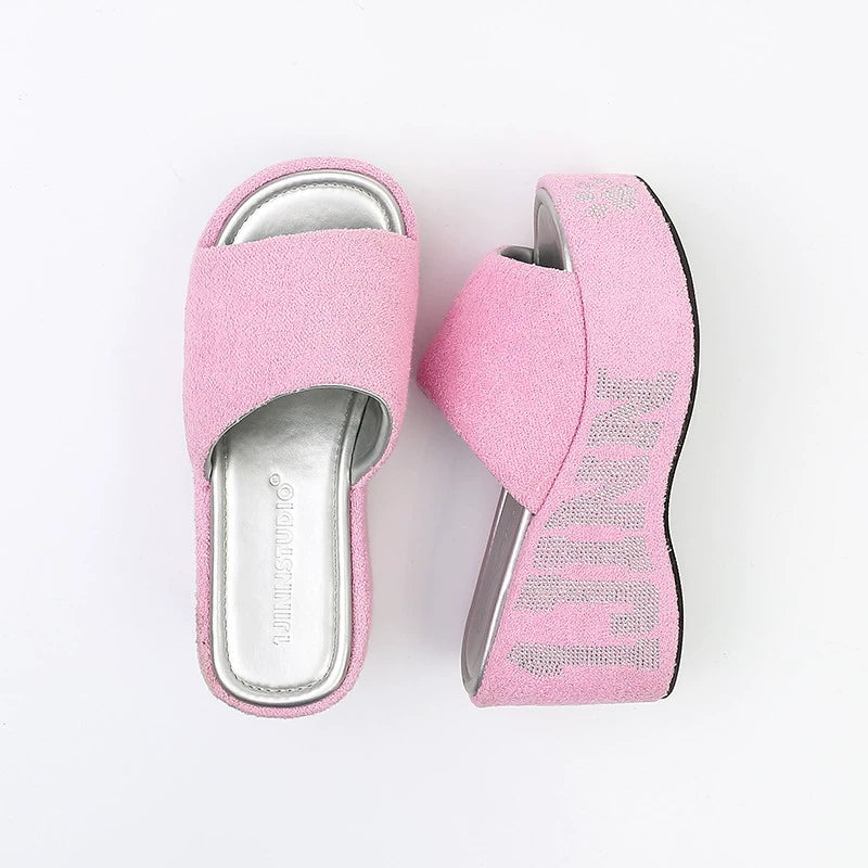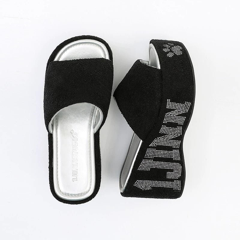 Hot Diamond Slope Heel Slippers