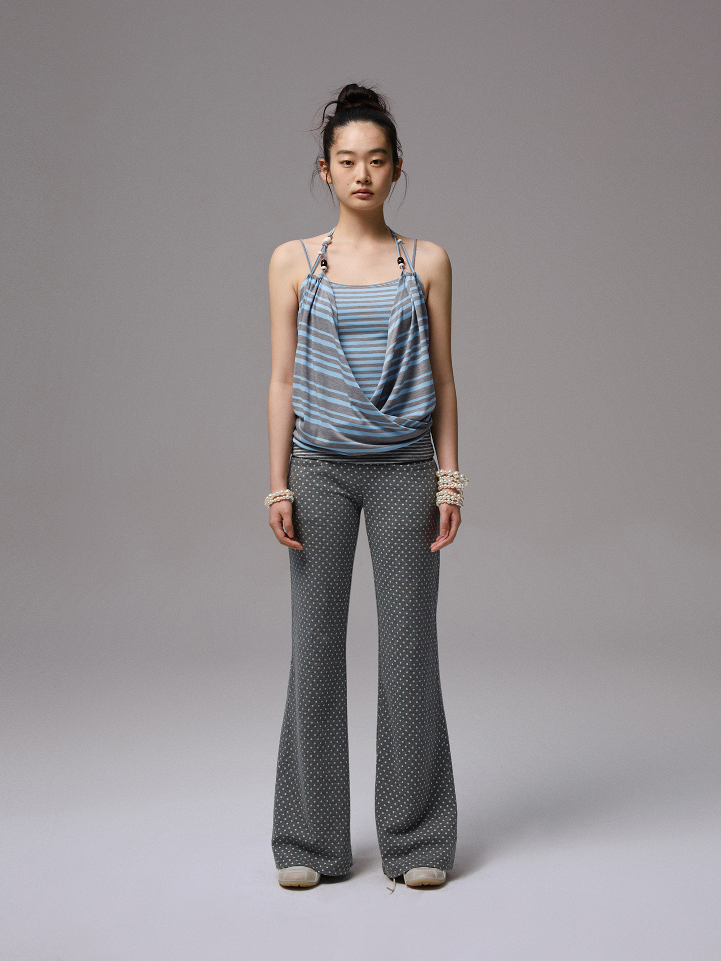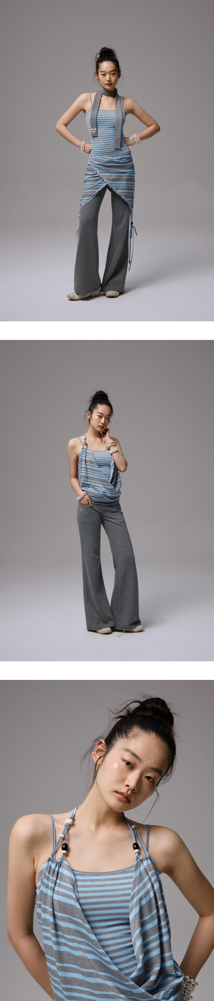 Beaded Halterneck Camisole – Contrast Stripe Fake Two-Piece Crop Top