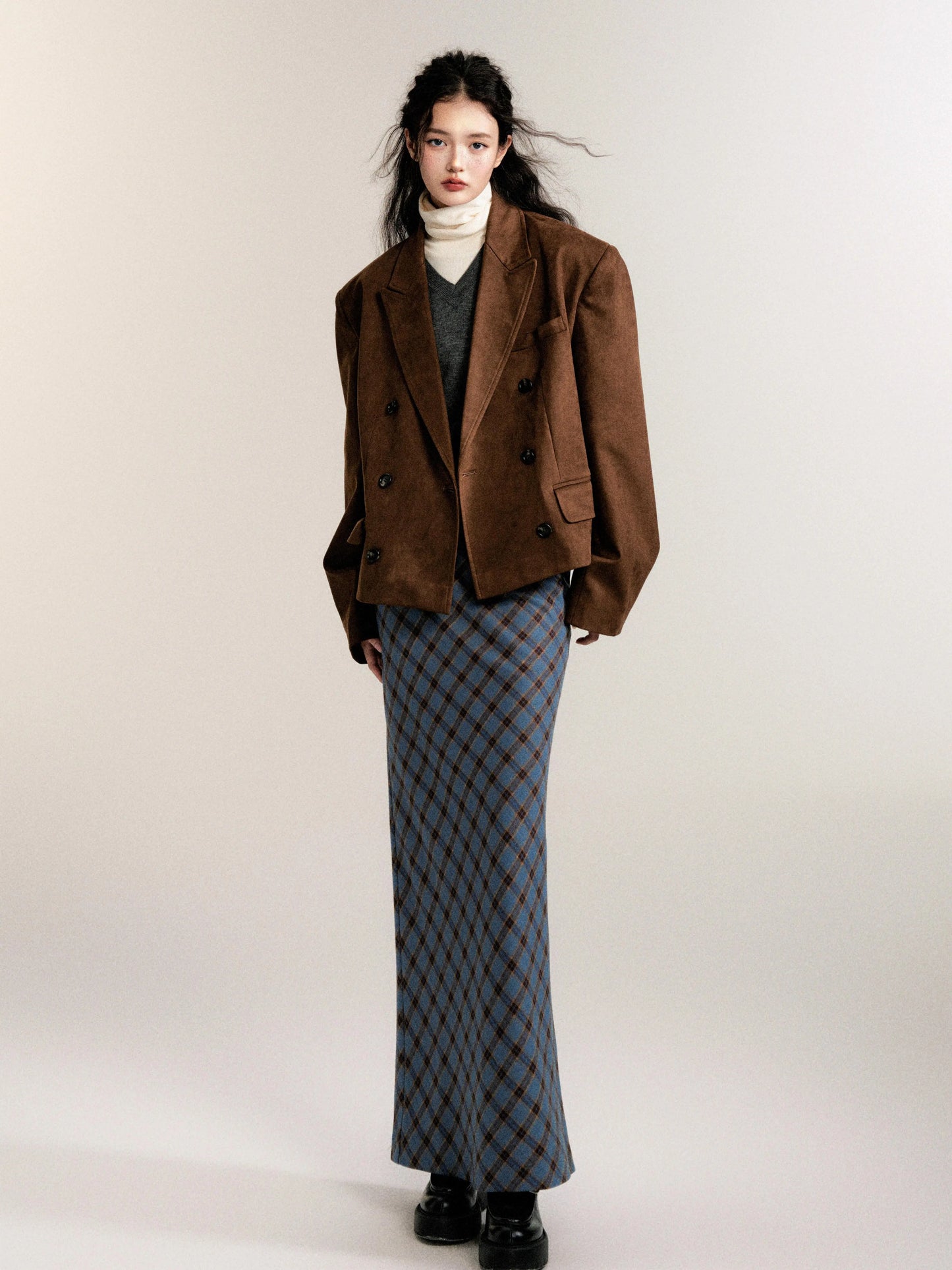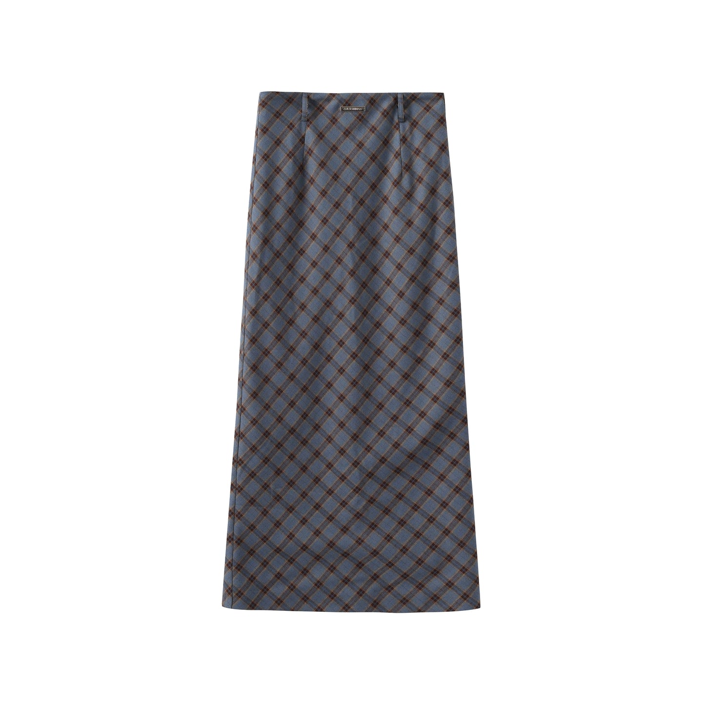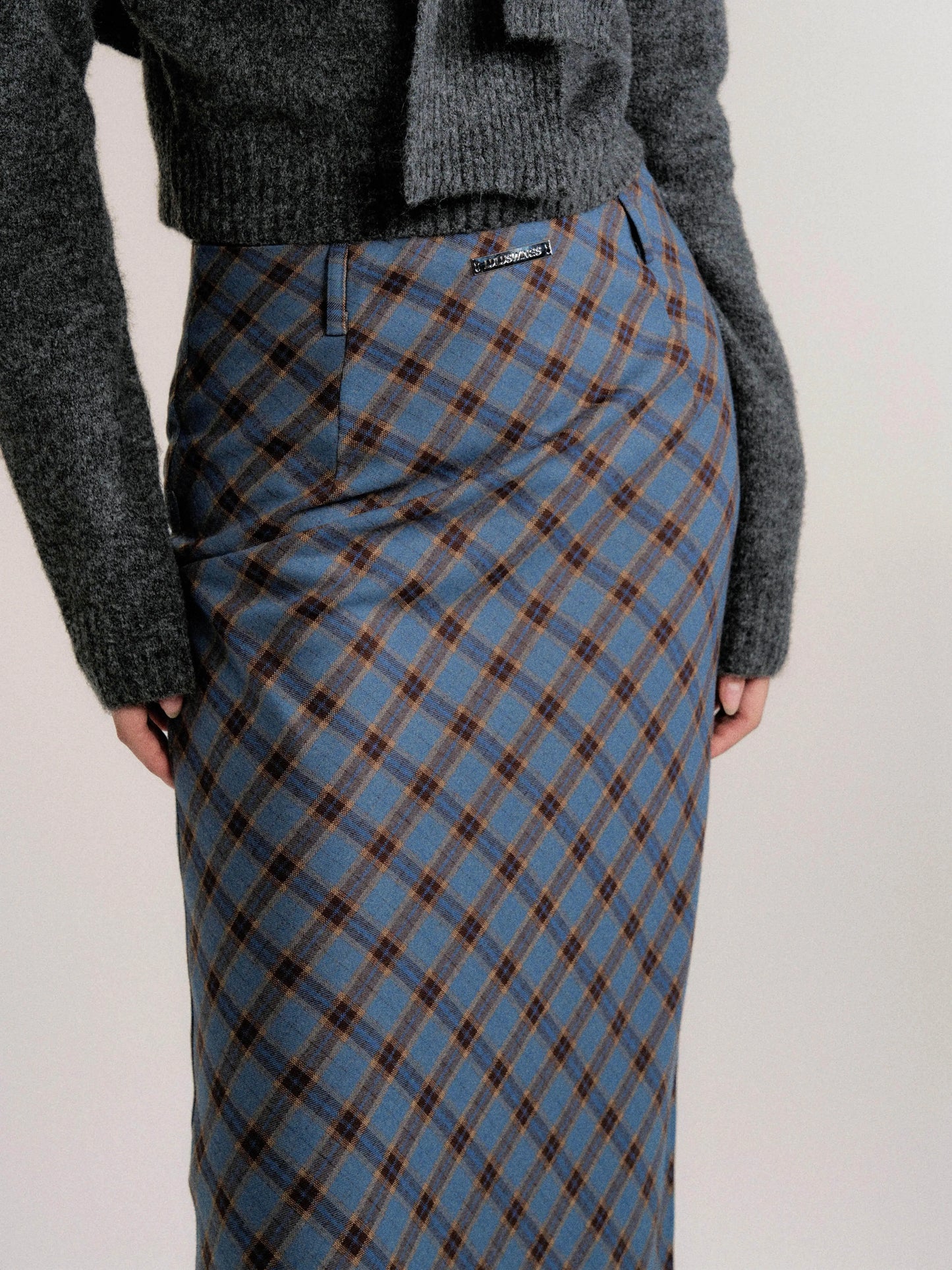 Retro Chic Blue Check A-Line Skirt for Women (Preppy Style)