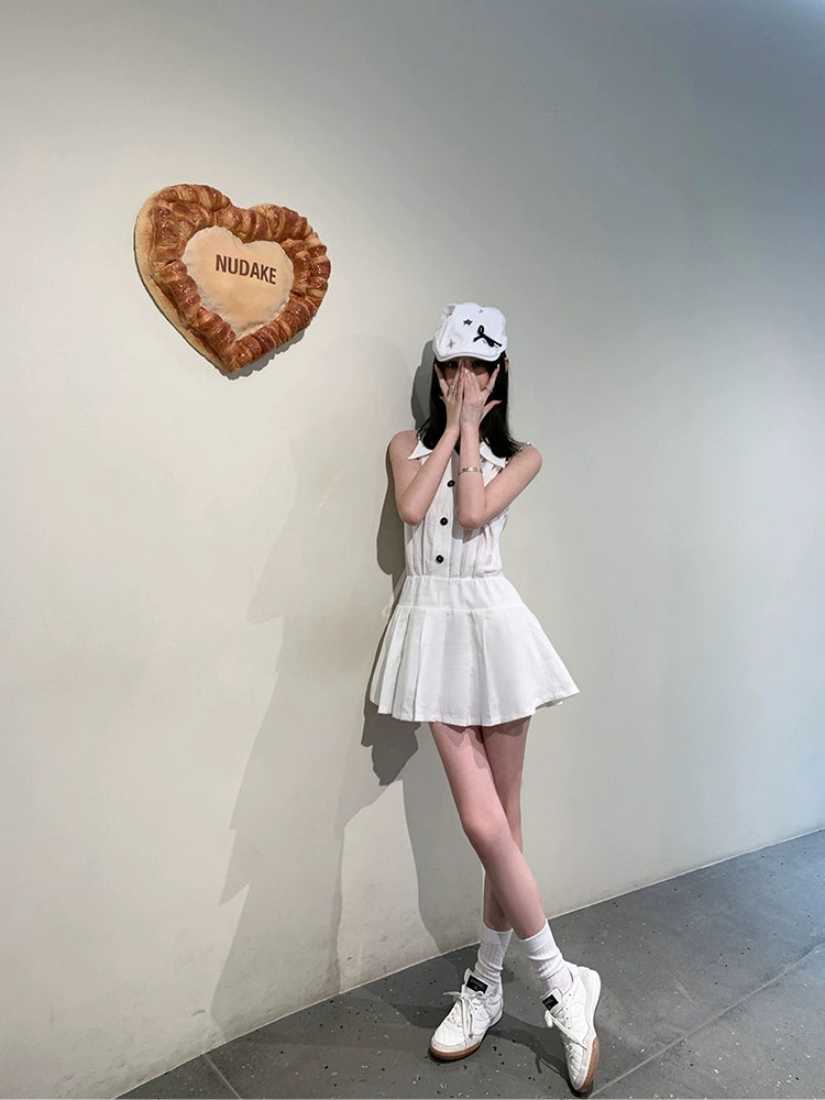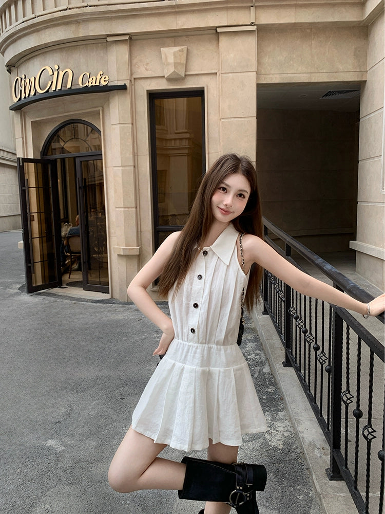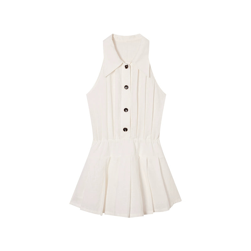 Daylight Tulle Linen Halterneck Dress - Pleated Sleeveless Summer Style