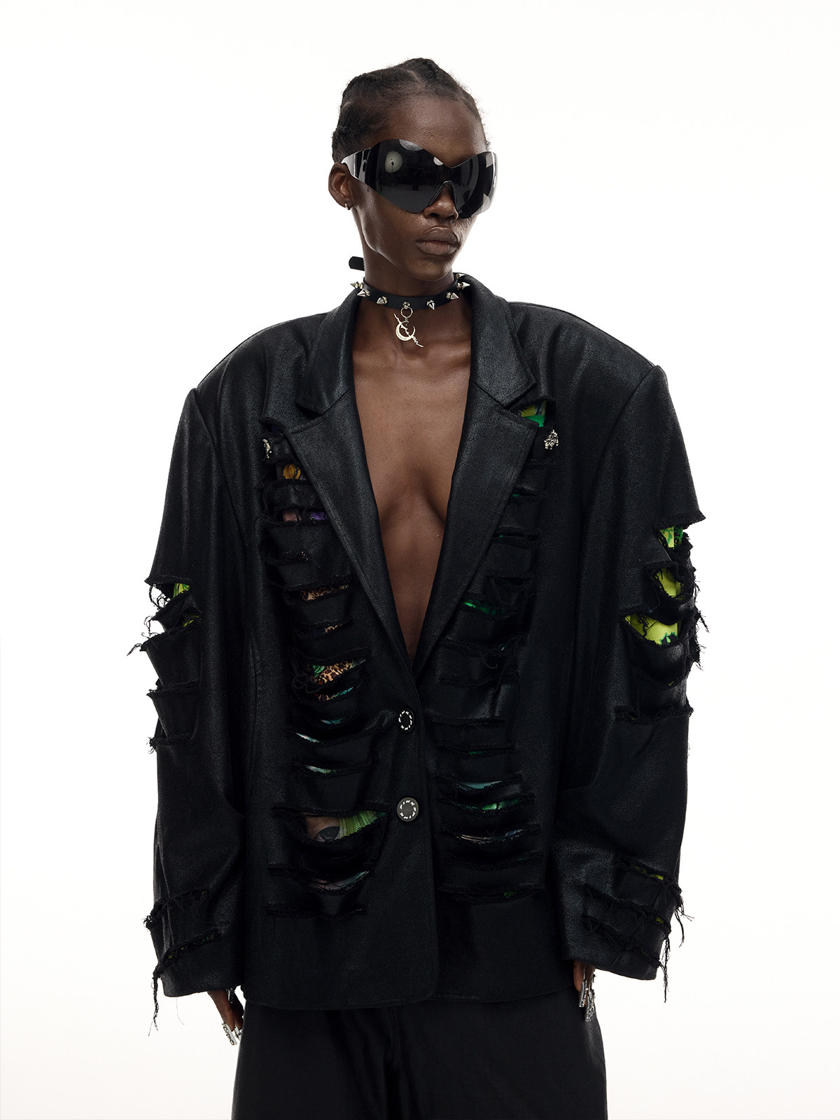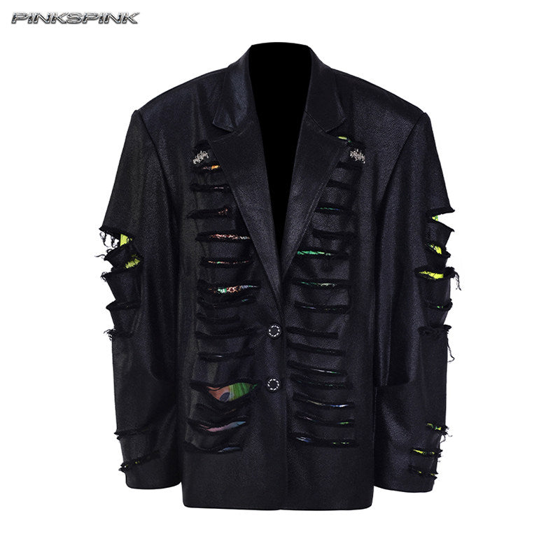 Distressed Genderless Structured Blazer – Punk Silhouette