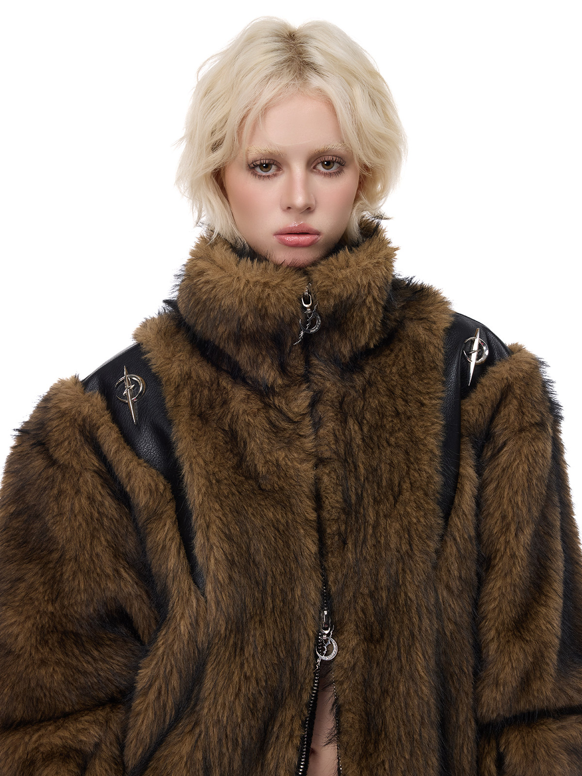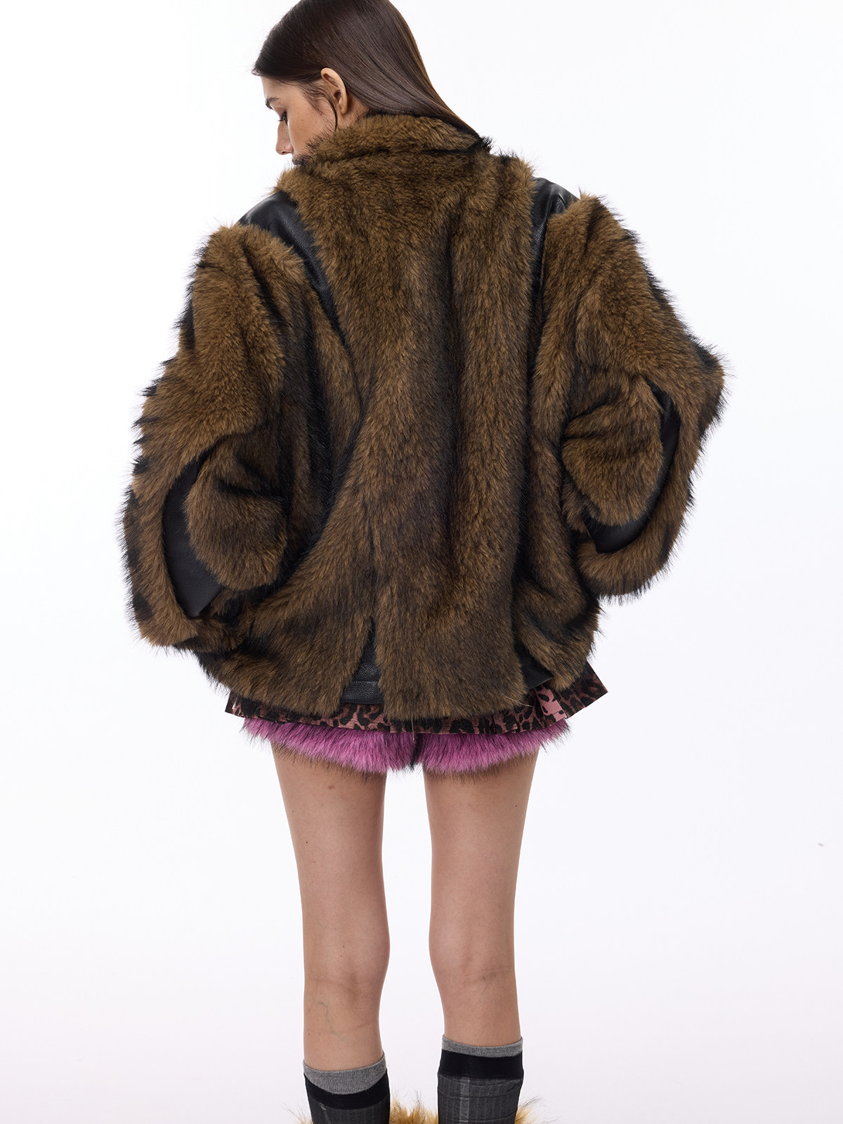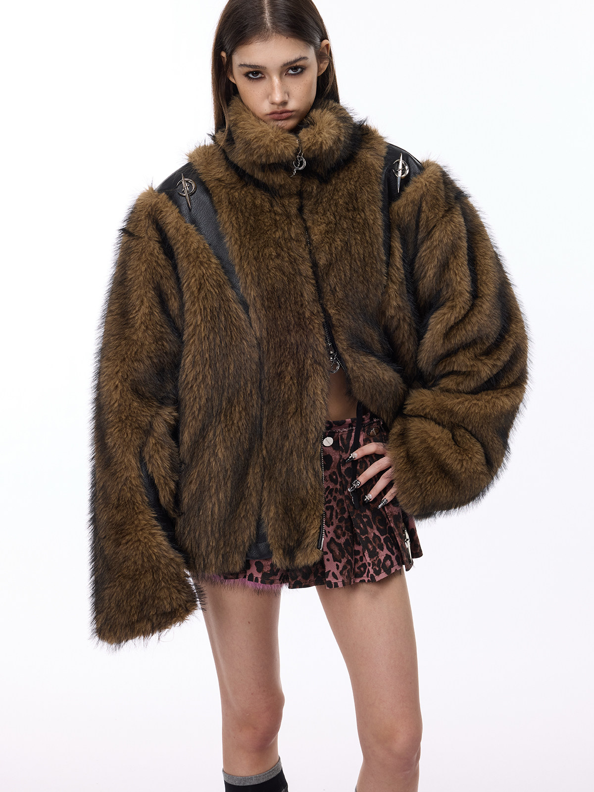 Electric Moon 3D Patchwork Loose Y2K Fur Coat