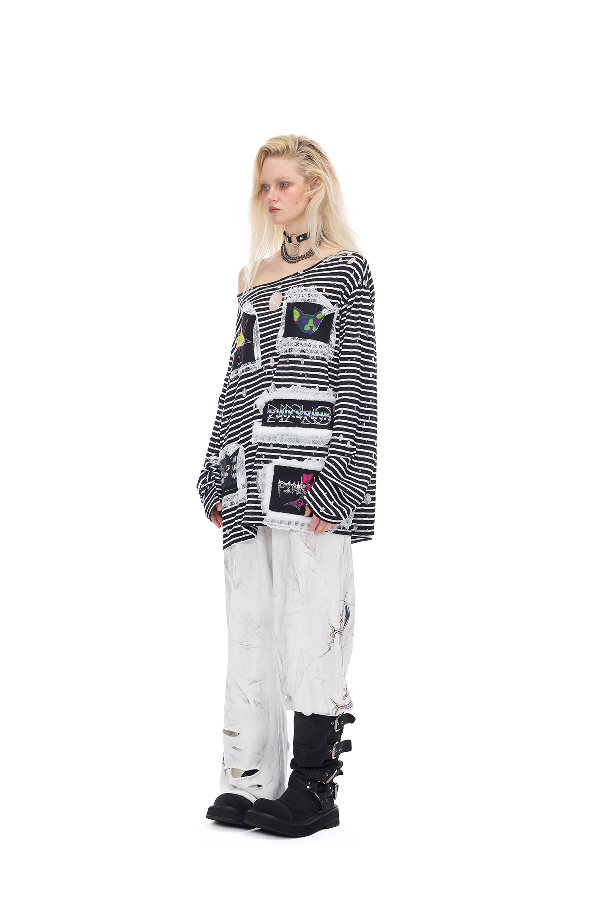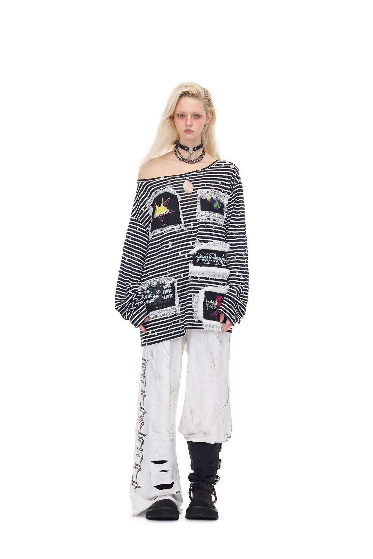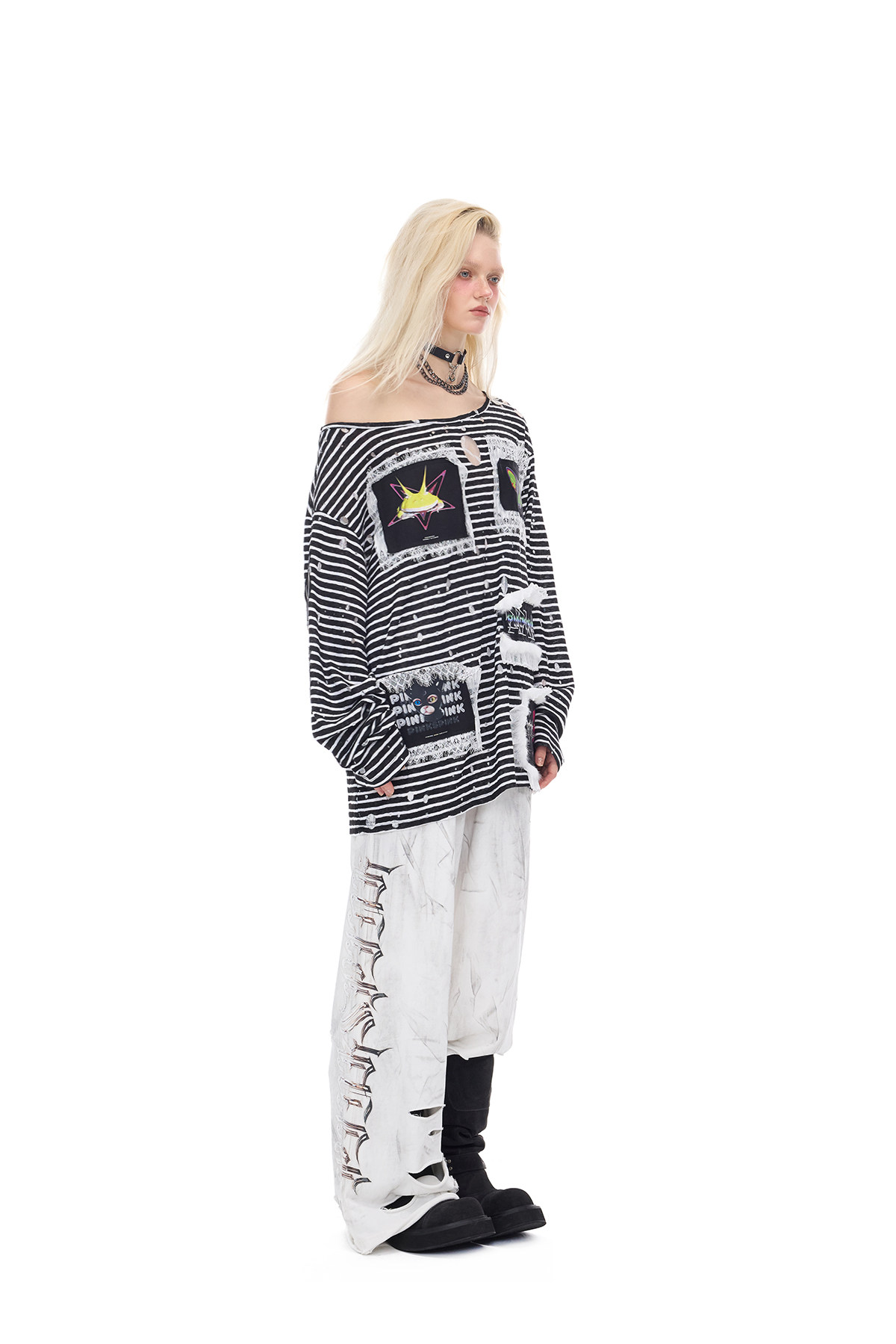 Electric Moon Distressed Coated Flared Sweatpants – Unisex Y2K Rock Fit
