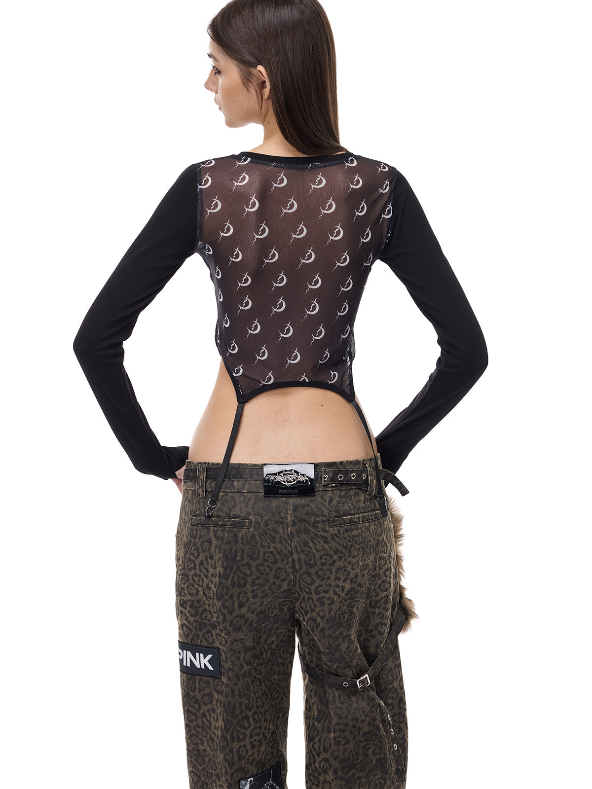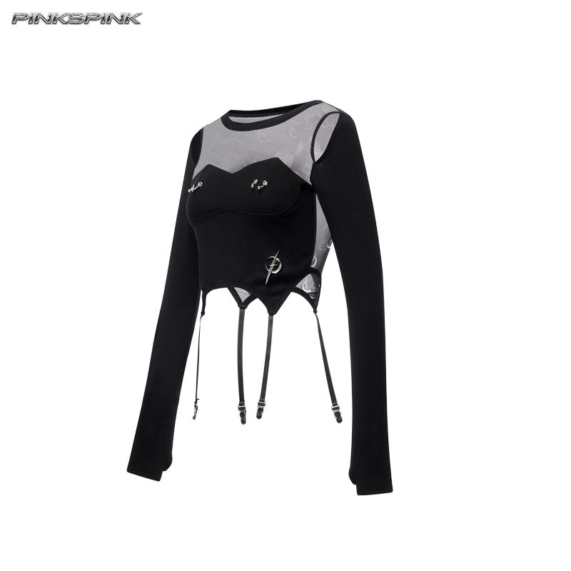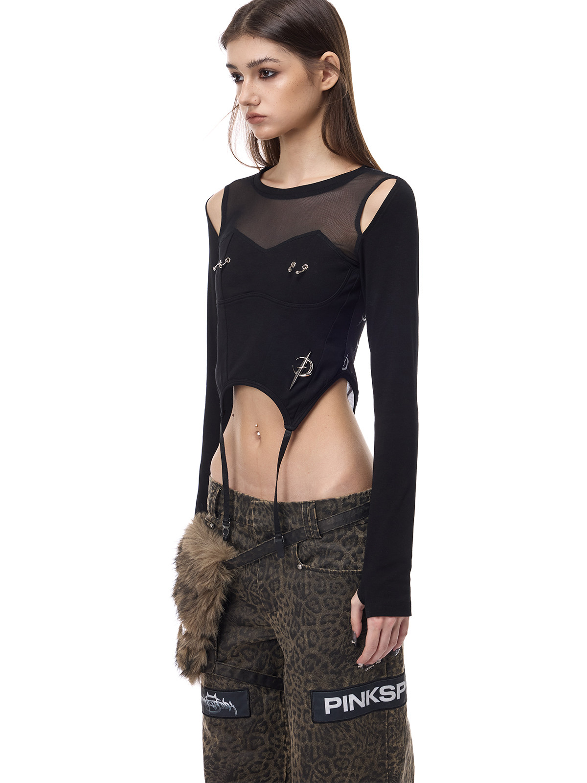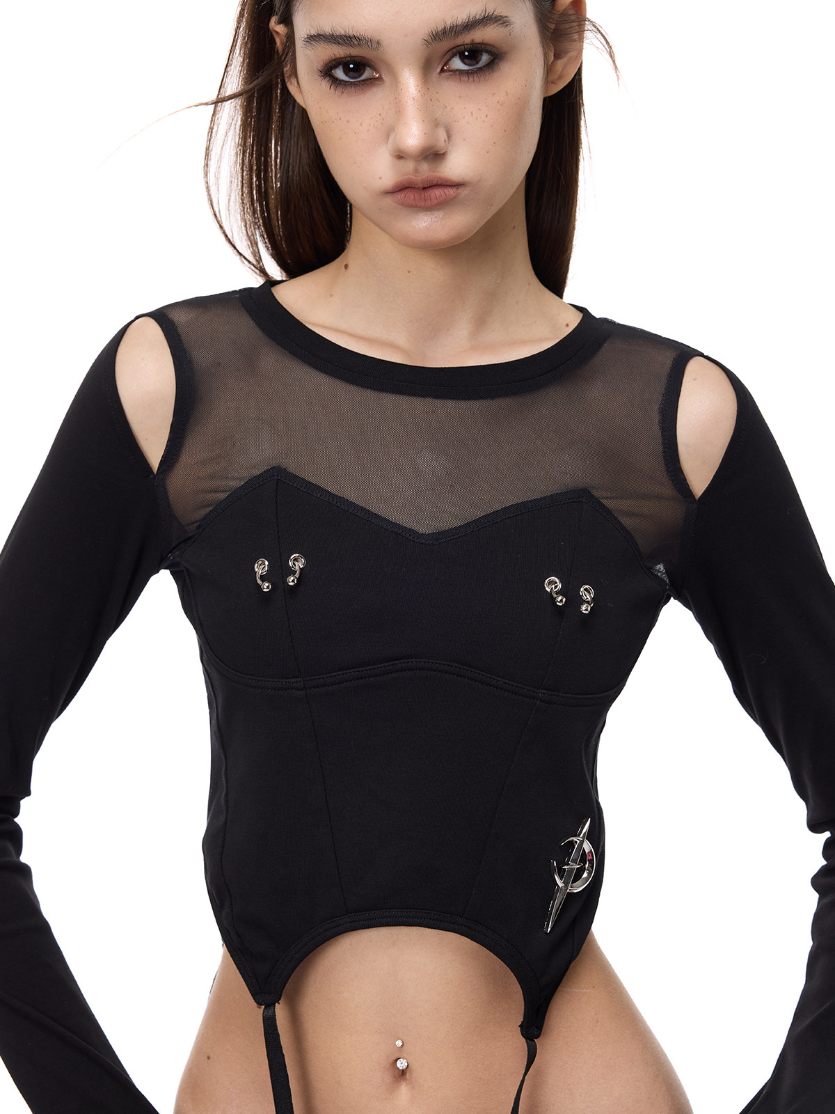 Electric Moon Patchwork Mesh Punk Y2K Base Layer Tee