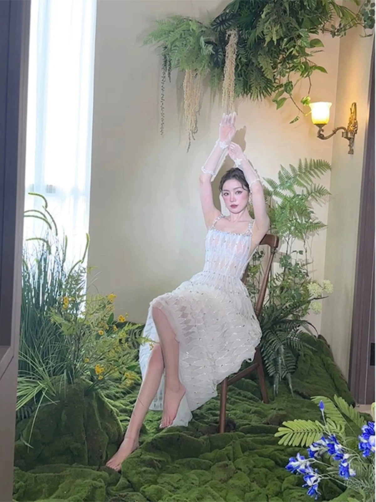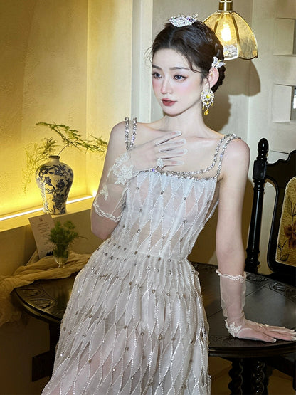 Elegant Bridal Toasting Dress – Luxe Heavy-Embellished Engagement Gown