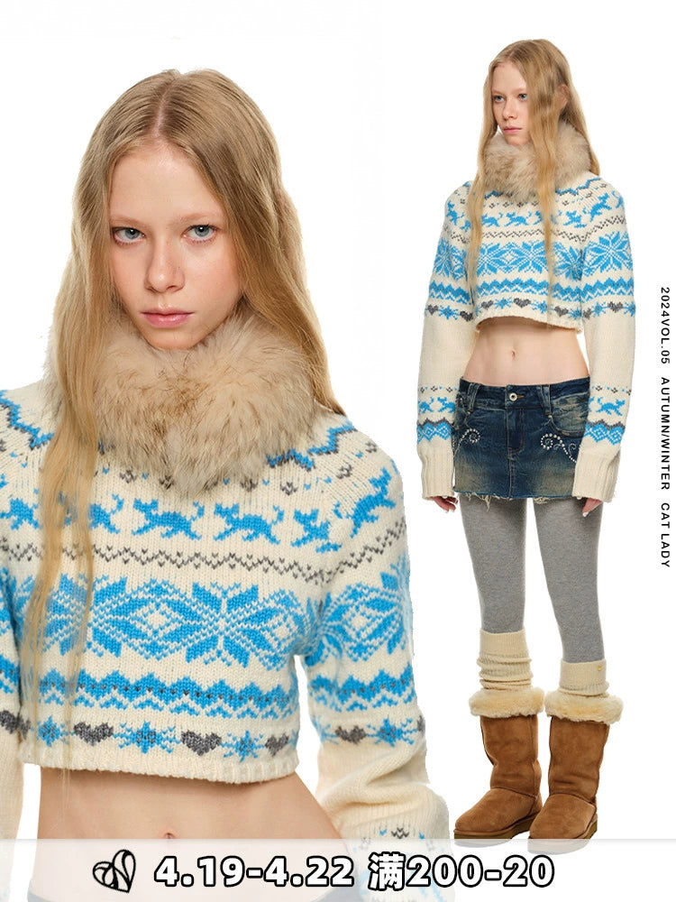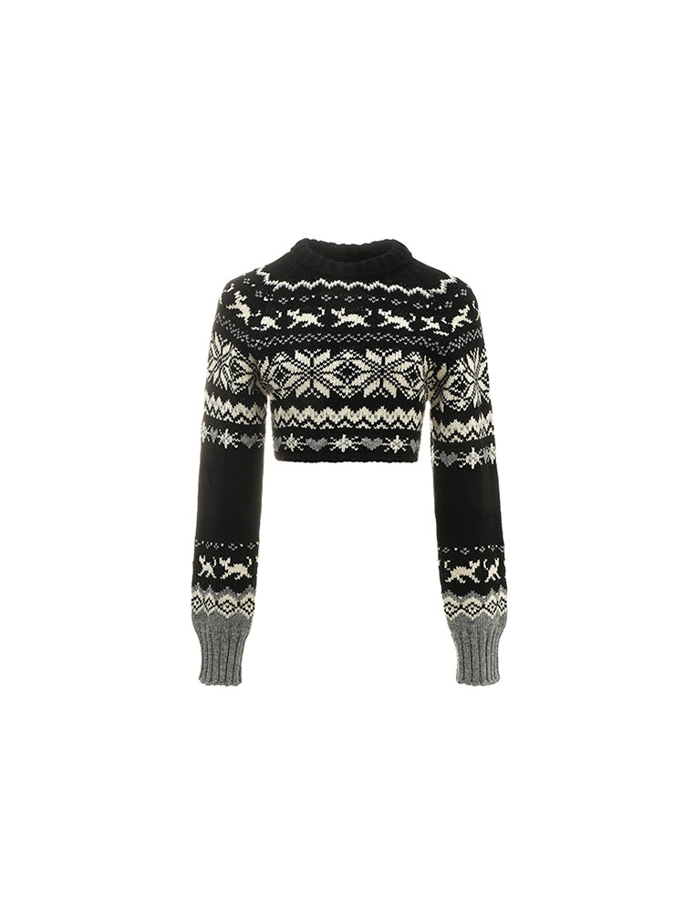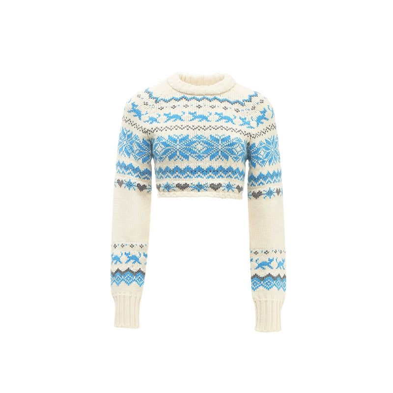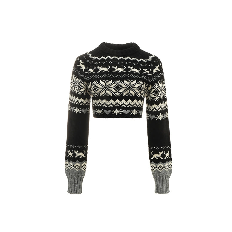 FAIR ISLAND VINTAGE JACQUARD COARSE CREWNECK SWEATER WOMEN'S WAISTLESS DESIGN TOP