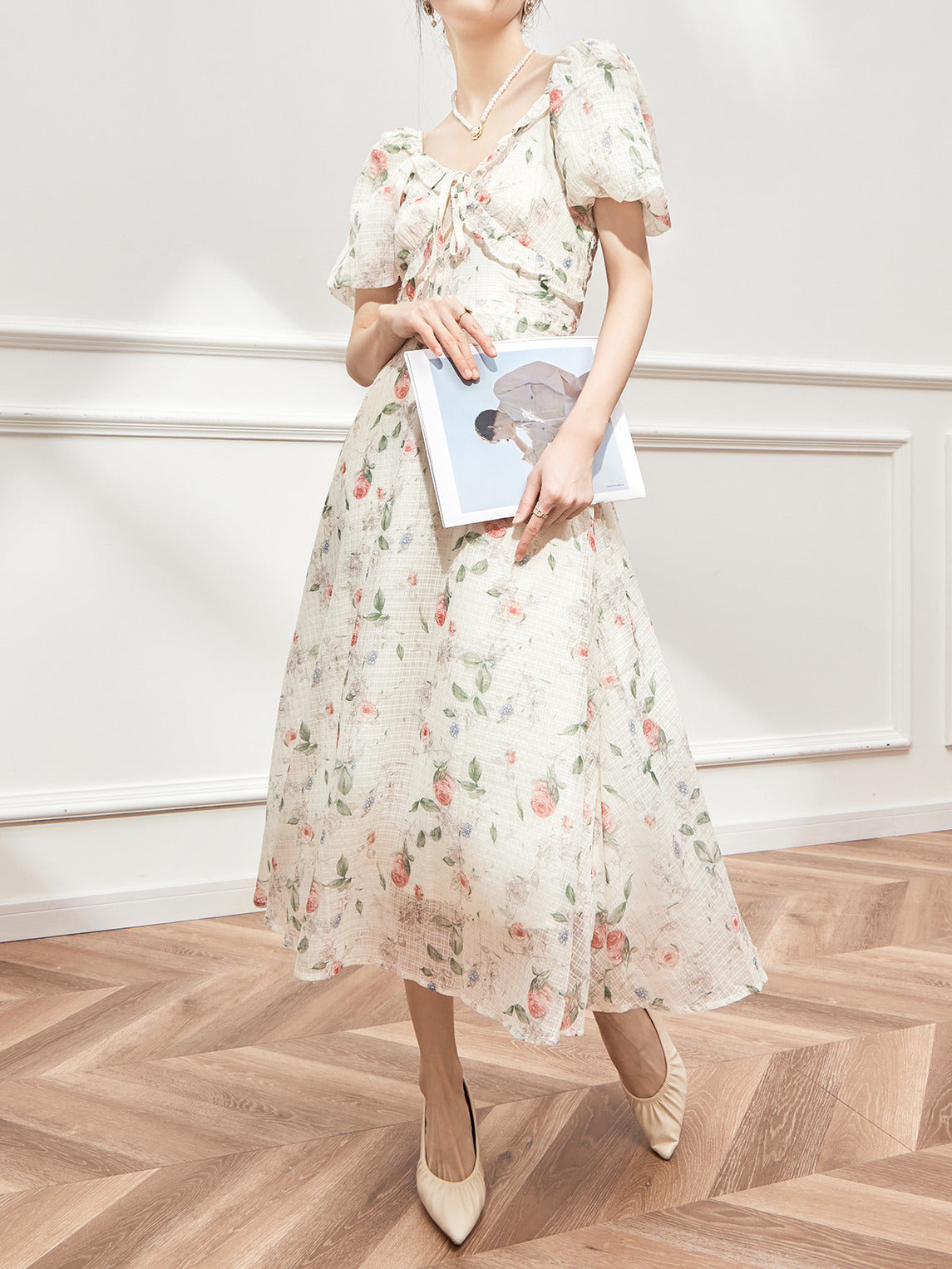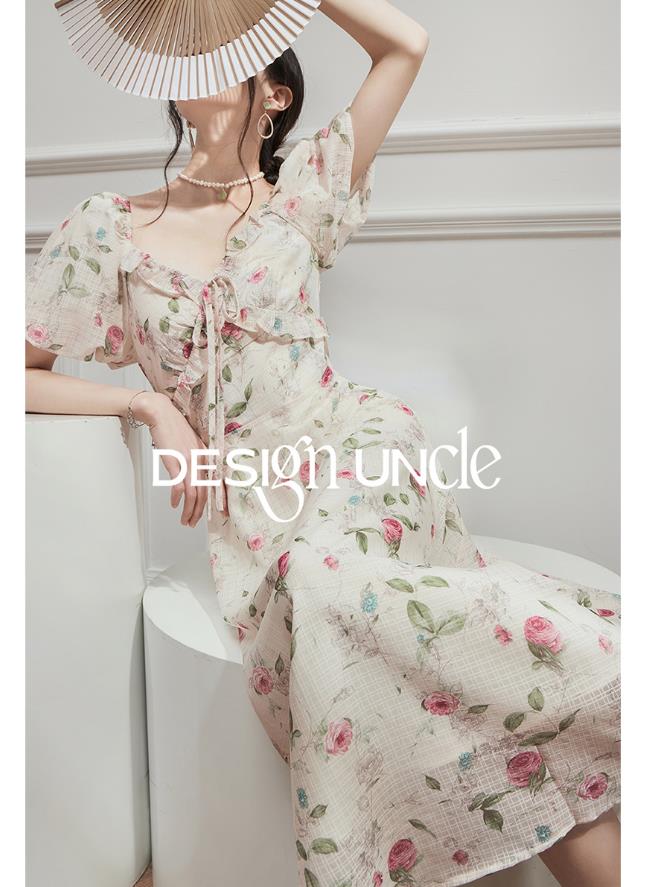 Wrapped Waist French Floral Dress 2024