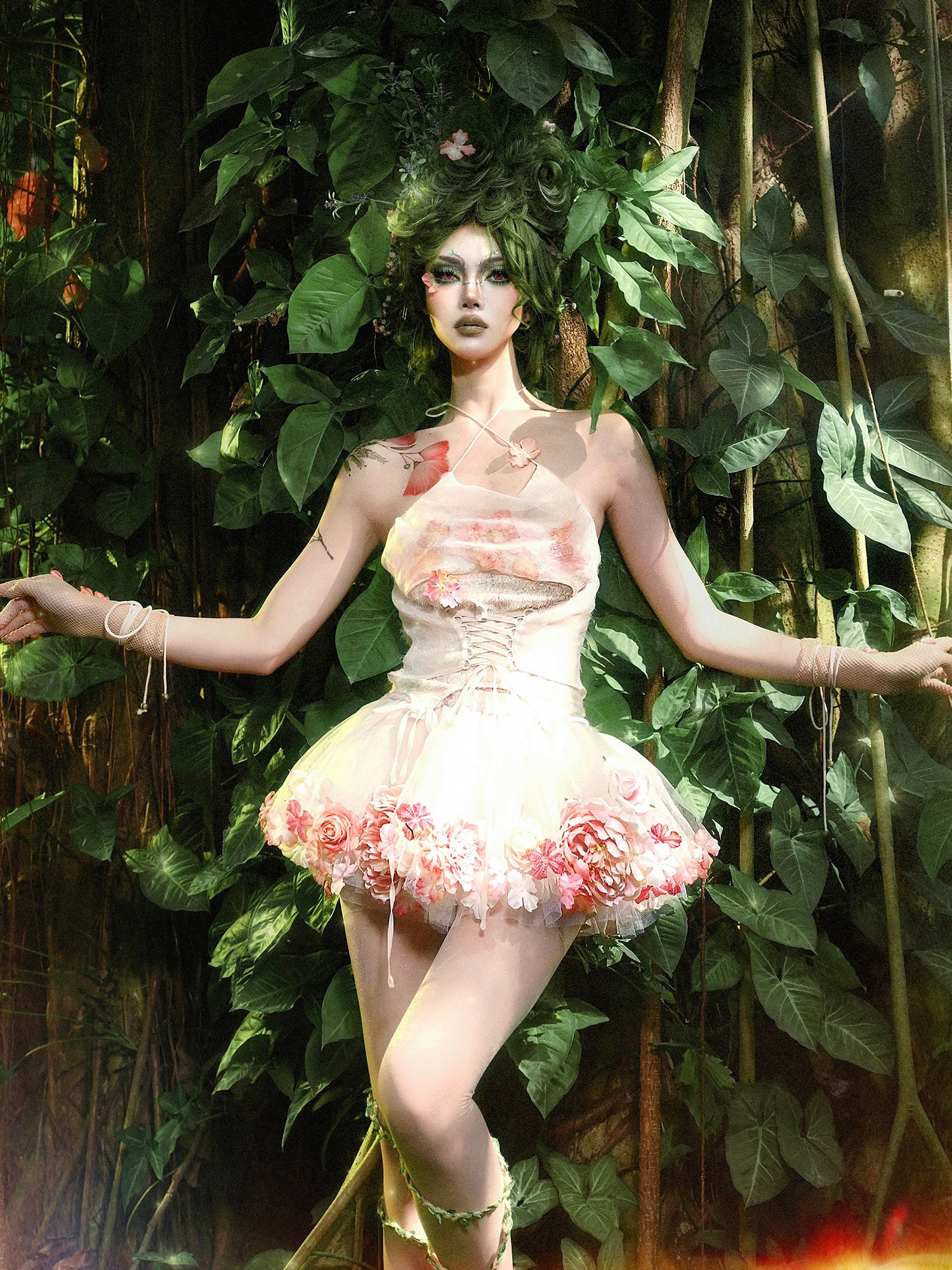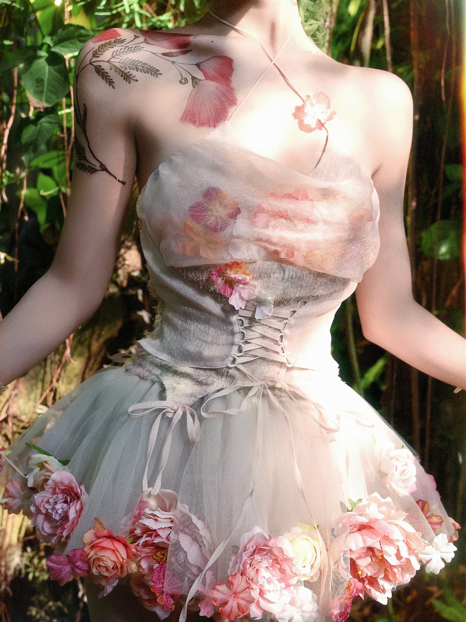 Chiffon Fairy Blouse – Floral Suspender Top in Elfcore Style