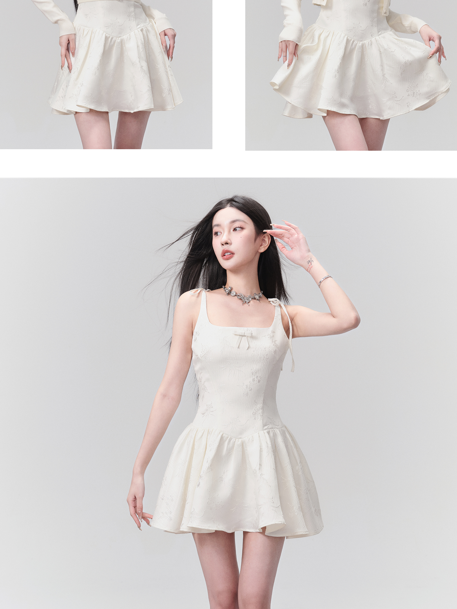 Spring Escape Bow Knot Jacquard Princess Skirt