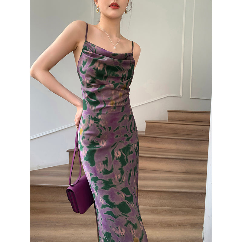 French Ombre Satin Maxi Skirt