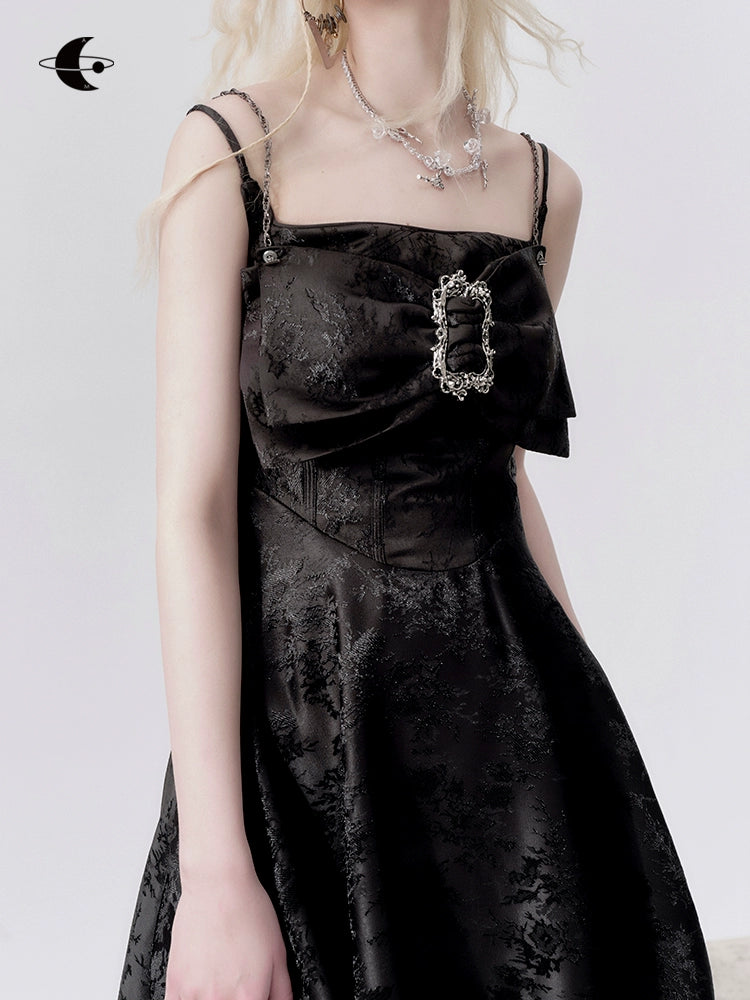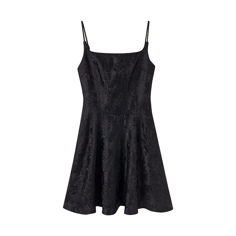 Slim Shadow Pleated Black Dress