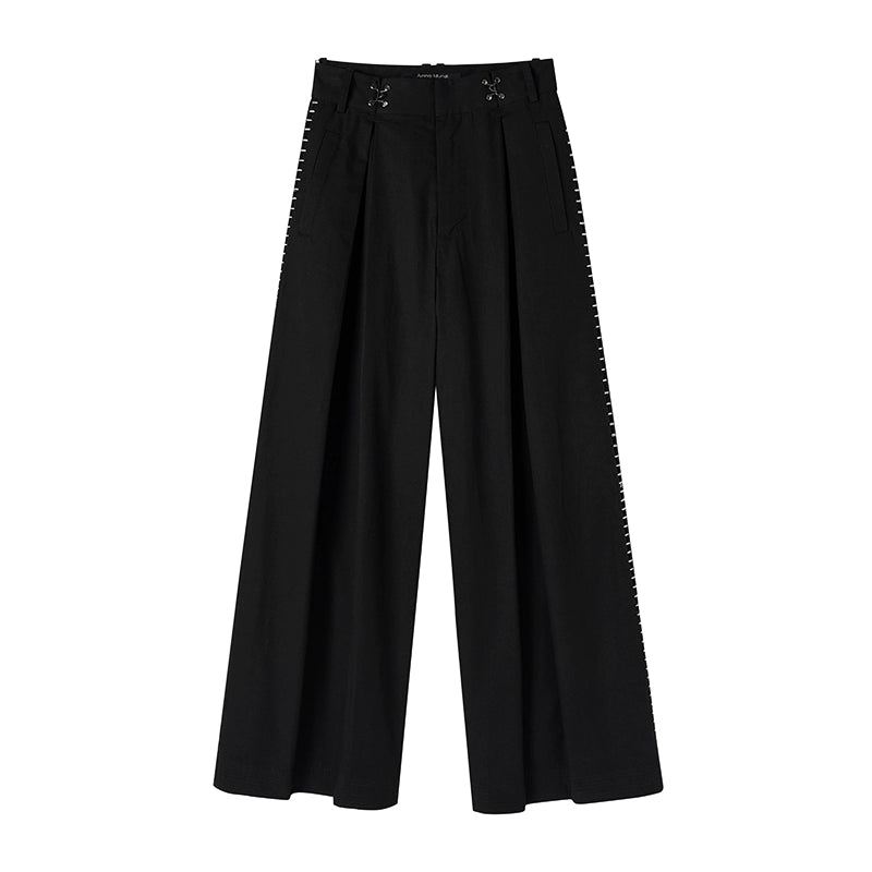 Embroidered Pleated Wide Leg Pants