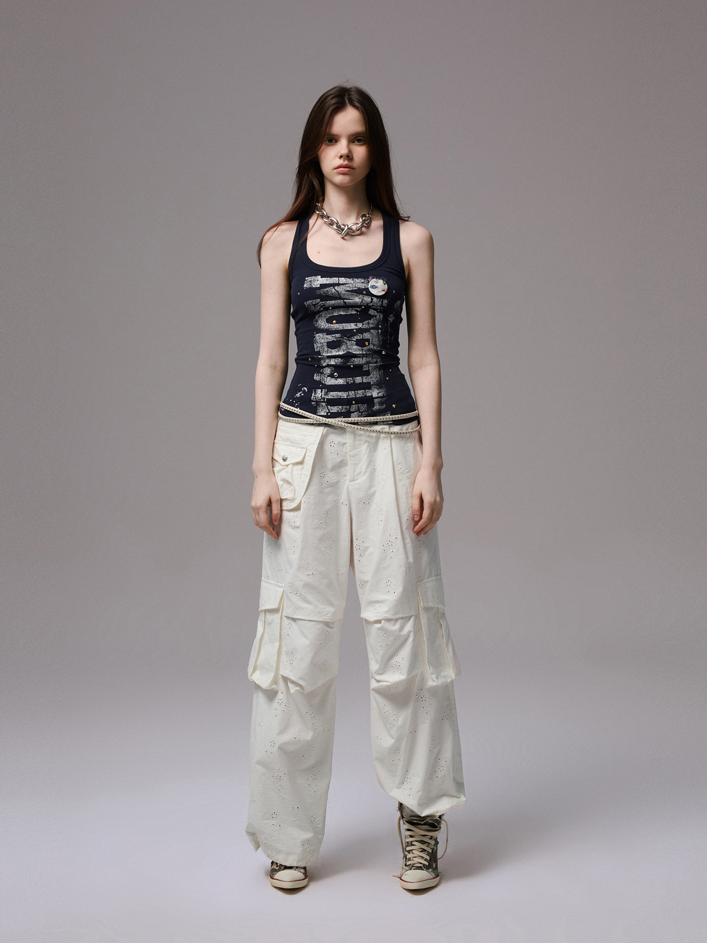Gold & Silver Rivet Letter Vest – Cool Slim Sleeveless Crop Top
