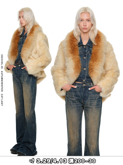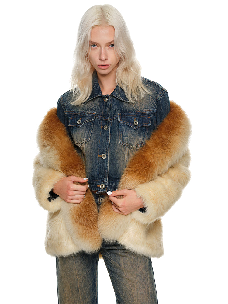 Gradient Fox Fur Jacket – Luxe Winter Waist-Slimming Outerwear