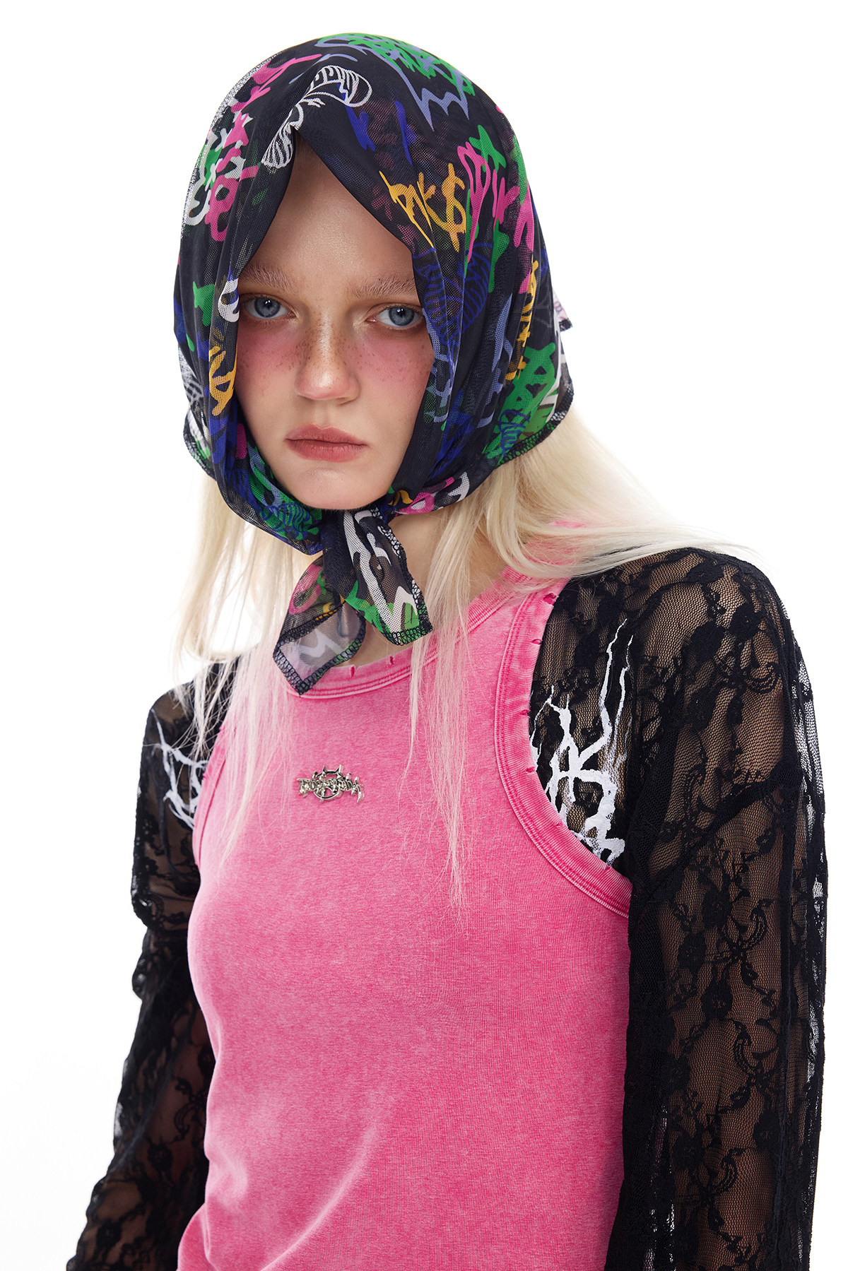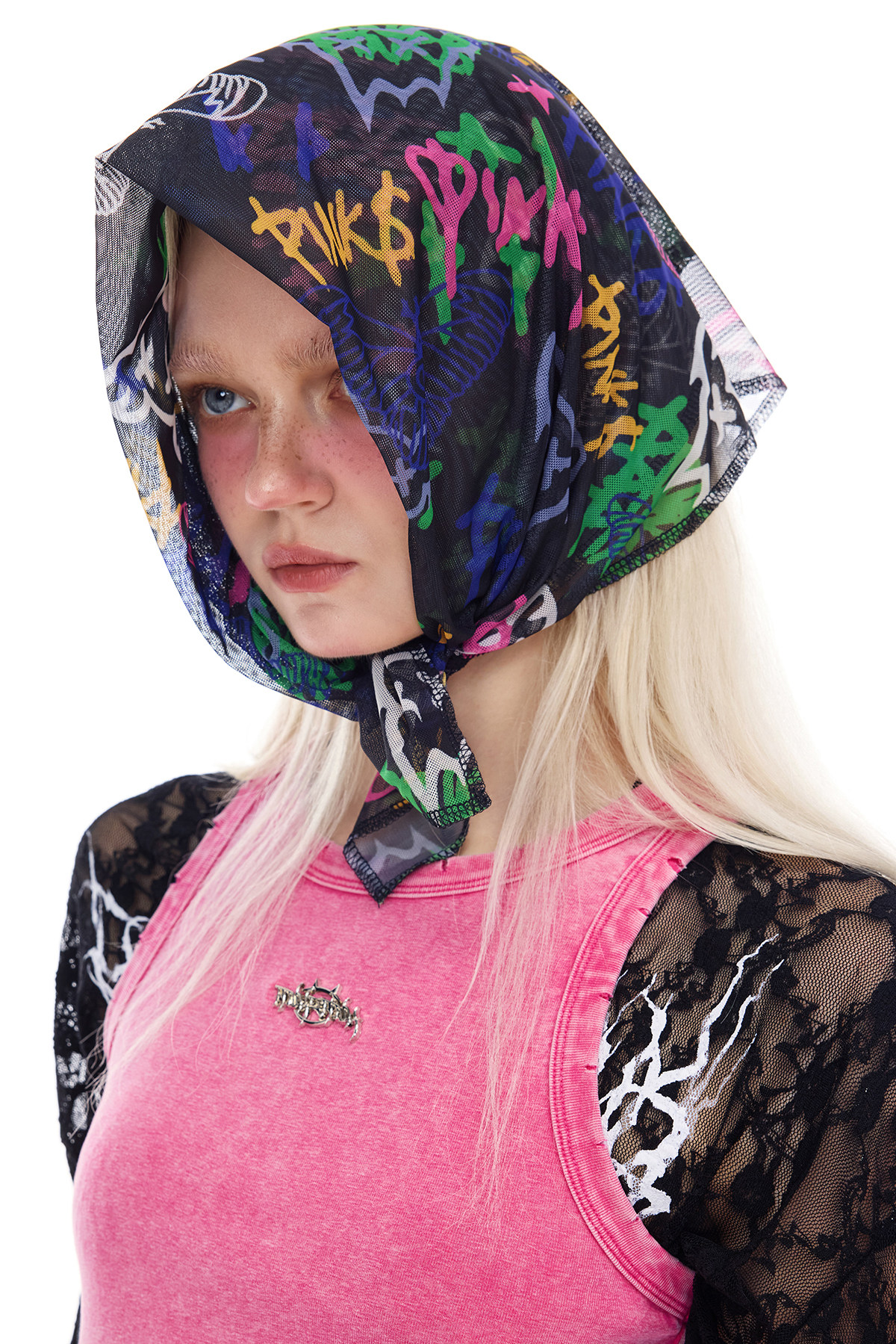 Graffiti Butterfly Cat Digital Mesh Scarf – Genderless Y2K Punk Square Scarf