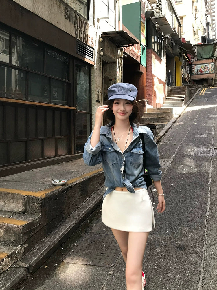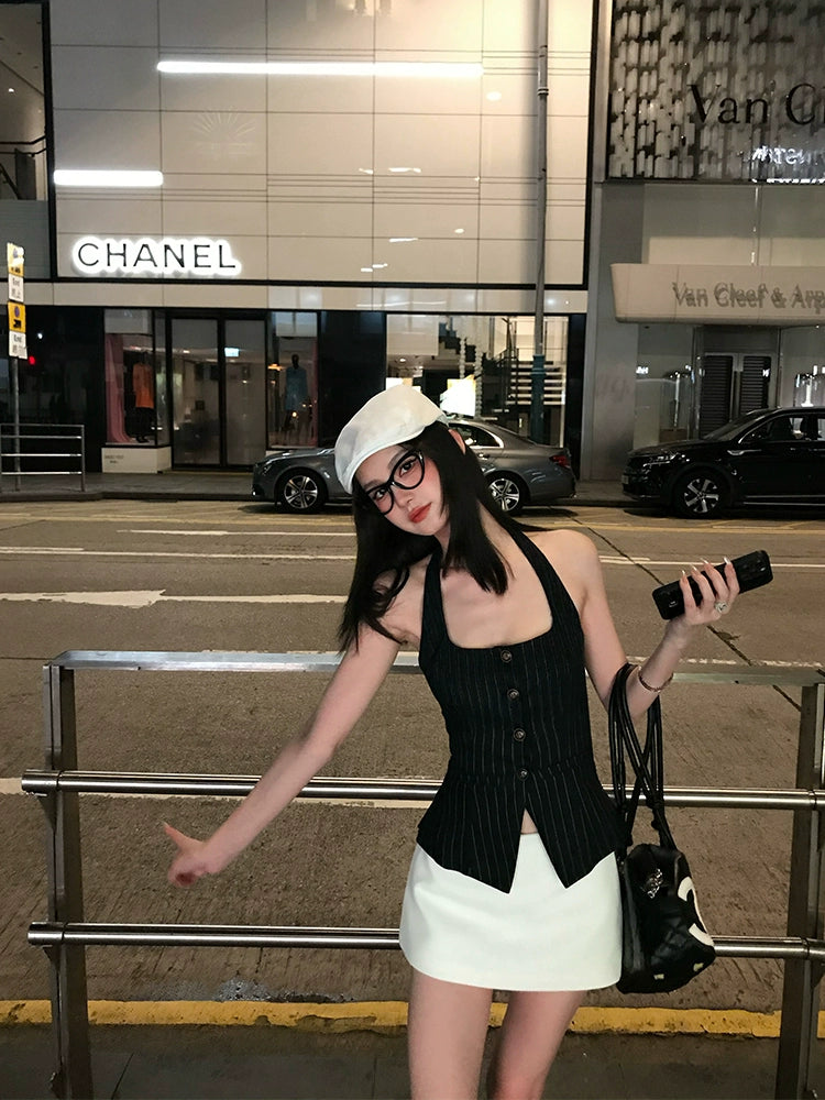 Half-Body White Mini Culottes Skirt