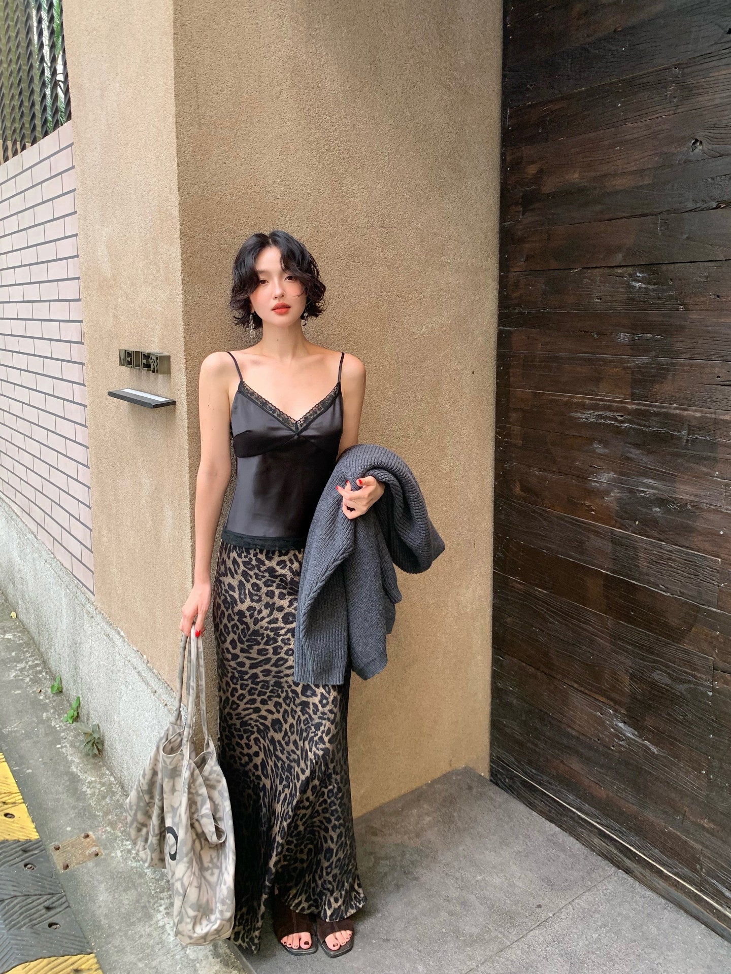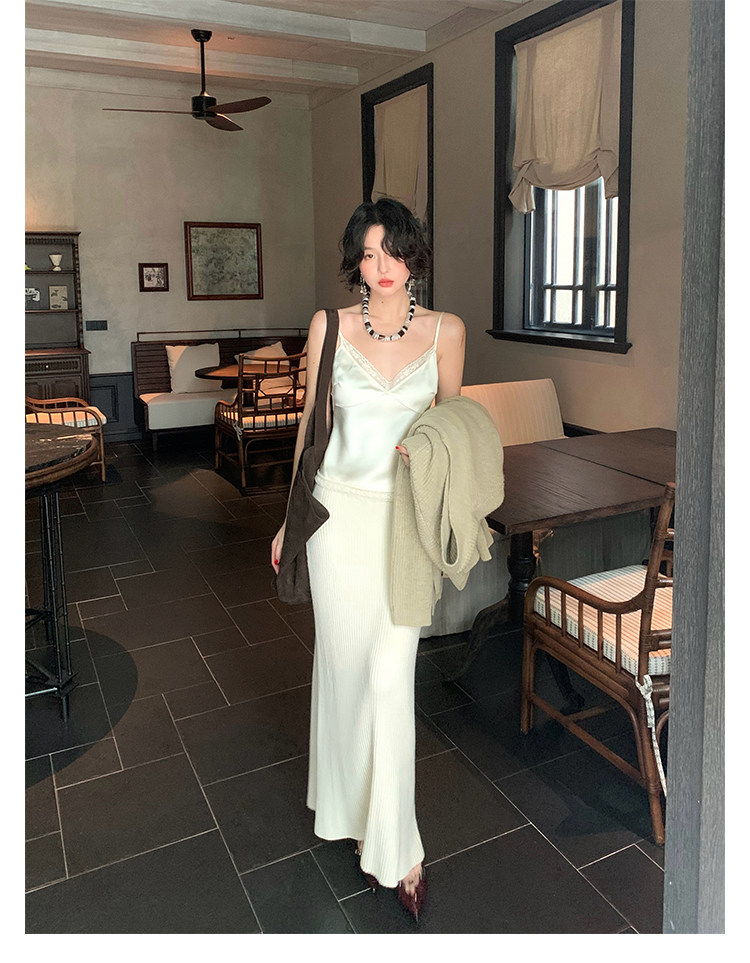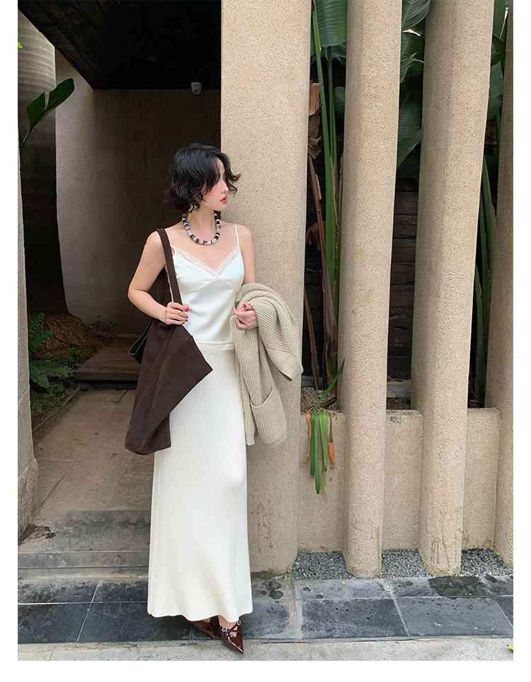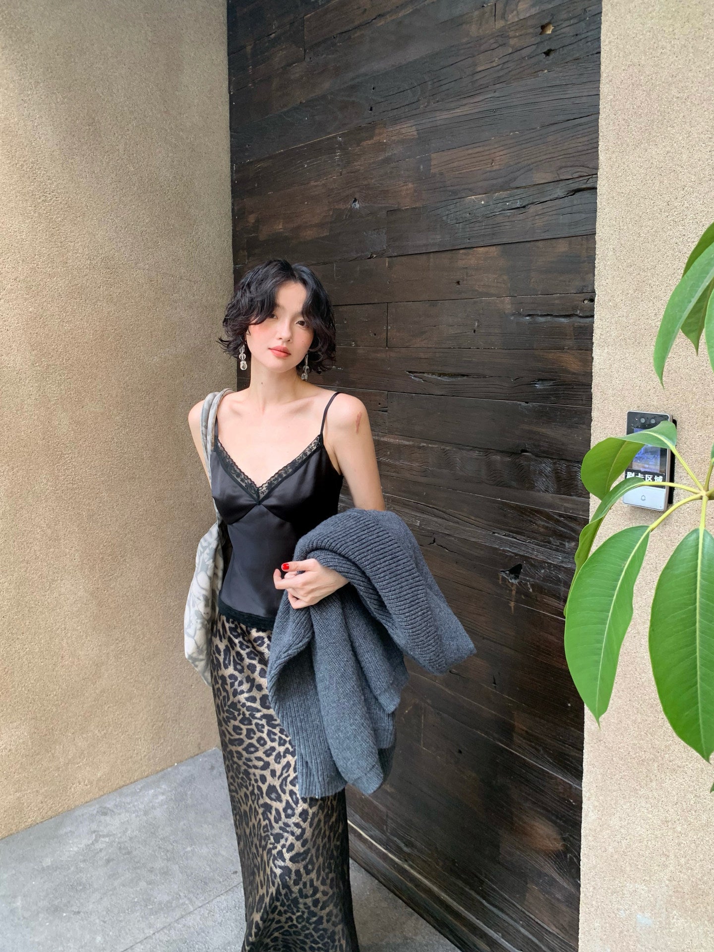 Elegant Lace Satin Camisole Top with Delicate Straps – Hong Kong Retro Autumn Style