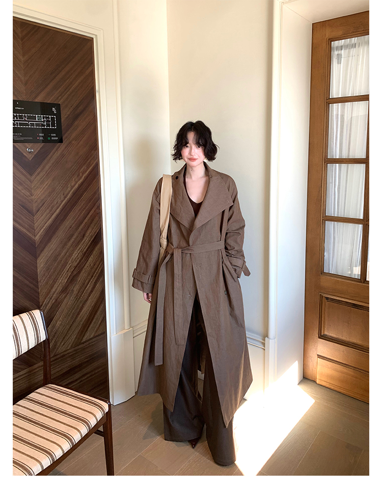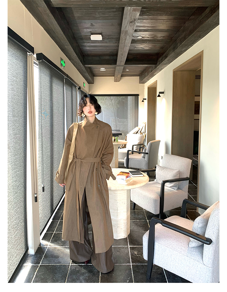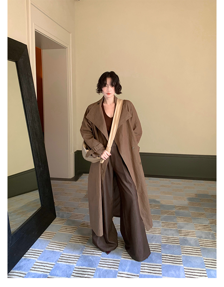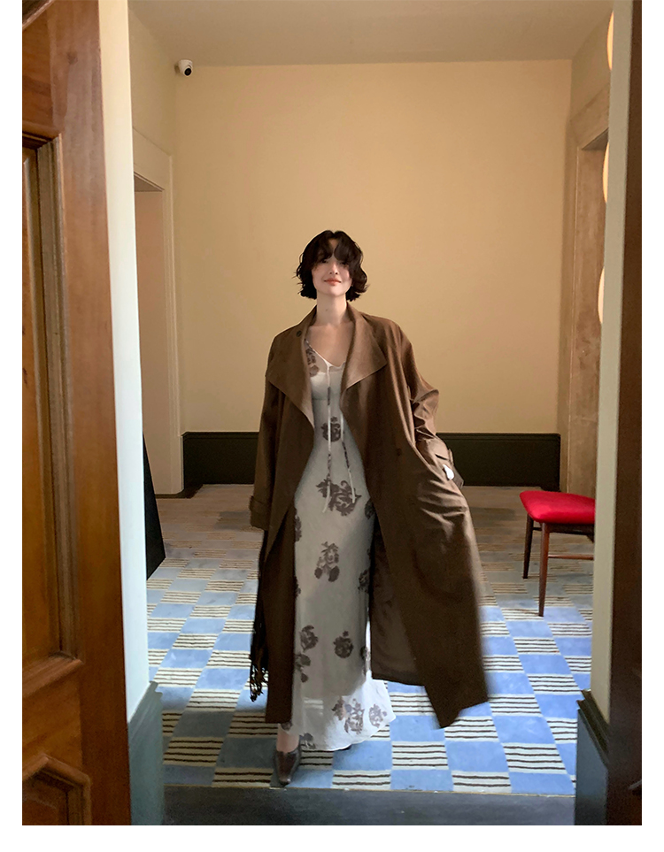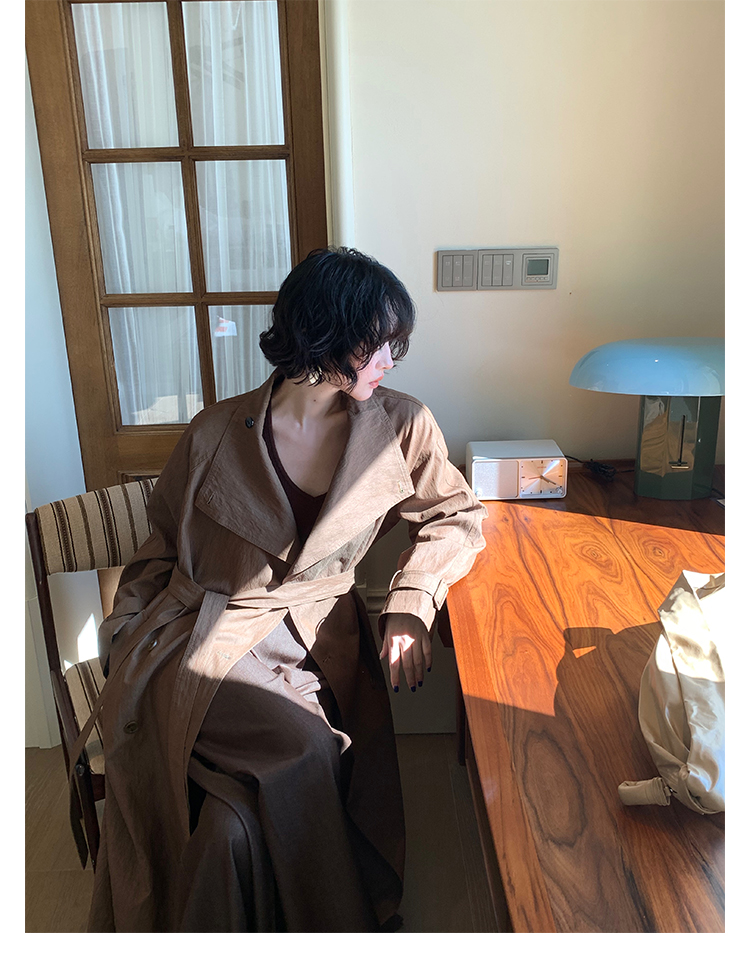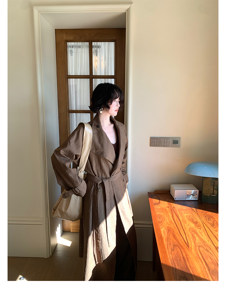 Brown Cinched-Waist Belted Trench Coat – High-End Retro Autumn Style