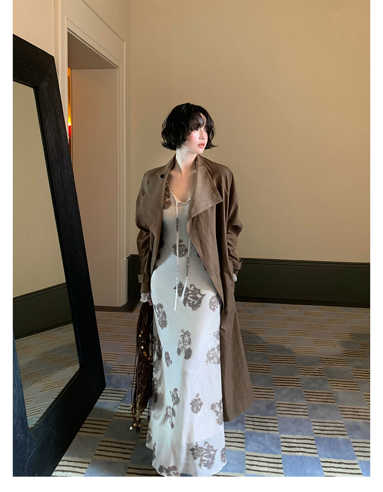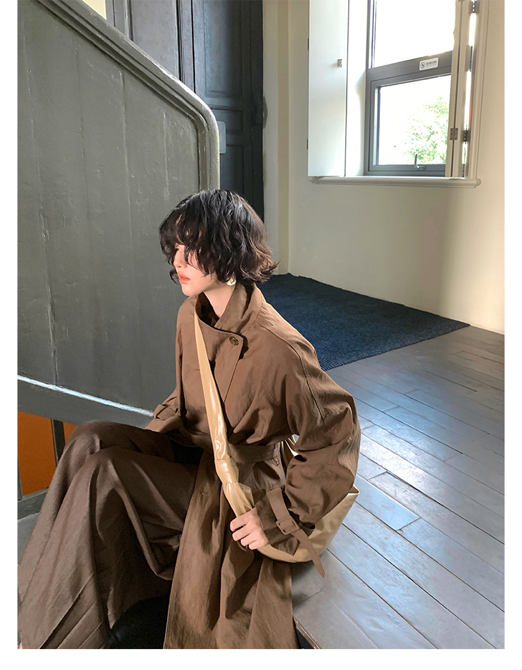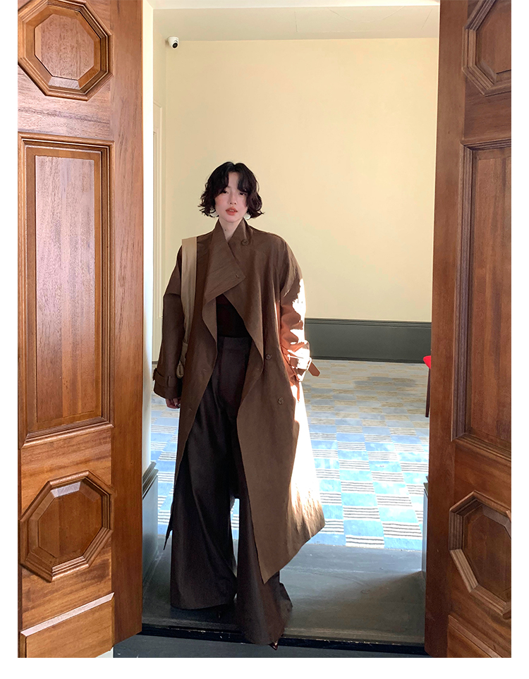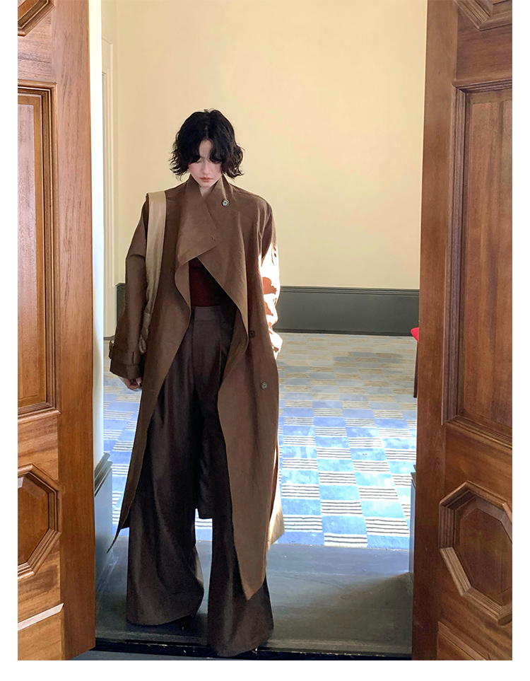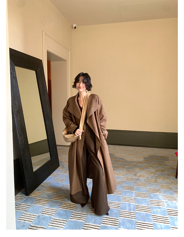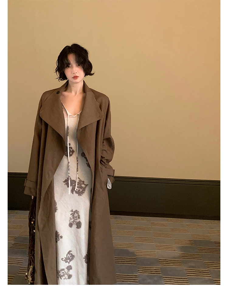 Brown Cinched-Waist Belted Trench Coat – High-End Retro Autumn Style