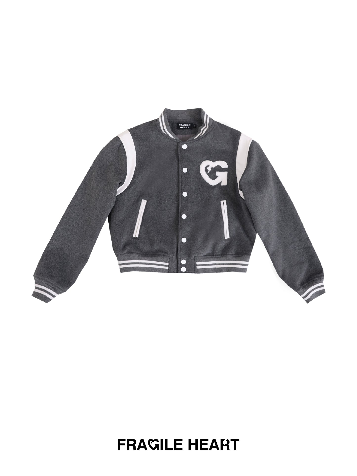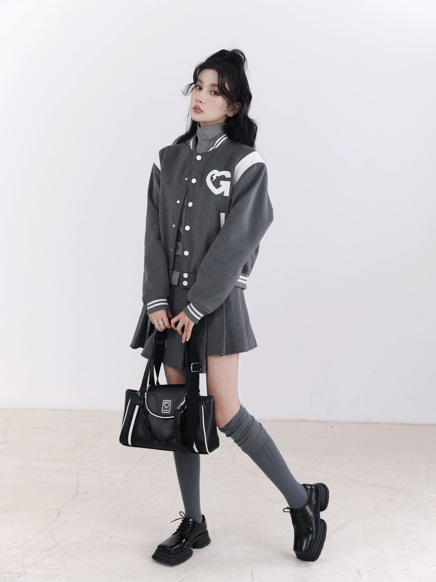 50 Wool Contrasting Gray Baseball Woolen Jacket