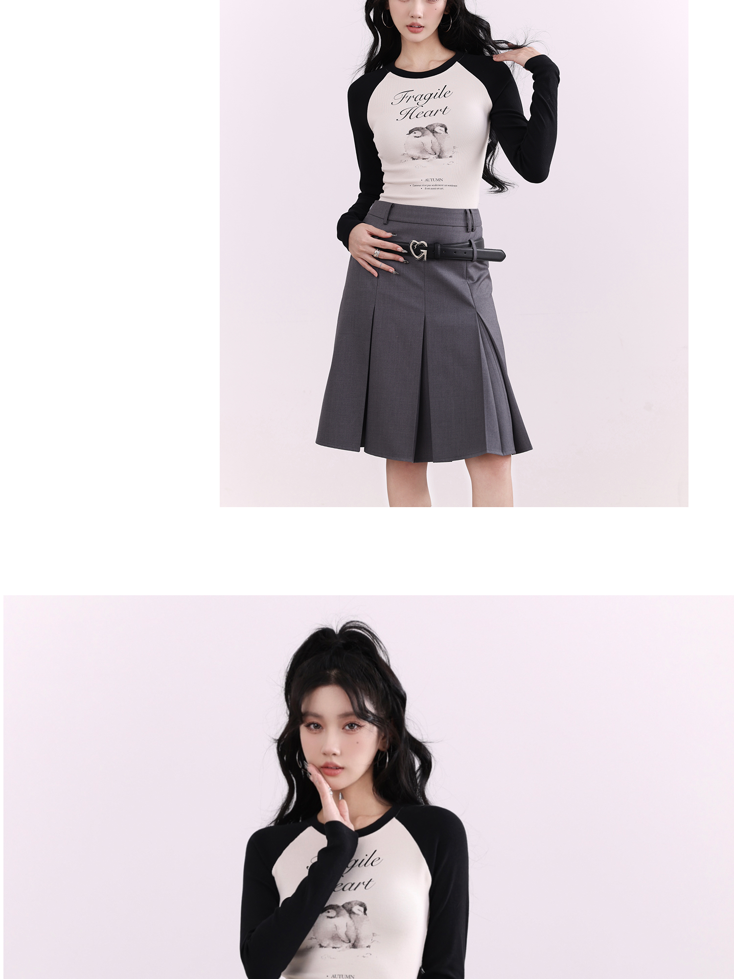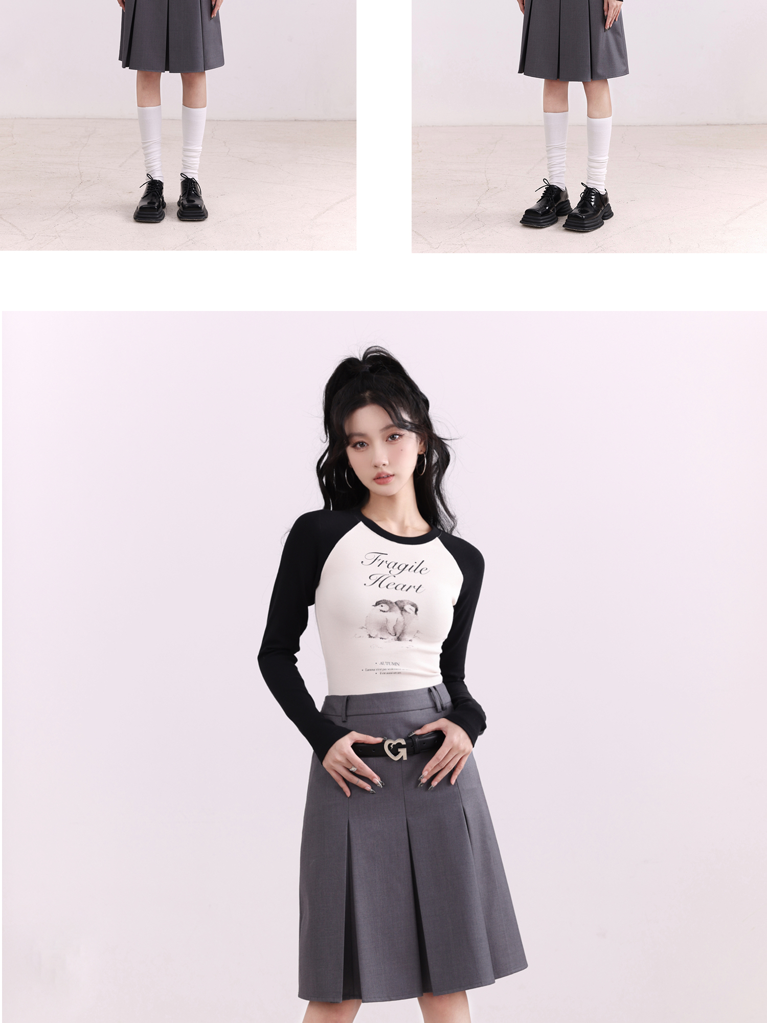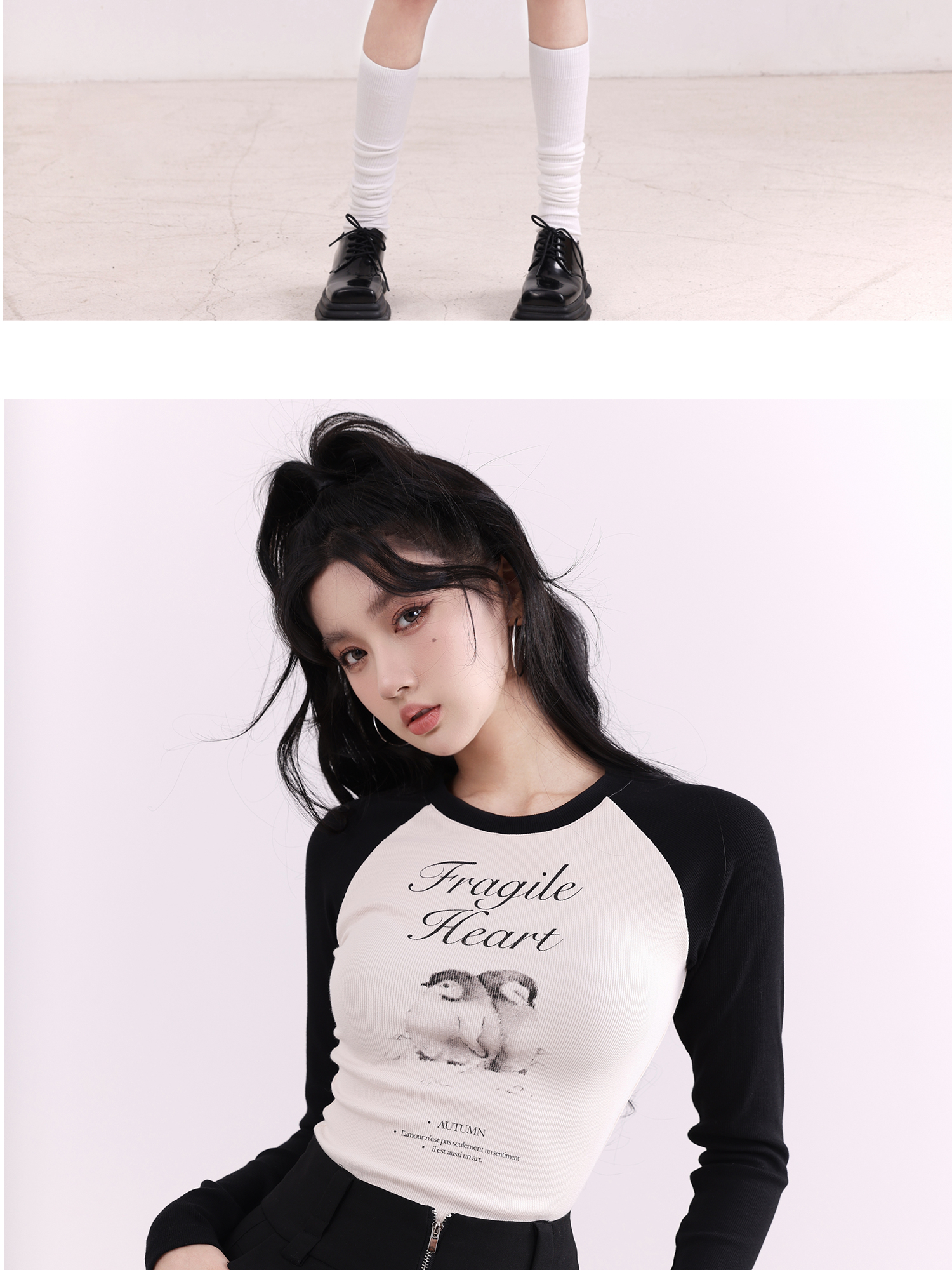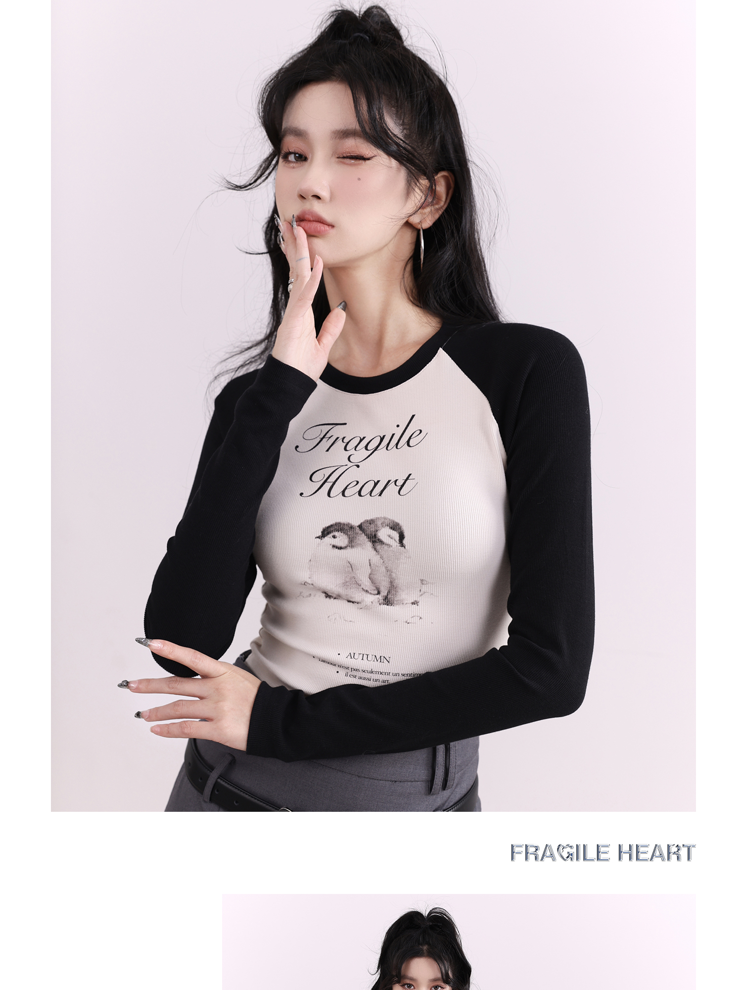 Penguin Print Raglan Sleeves Color Blocking T-shirt