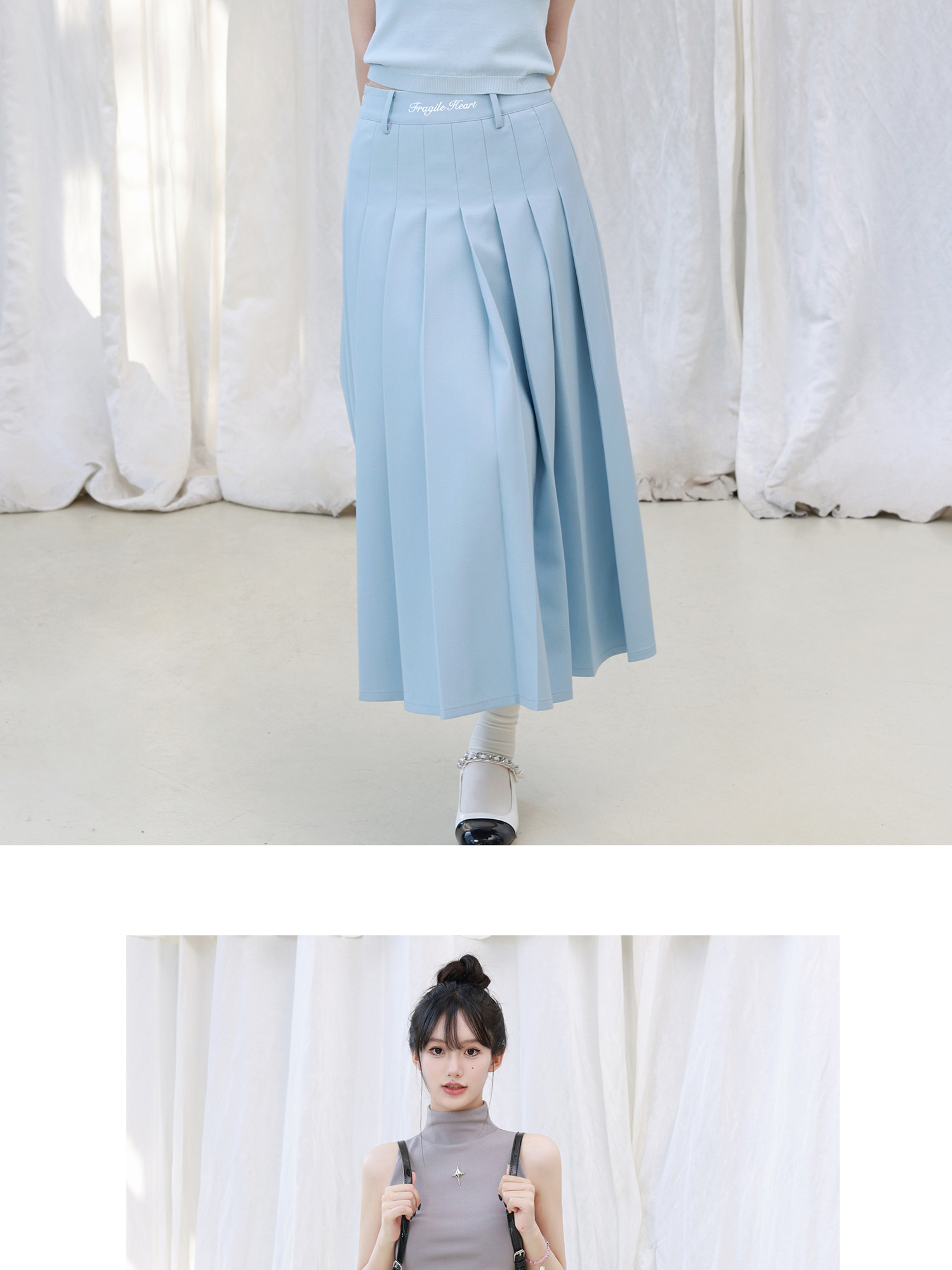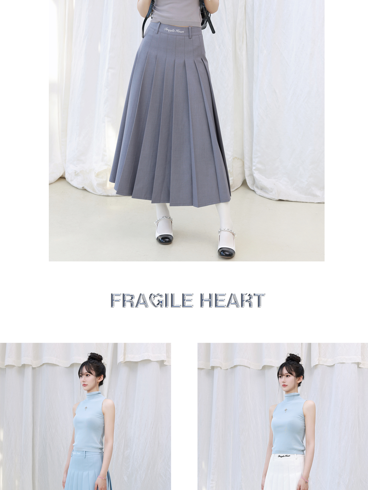 Original Embroidery 4-Color Pleated A-Line Skirt