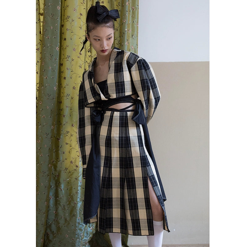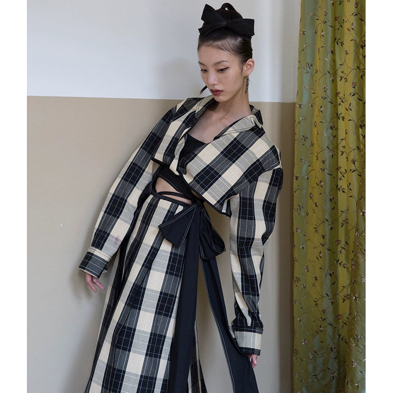 Autumn Lace-Up Colored Weaving Plaid Short Coat T3