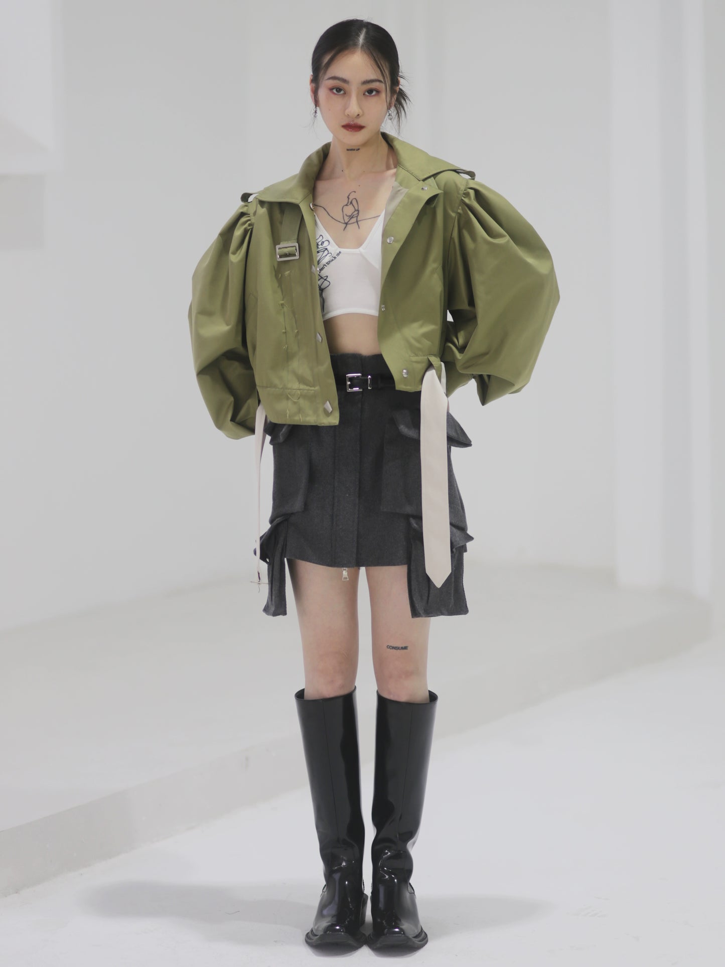 Cardamom Seed Green Loose Windbreaker Jacket