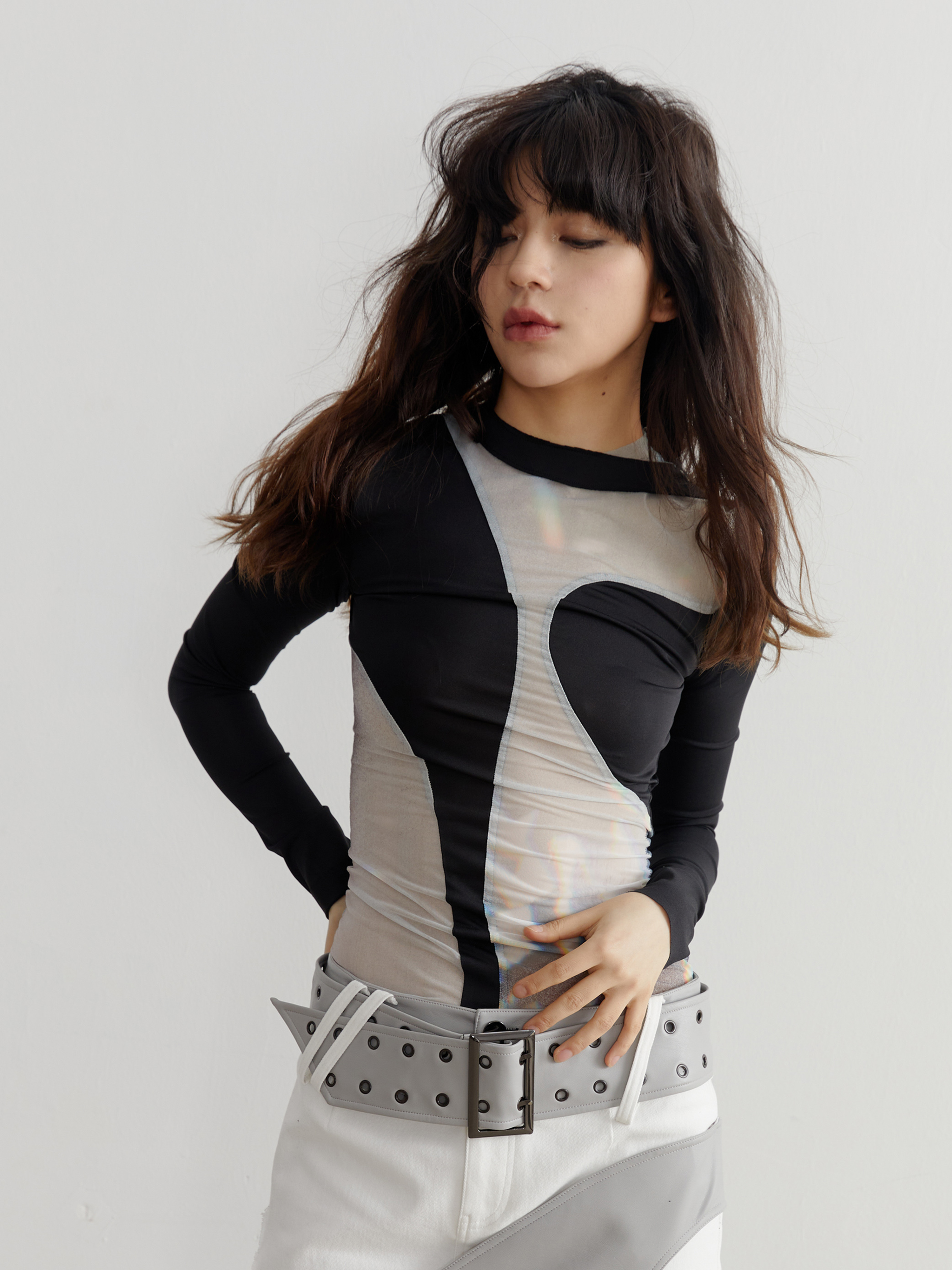 Light and Shadow Printed Sexy Mesh Shirt