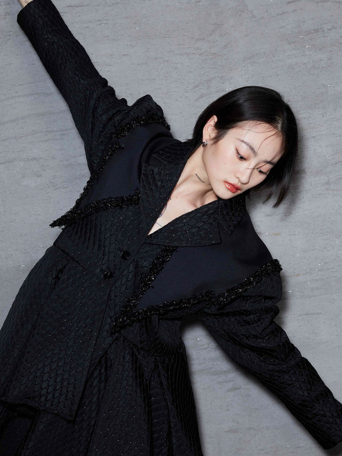 Double Layered Air Cotton Jacquard Skirt Style Jacket