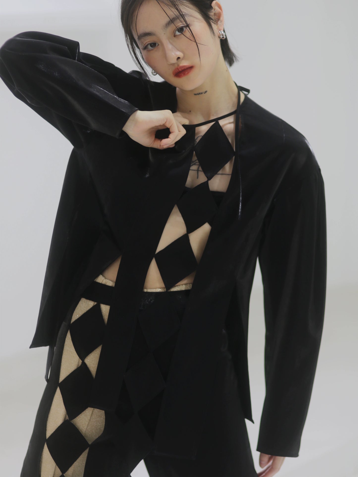 Hollowed Out Geometric Checkered Skirt