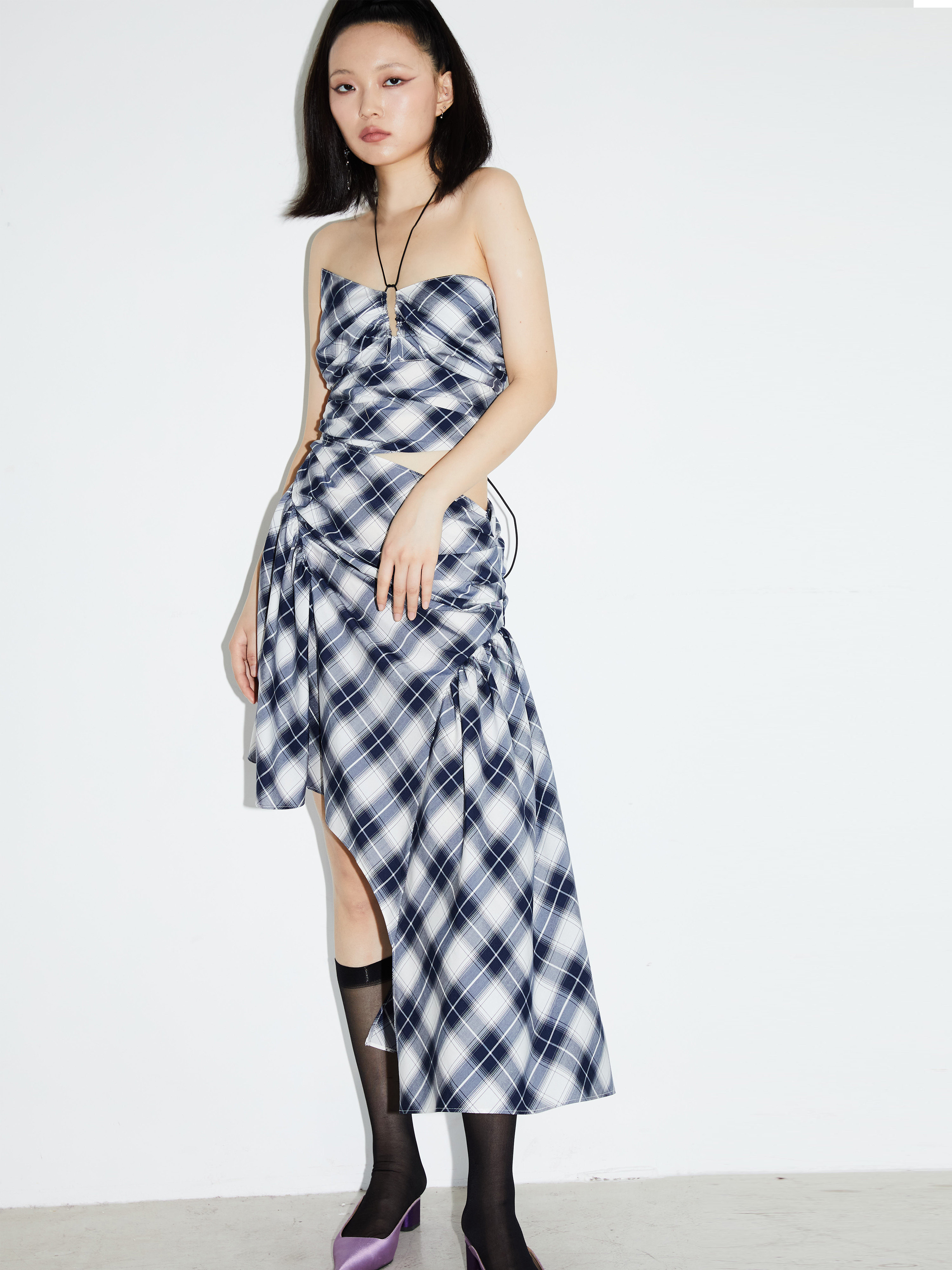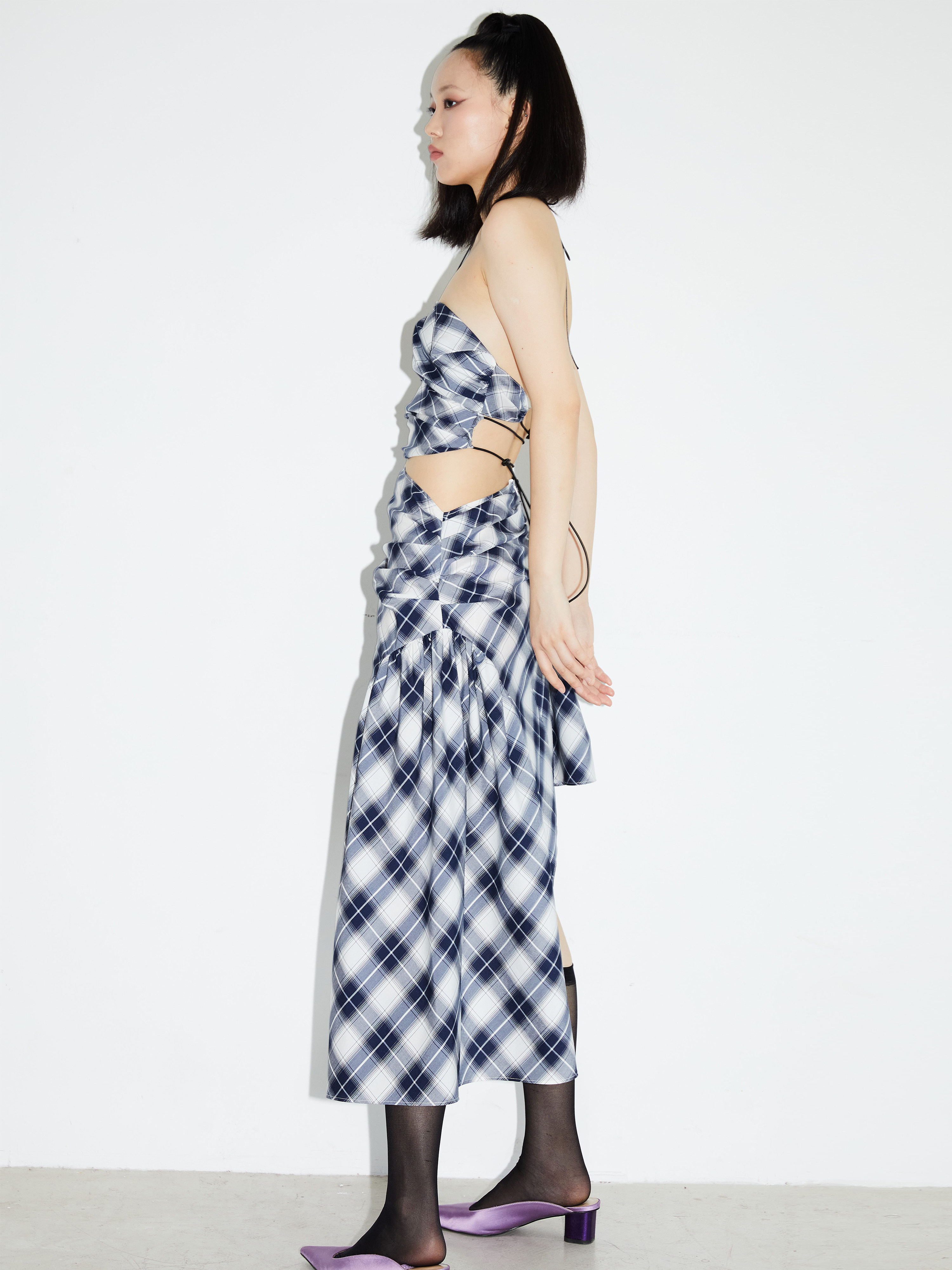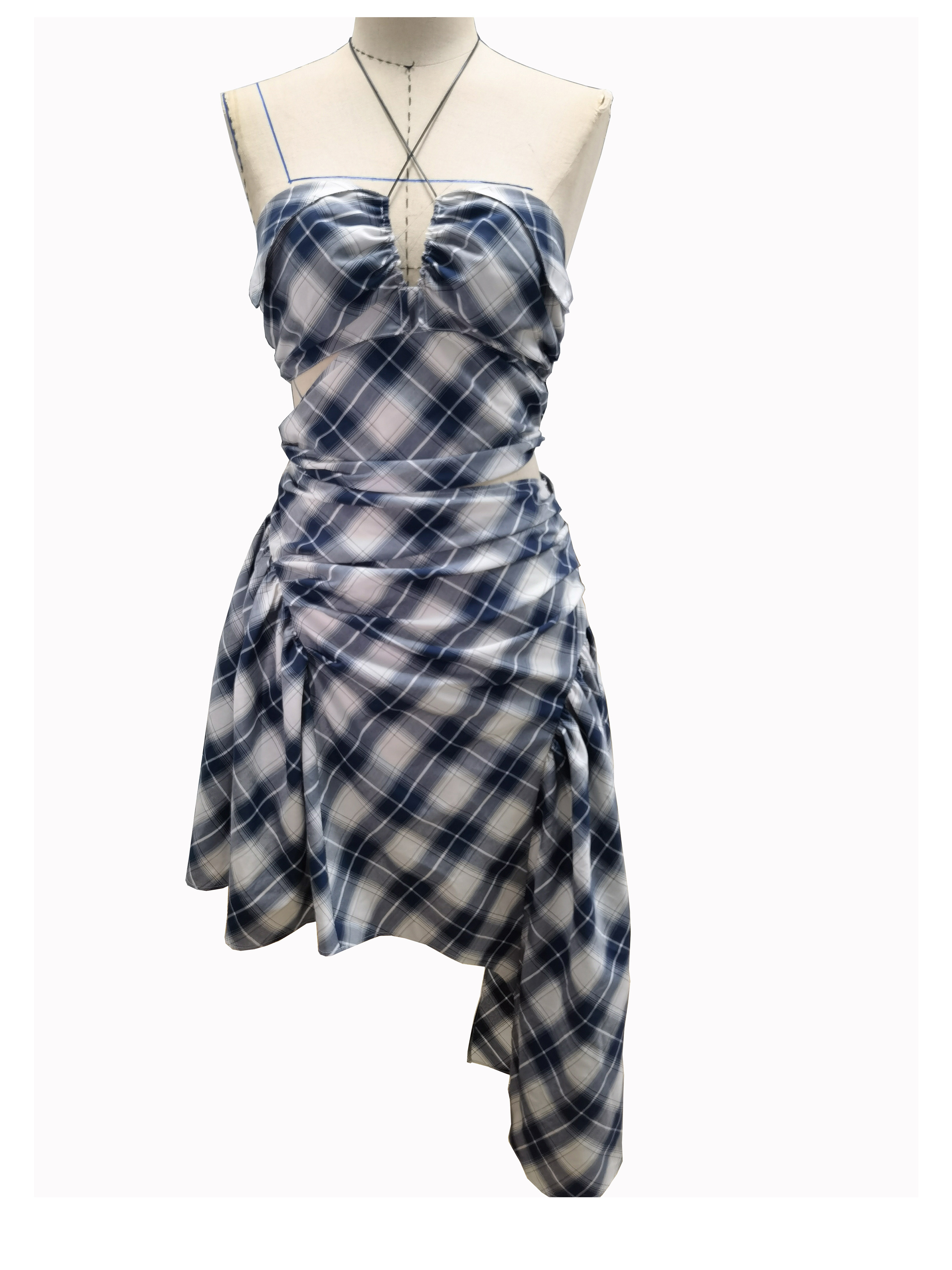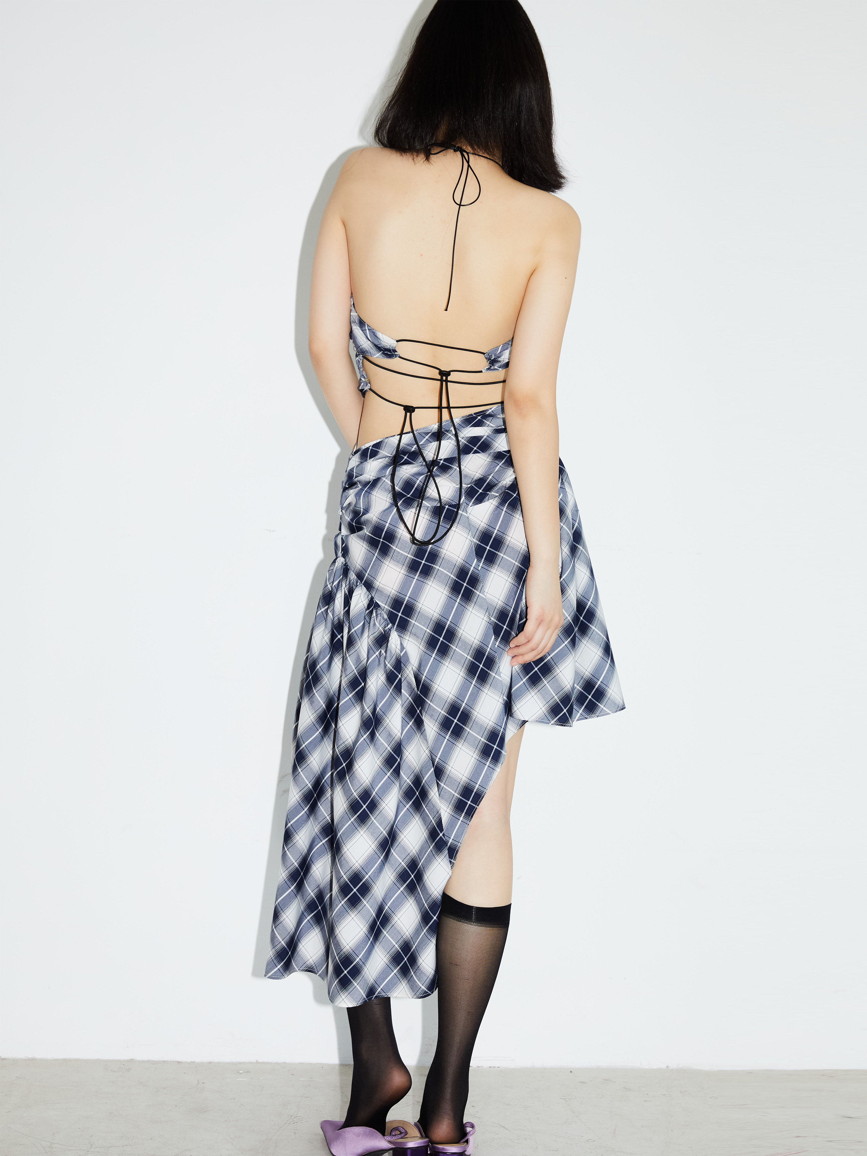 Vintage Checkered Silk Asymmetric Sling Dress